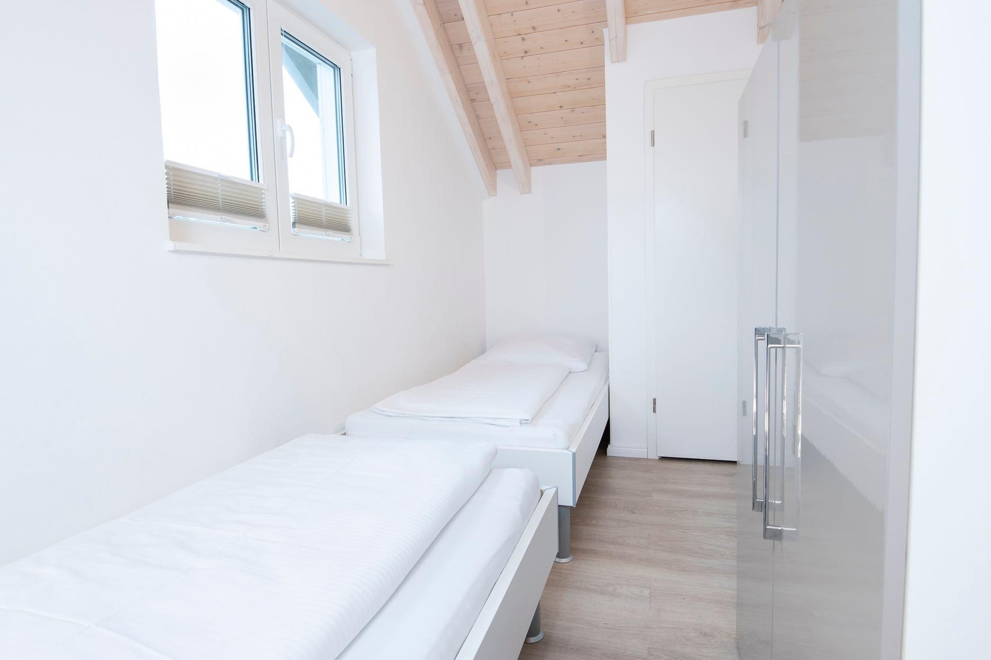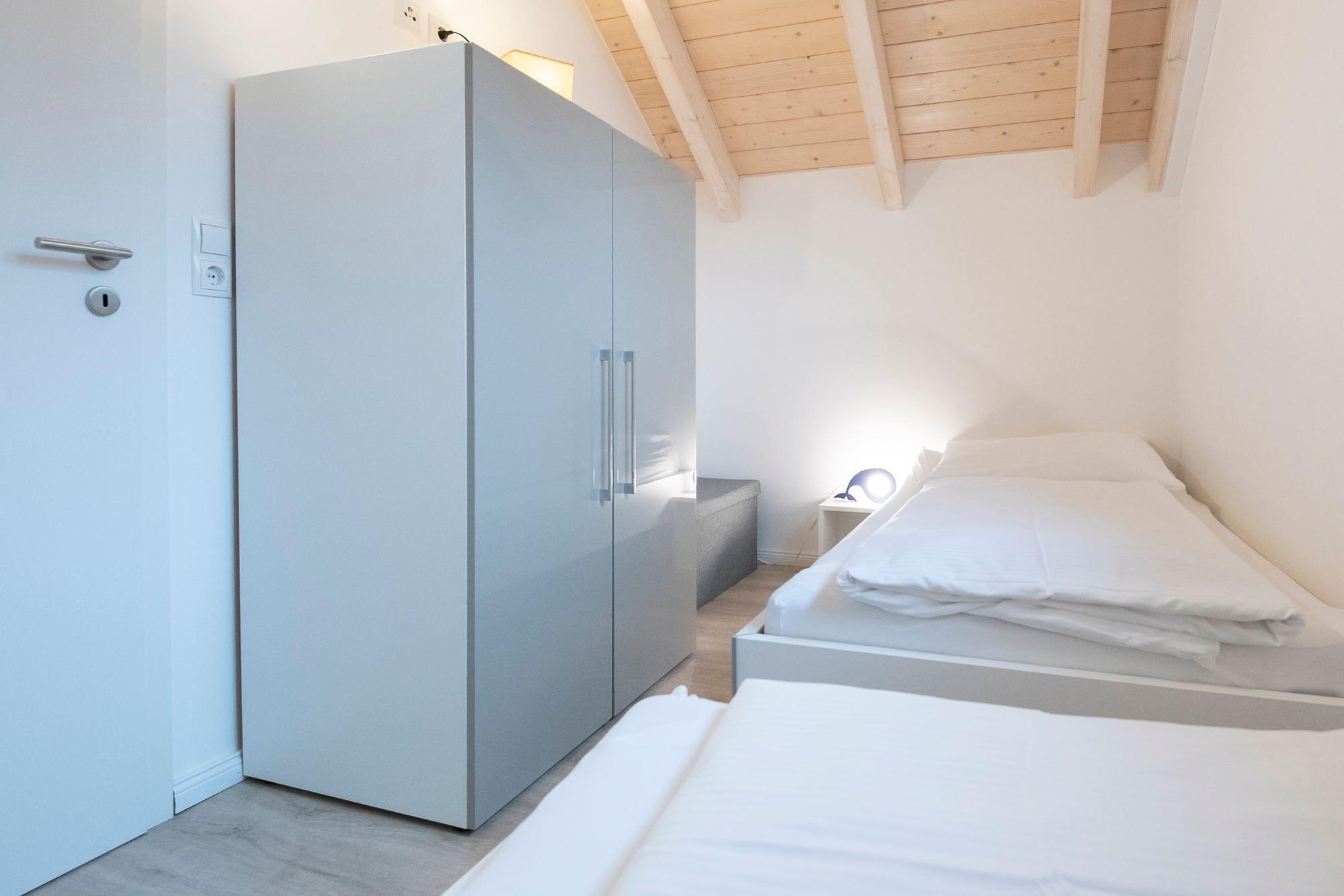 Schlafzimmer 2: 2 Einzelbetten (je 90x200 cm), Kleiderschrank, Lichtschutzplissees