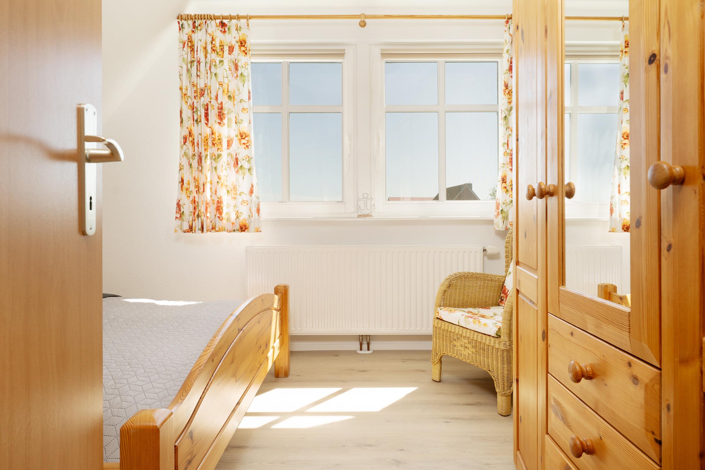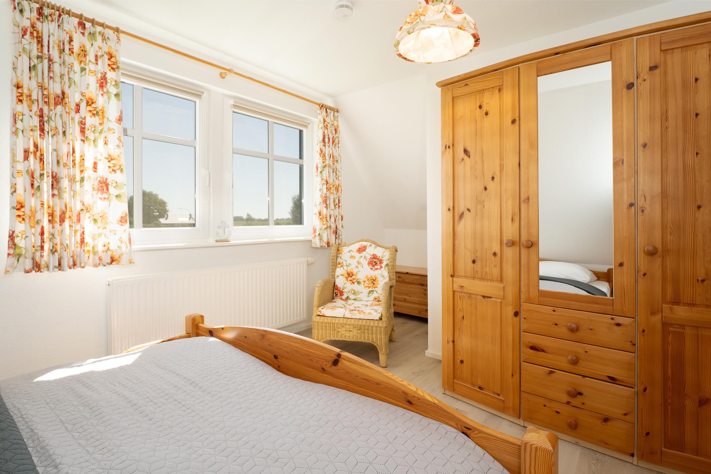 Schlafzimmer 1 (EG): 1 Doppelbett (2x 90x200 cm), Kleiderschrank, Verdunkelung: Rollo, kein Platz für ein Babybett vorhanden