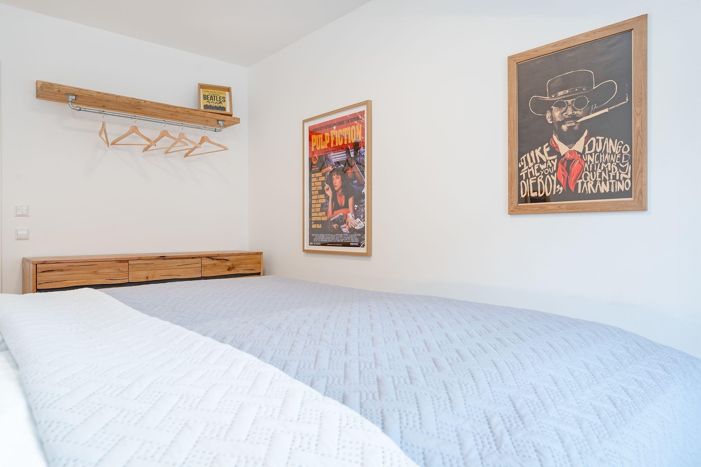 Schlafzimmer 1: 1 Doppelbett (180x200 cm), Kleiderschrank, Verdunkelung: Rollo, Platz für ein Babybett vorhanden