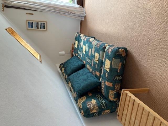 Im Obergeschoss liegen die Schlafräume. Ein Schlafzimmer ist mit einem Doppelbett, Schlafcouch und einem Kleiderschrank ausgestattet. Das zweite Schlafzimmer verfügt über zwei Einzelbetten.