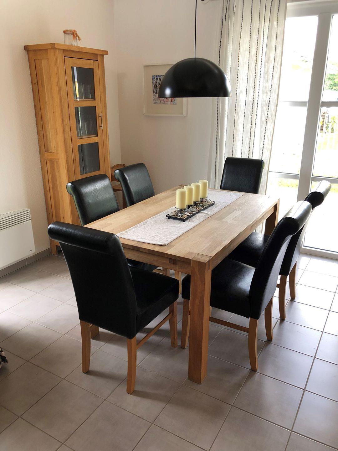 Das Haus verfügt zudem über eine große Terrasse mit Gartenmöbeln und mobilem Grill. Auch hier können Sie entspannen und gemeinsame Grillabende genießen.