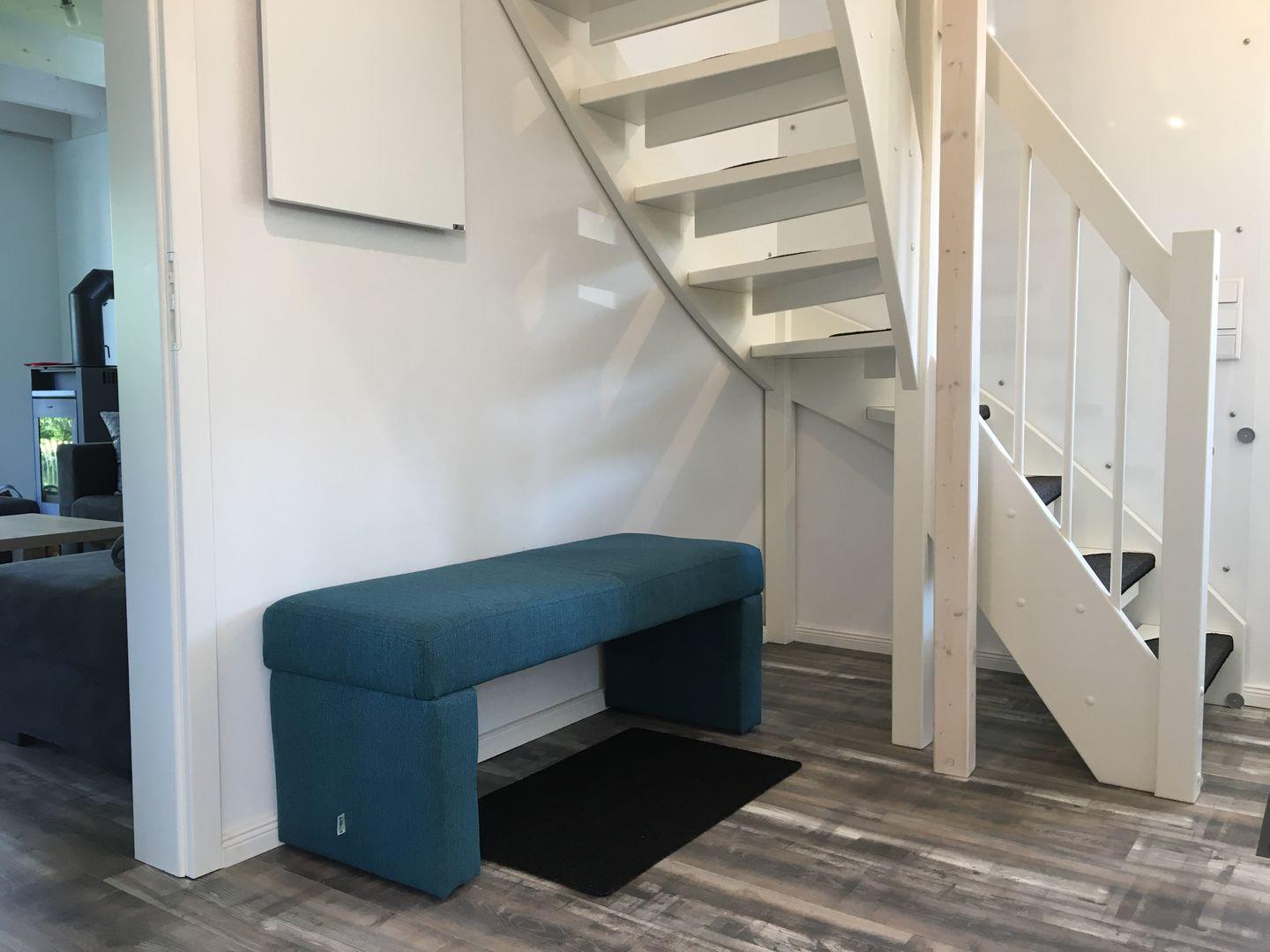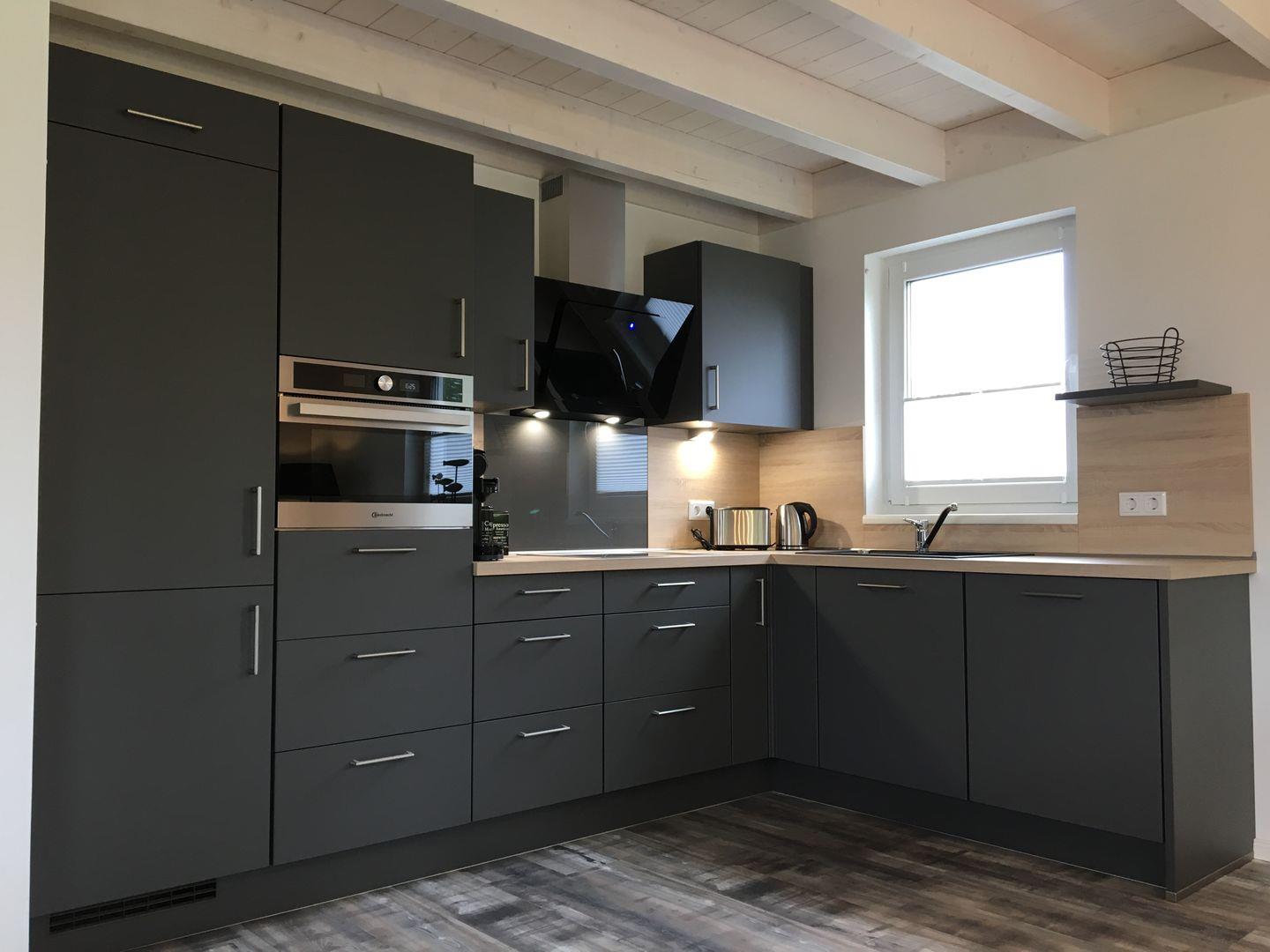 Die zum Wohnraum hin offene Küche ist mit hochwertigen Geräten und umfangreicher Ausstattung versehen: Cerankochfeld, Backofen, Mikrowelle, Spülmaschine, Kühlschrank mit Gefrierfach, Kaffeemaschine, Eierkocher, Wasserkocher, Toaster und Mixer sowie Geschirr und Besteck stehen bereit. Hier können Sie gemeinsam mit der Familie oder mit Freunden komfortabel speisen, ein großer Esstisch steht Ihnen ebenso zur Verfügung wie alle notwendigen Küchenutensilien.