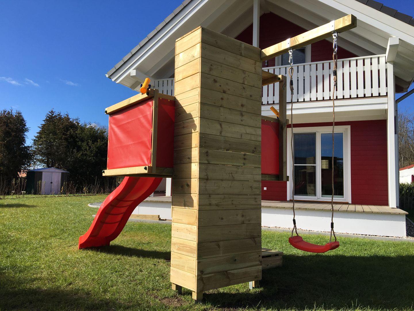 Das besondere Highlight bildet die eigene Sauna, die Ihnen exklusiv zur Verfügung steht. Hier können Sie nach einem Tag am Strand entspannen oder das ganzjährige Wellnessangebot des Seeparks nutzen. Zudem verfügt das Ferienhaus sowohl über einen Balkon als auch eine Terrasse mit Gartenblick, Sonnenliegen, Sonnenschirm sowie Gartenmöbeln, einem eigenen Strandkorb und einer Liegewiese. Ihre Kinder können sich im Kletterparadies mit Schaukel, Kletterwand, Sandkasten mit Spielzeug und Rutsche ordentlich austoben. Der private Garten ( 400 qm) bietet ausreichend Platz zum Verweilen und Erholen in ruhiger Umgebung. Zwei für Sie reservierte Privatparkplätze befinden sich direkt am Haus.