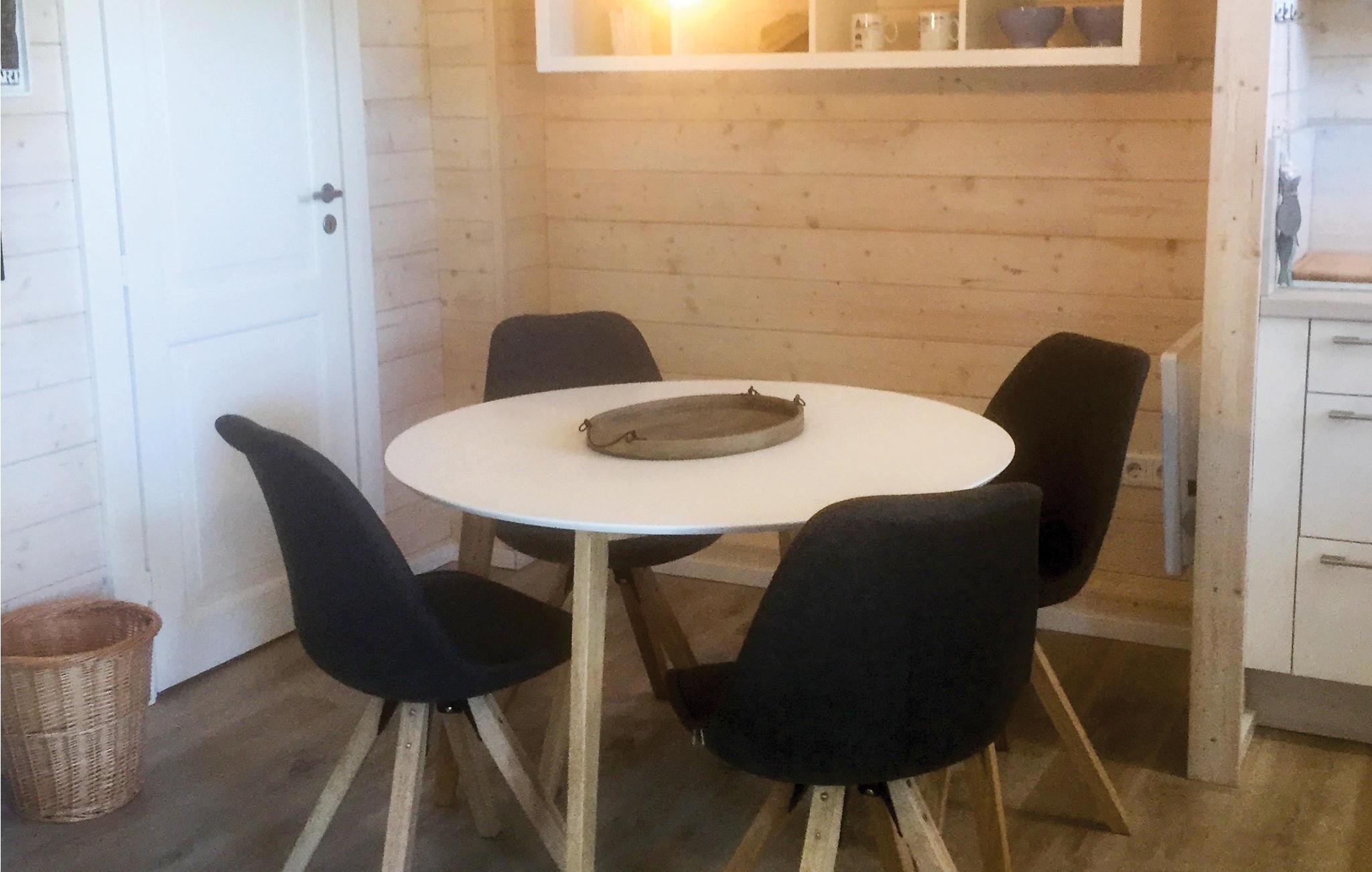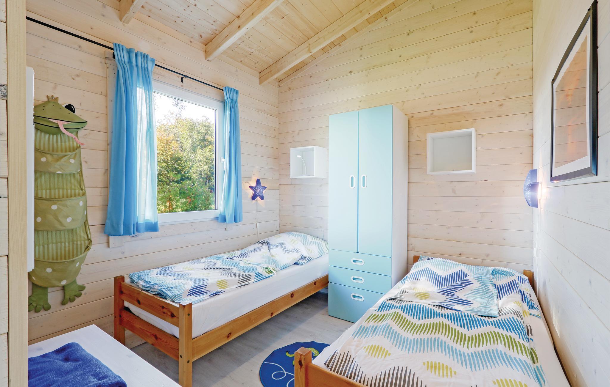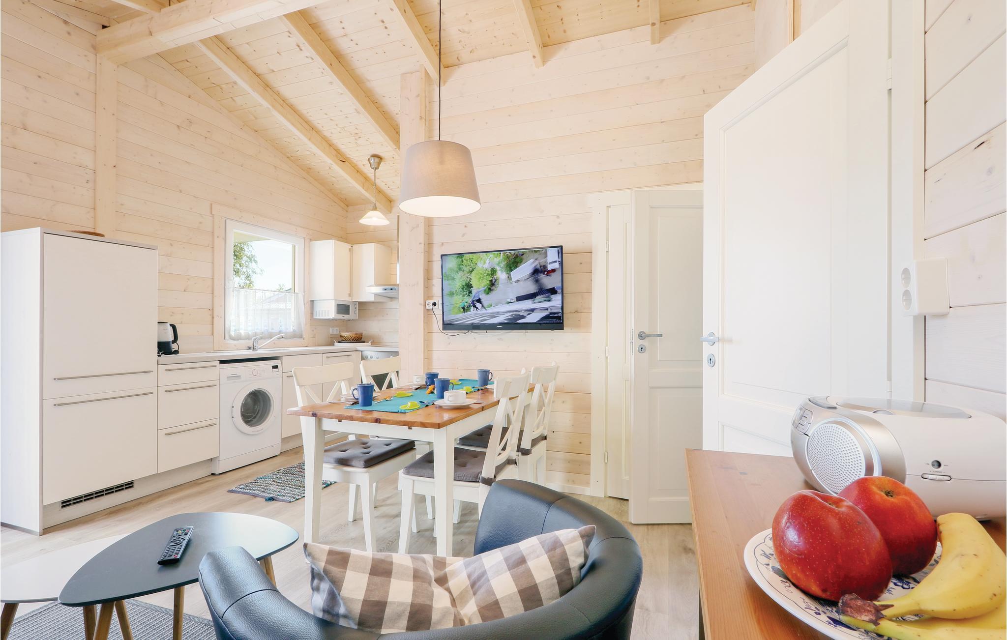 Das Holzhaus ist modern und gemütlich eingerichtet. Hier finden Sie zwei separate Schlafzimmer mit einem Doppelbett sowie zwei Einzelbetten. Eine weitere Schlafmöglichkeit befindet sich im Wohn-/ Essbereich. Die kleine Küchenzeile ist vollständig ausgestattet und bietet Ihnen jeglichen Komfort für Ihren Urlaub. Die offene Terrasse vor dem Haus lädt zu gemeinsamen Mahlzeiten ein, ein Grill steht Ihnen zur Verfügung. Hier können Sie entspannen und Ihre Zeit mit der Familie genießen.