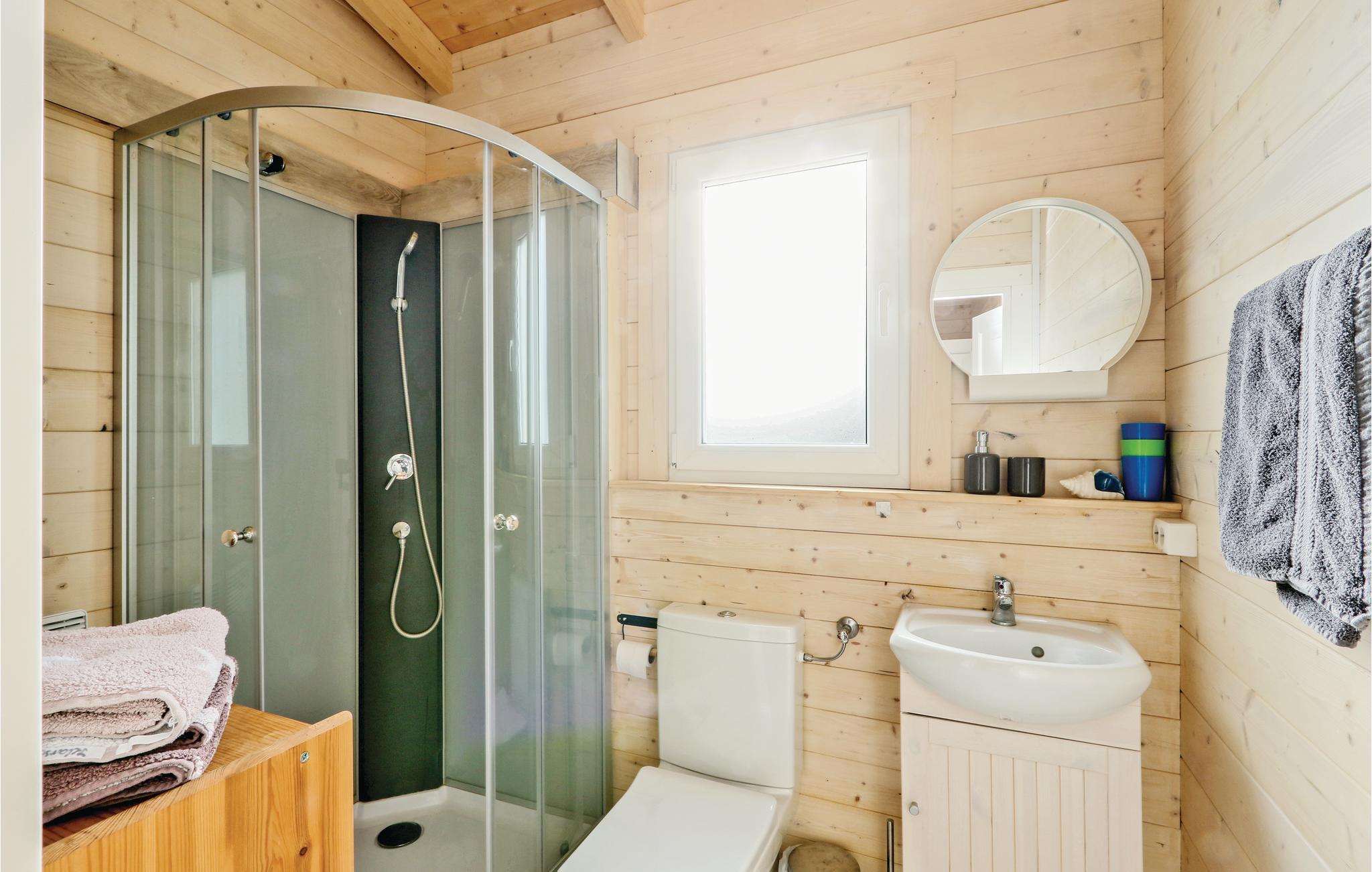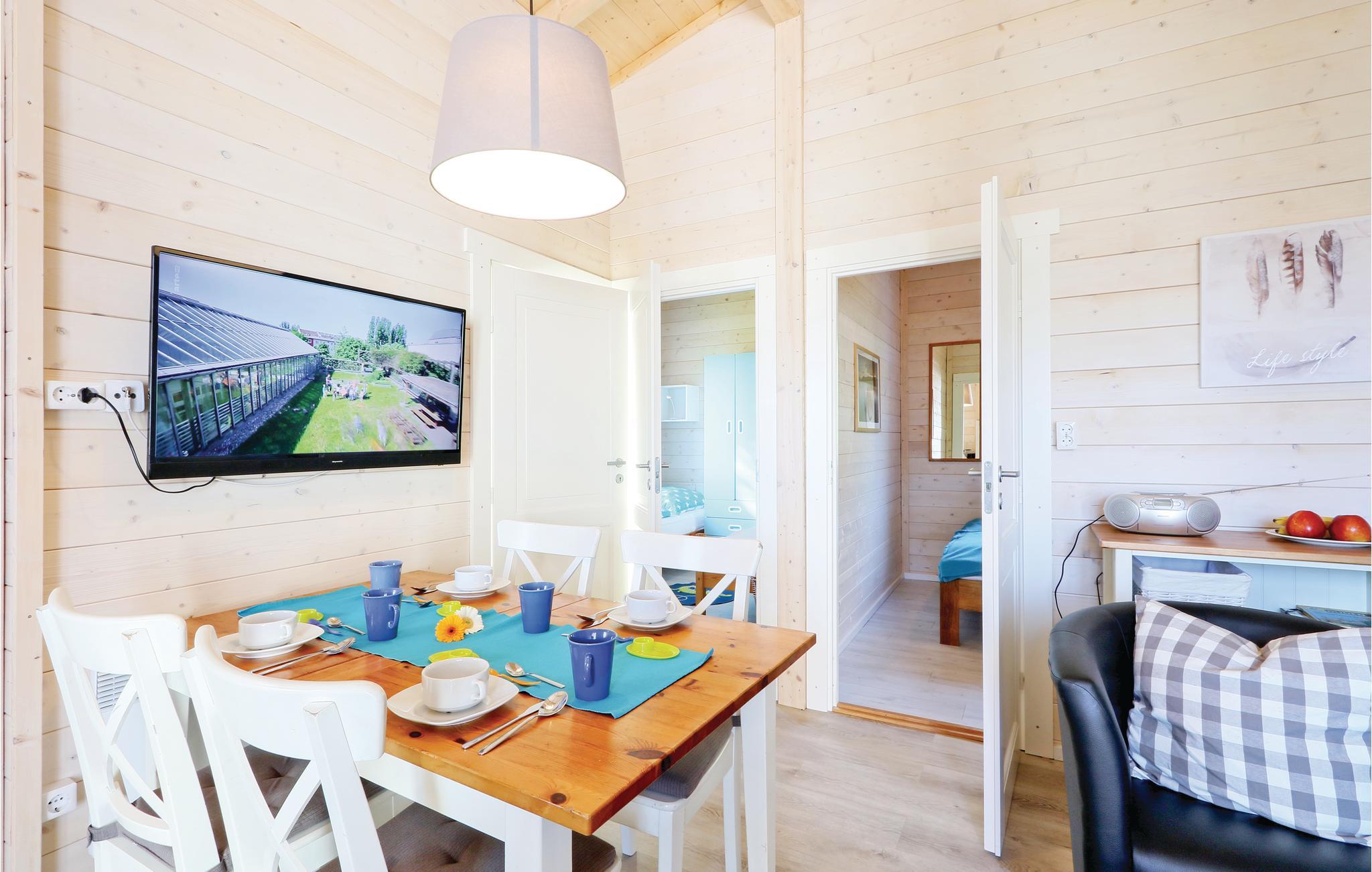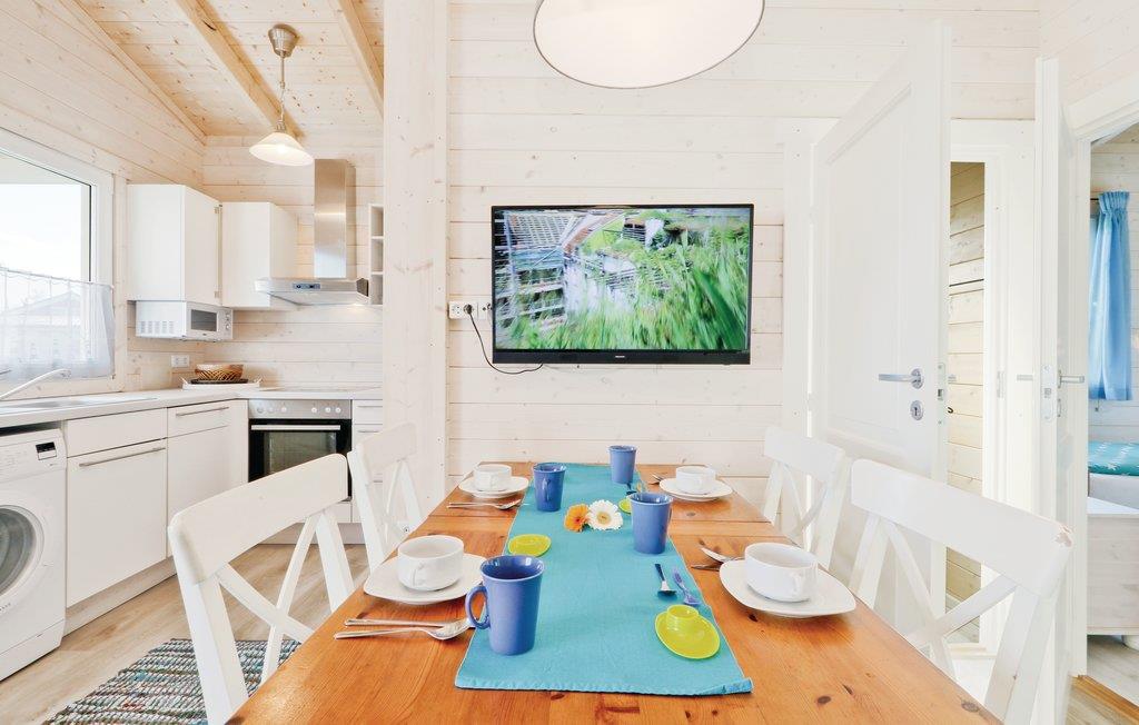 Das Holzhaus ist modern und gemütlich eingerichtet. Hier finden Sie zwei separate Schlafzimmer mit einem Doppelbett sowie zwei Einzelbetten. Eine weitere Schlafmöglichkeit befindet sich im Wohn-/ Essbereich. Die kleine Küchenzeile ist vollständig ausgestattet und bietet Ihnen jeglichen Komfort für Ihren Urlaub. Die offene Terrasse vor dem Haus lädt zu gemeinsamen Mahlzeiten ein, ein Grill steht Ihnen zur Verfügung. Hier können Sie entspannen und Ihre Zeit mit der Familie genießen.