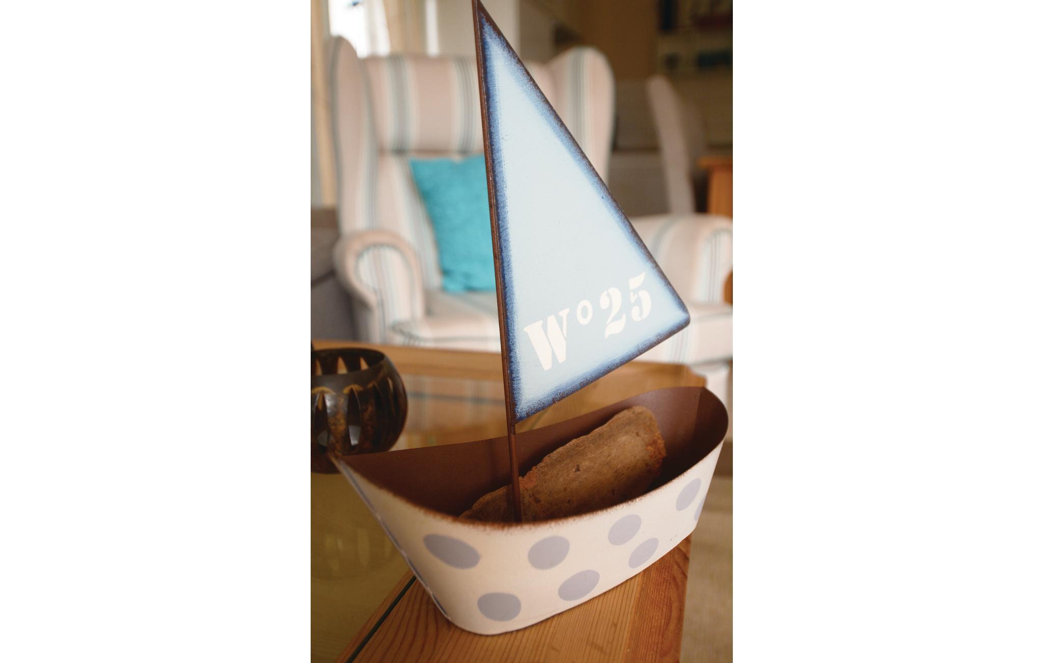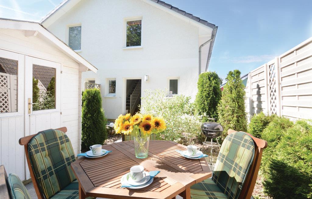 Das Haus besitzt eine nach Süden ausgerichtete, teilweise überdachte Terrasse mit Gartenmöbeln. Hinter dem Haus befindet sich eine weitere Terrasse mit Gartenstühlen, Grillplatz und einem Gartenhaus. Dieses bietet Platz für Fahrräder oder Angelgeräte, denn der Süssauer Strand bietet sehr gute Angelmöglichkeiten.