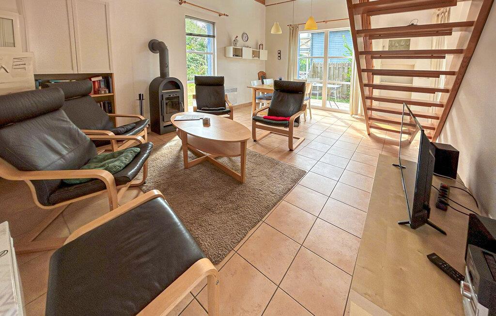 In diesem hell und gemütlich eingerichteten Ferienhaus werden Sie sich garantiert wohl fühlen: Durch die bodentiefen Fenster und eine Kathedralendecke entsteht ein offener Wohnraum.