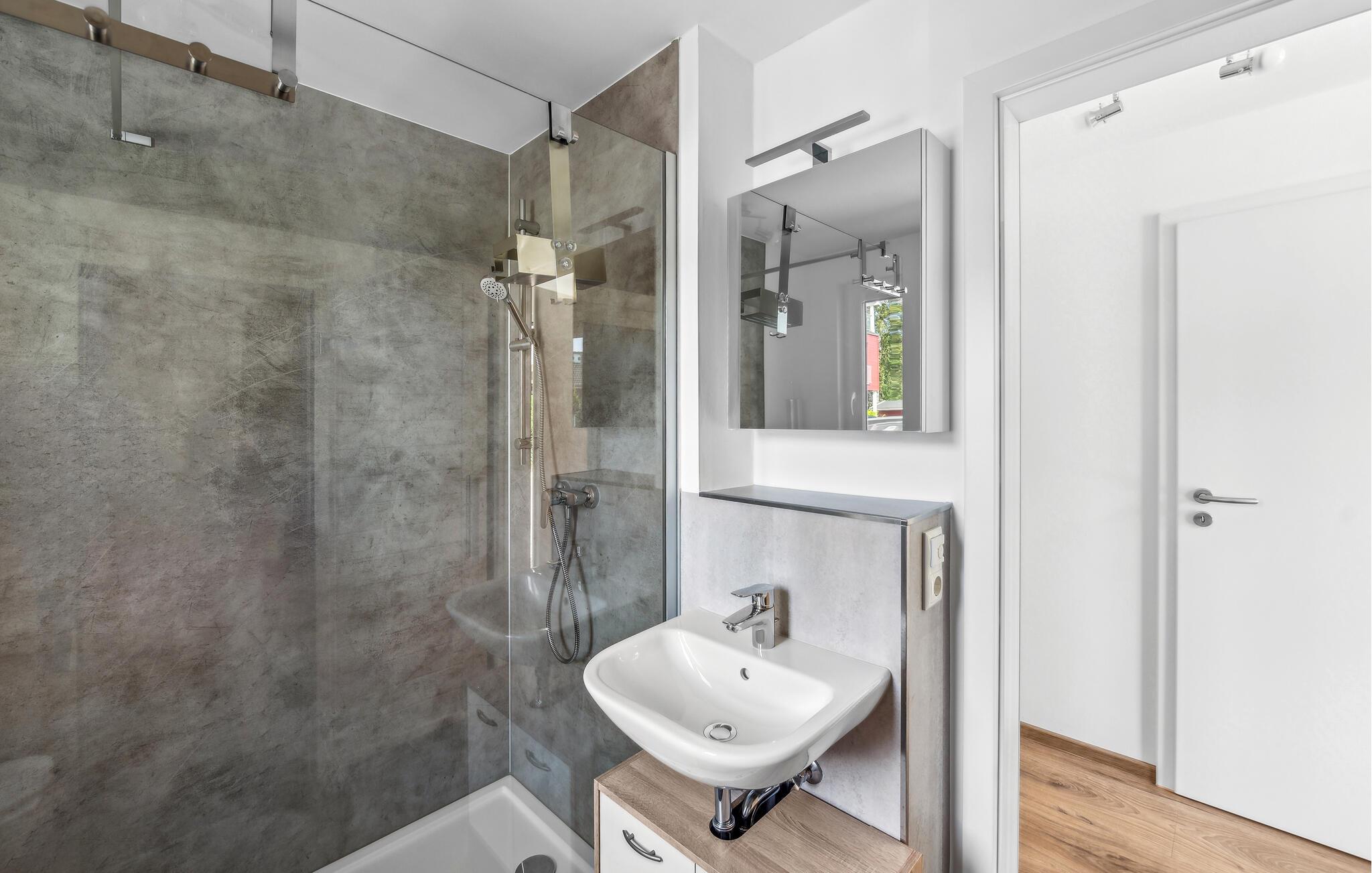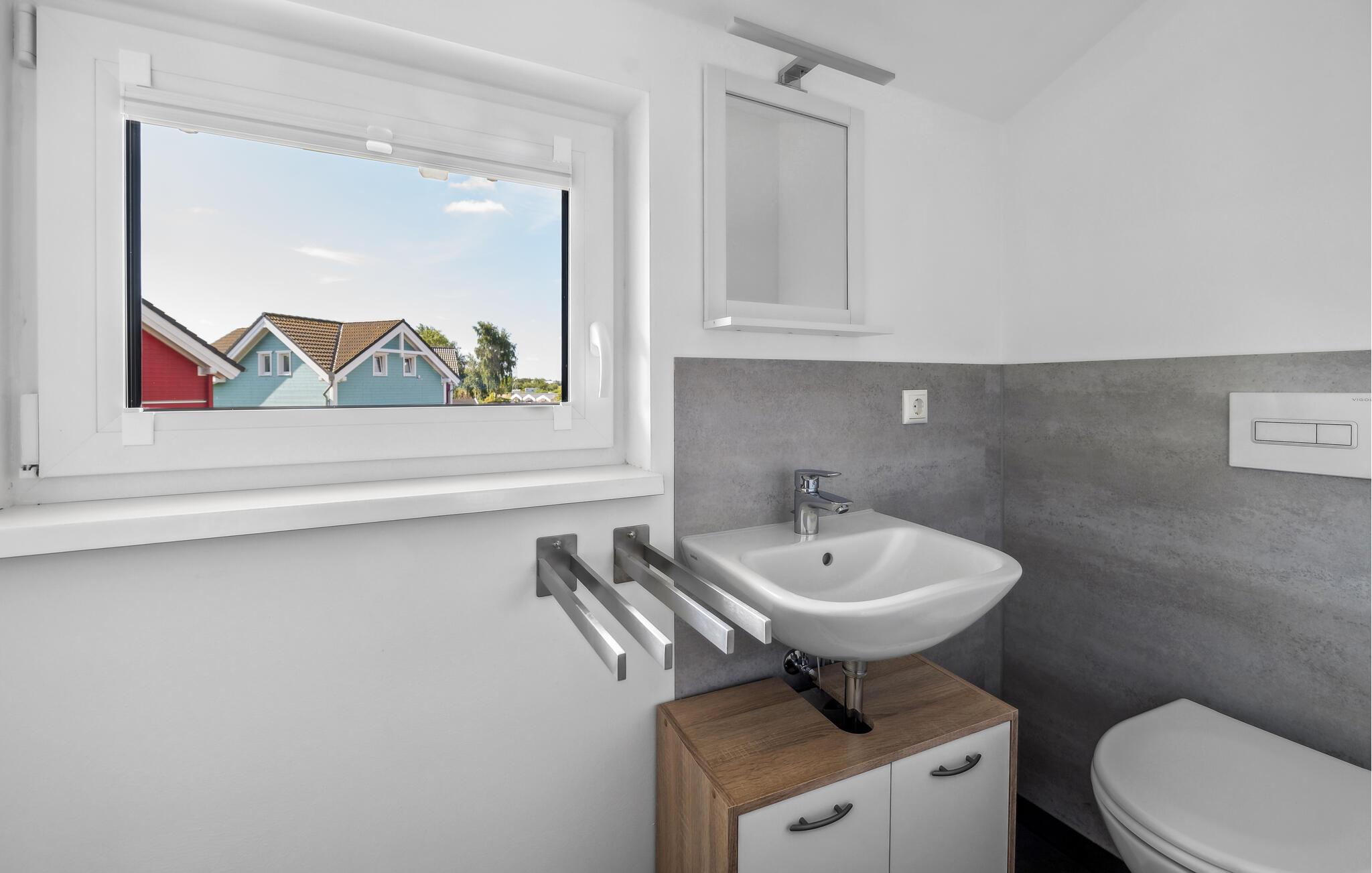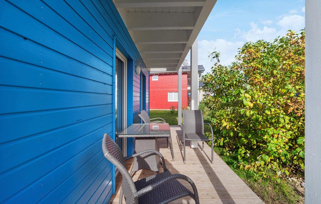 Ihr Haus erstreckt sich dort über zwei Etagen. Im Erdgeschoss befindet sich ein offener, gemütlicher Wohnbereich mit angrenzender Terrasse, eine moderne Einbauküche sowie ein Duschbad mit einer Sauna. Im ersten Stock lädt ein geräumiger Balkon zum Verweilen ein. Zudem befinden sich auf dieser Ebene zwei Schlafzimmer und ein Badezimmer. Hier können Sie die schöne Ostseeluft und einen tollen Blick auf das Feriendorf von dem Balkon genießen. Hochwertige Möbel und eine gelunge Raumaufteilung machen dieses Ferienhaus zu einem traumhaften Urlaubsdomizil in ruhiger Umgebung.