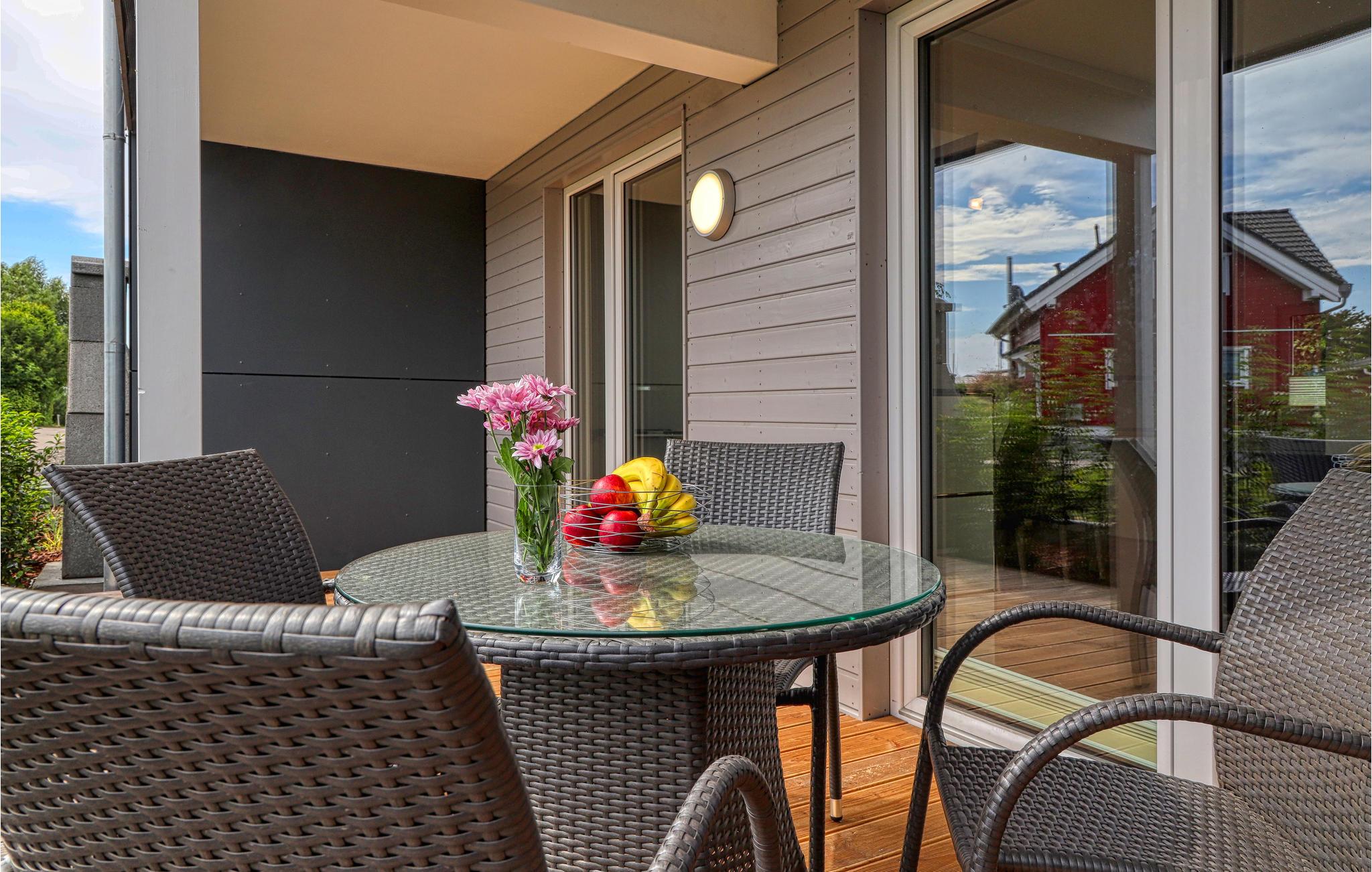 Ihr Haus erstreckt sich dort über drei Etagen. Im Erdgeschoss befindet sich ein offener, gemütlicher Wohnbereich mit angrenzender Terrasse, eine moderne Einbauküche sowie ein Gäste-WC. Im ersten Stock lädt ein geräumiger Balkon zum Verweilen ein. Zudem befinden sich auf dieser Ebene drei Schlafzimmer und ein Duschbad. Ein viertes Schlafzimmer mit Galerie und großem Bad mit Sauna rundet das Wohnerlebnis im zweiten Stock ab. Hier können Sie die schöne Ostseeluft und einen tollen Blick auf die Ostsee von einem weiteren Balkon genießen. Hochwertige Möbel und eine gelunge Raumaufteilung machen dieses Ferienhaus zu einem traumhaften Urlaubsdomizil in ruhiger Umgebung.