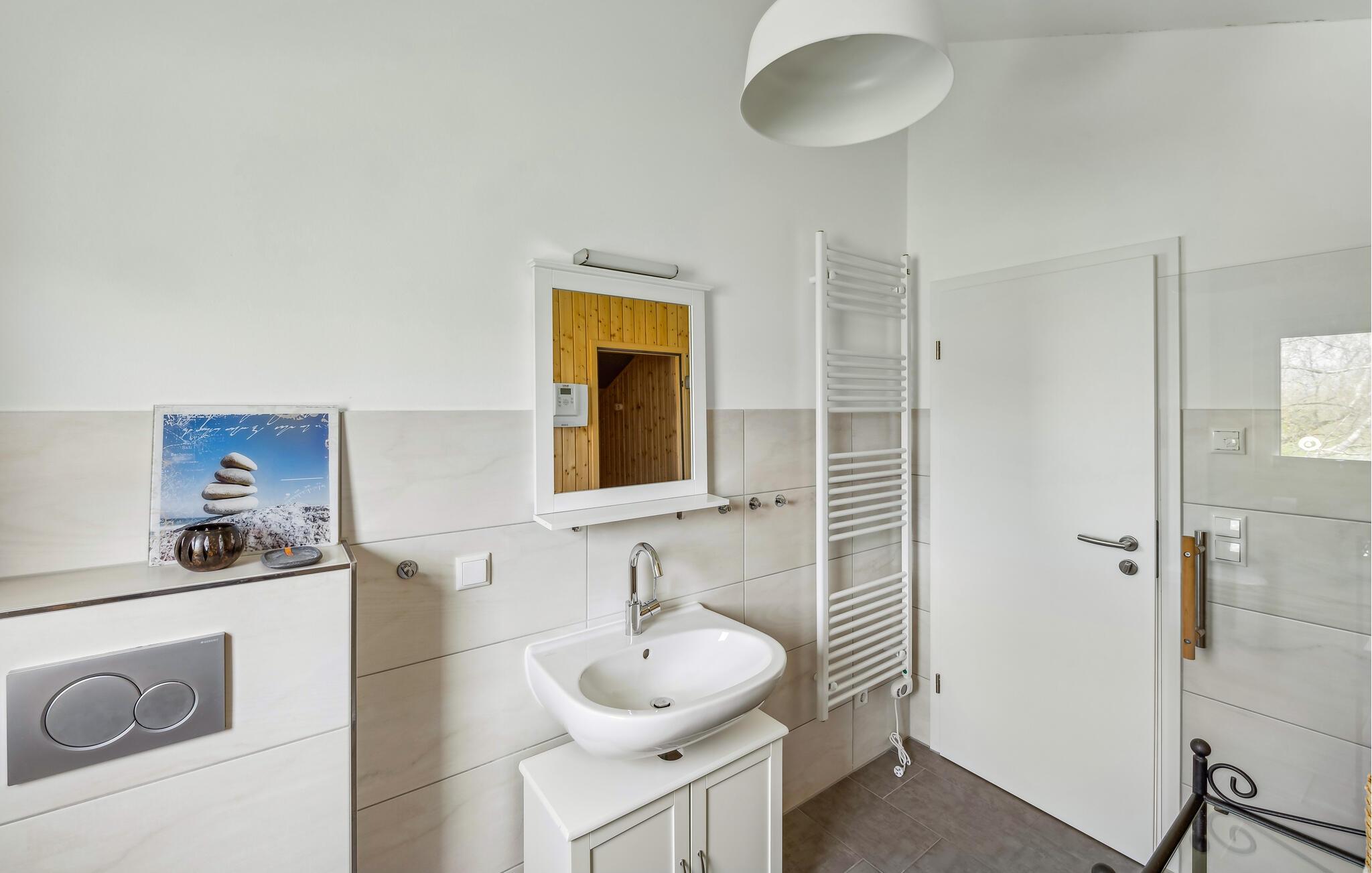 Ihr Haus erstreckt sich dort über drei Etagen. Im Erdgeschoss befindet sich ein offener, gemütlicher Wohnbereich mit angrenzender Terrasse, eine moderne Einbauküche sowie ein Gäste-WC. Im ersten Stock lädt ein geräumiger Balkon zum Verweilen ein. Zudem befinden sich auf dieser Ebene drei Schlafzimmer und ein Duschbad. Ein viertes Schlafzimmer mit Galerie und großem Bad mit Sauna rundet das Wohnerlebnis im zweiten Stock ab. Hier können Sie die schöne Ostseeluft und einen tollen Blick auf die Ostsee von einem weiteren Balkon genießen. Hochwertige Möbel und eine gelunge Raumaufteilung machen dieses Ferienhaus zu einem traumhaften Urlaubsdomizil in ruhiger Umgebung.