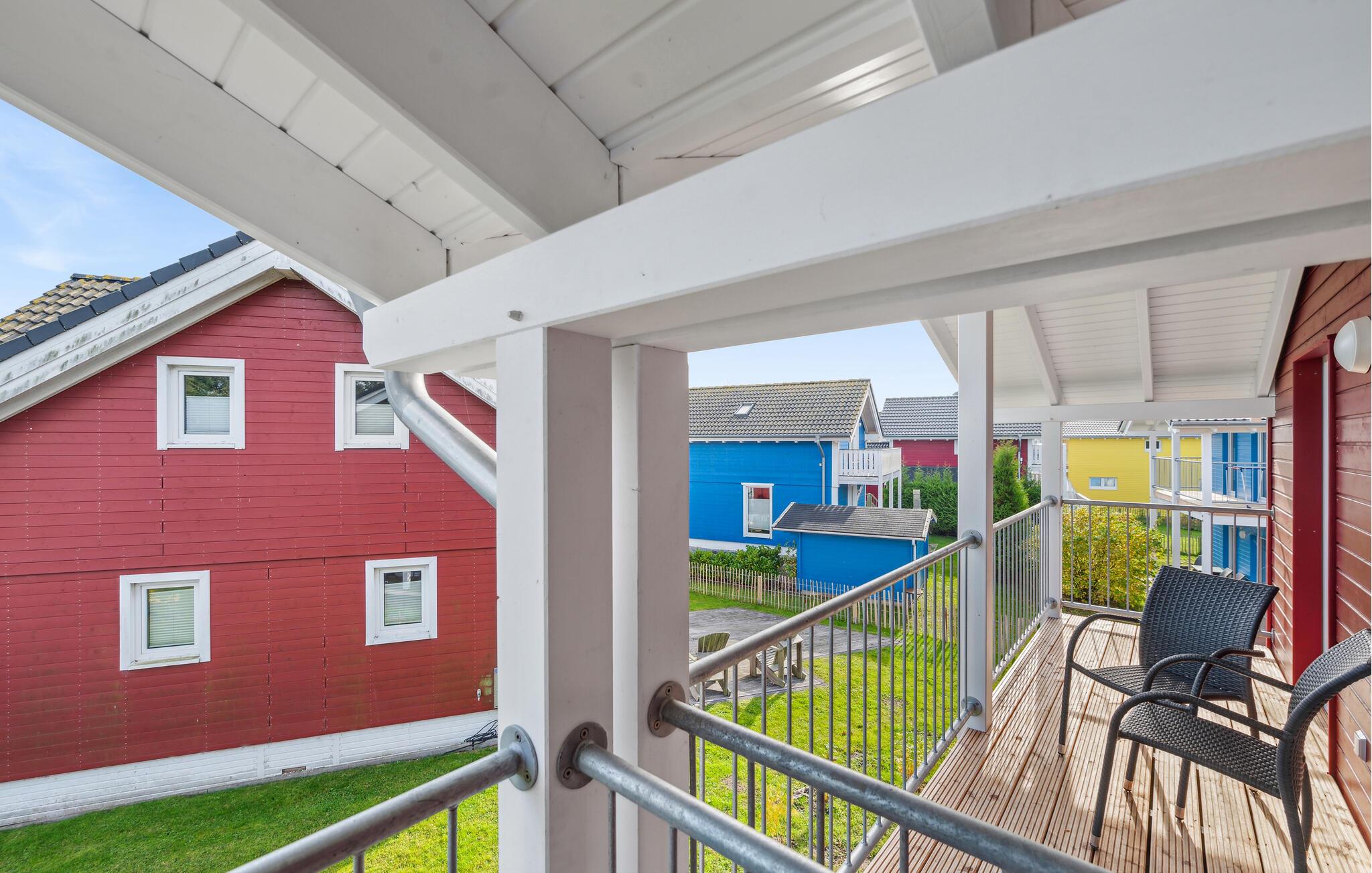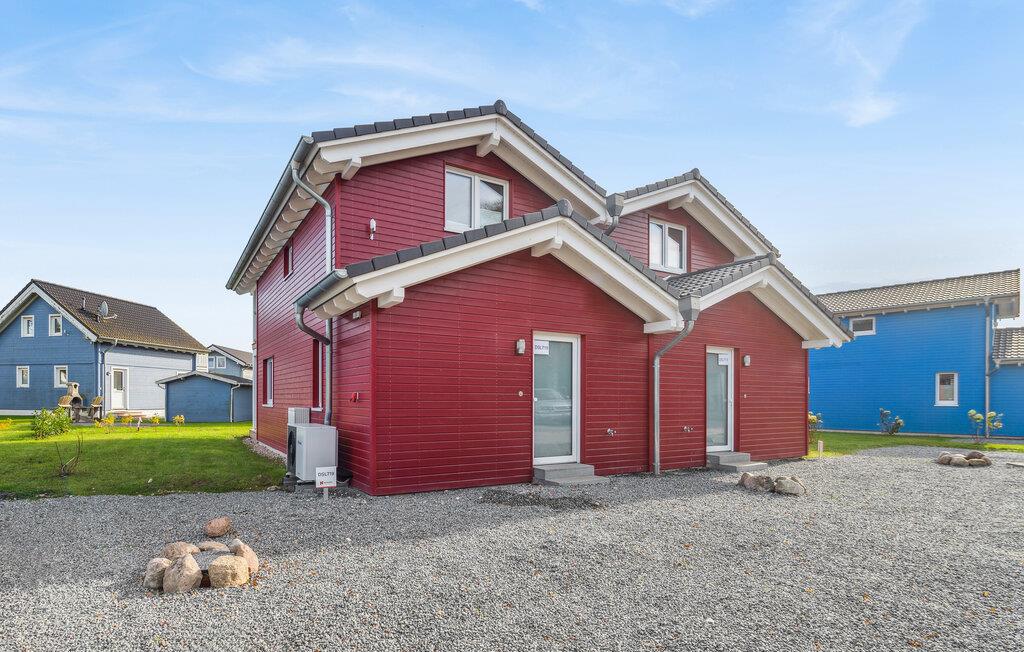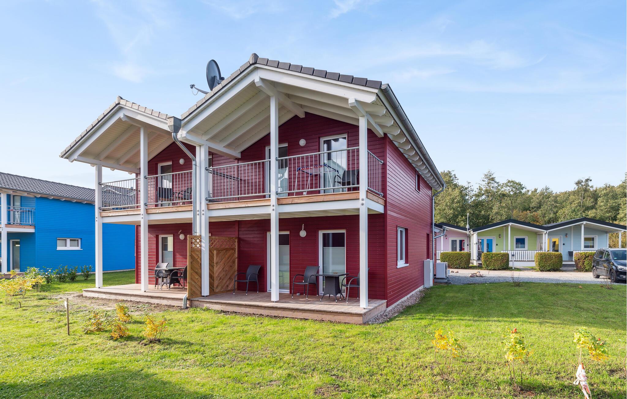 Ihr Haus erstreckt sich dort über zwei Etagen. Im Erdgeschoss befindet sich ein offener, gemütlicher Wohnbereich mit angrenzender Terrasse, eine moderne Einbauküche sowie ein Duschbad mit einer Sauna. Im ersten Stock lädt ein geräumiger Balkon zum Verweilen ein. Zudem befinden sich auf dieser Ebene zwei Schlafzimmer und ein Badezimmer. Hier können Sie die schöne Ostseeluft und einen tollen Blick auf das Feriendorf von dem Balkon genießen. Hochwertige Möbel und eine gelunge Raumaufteilung machen dieses Ferienhaus zu einem traumhaften Urlaubsdomizil in ruhiger Umgebung.