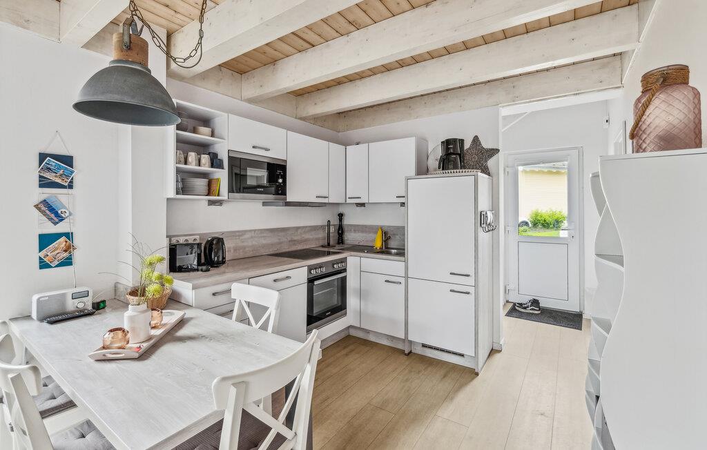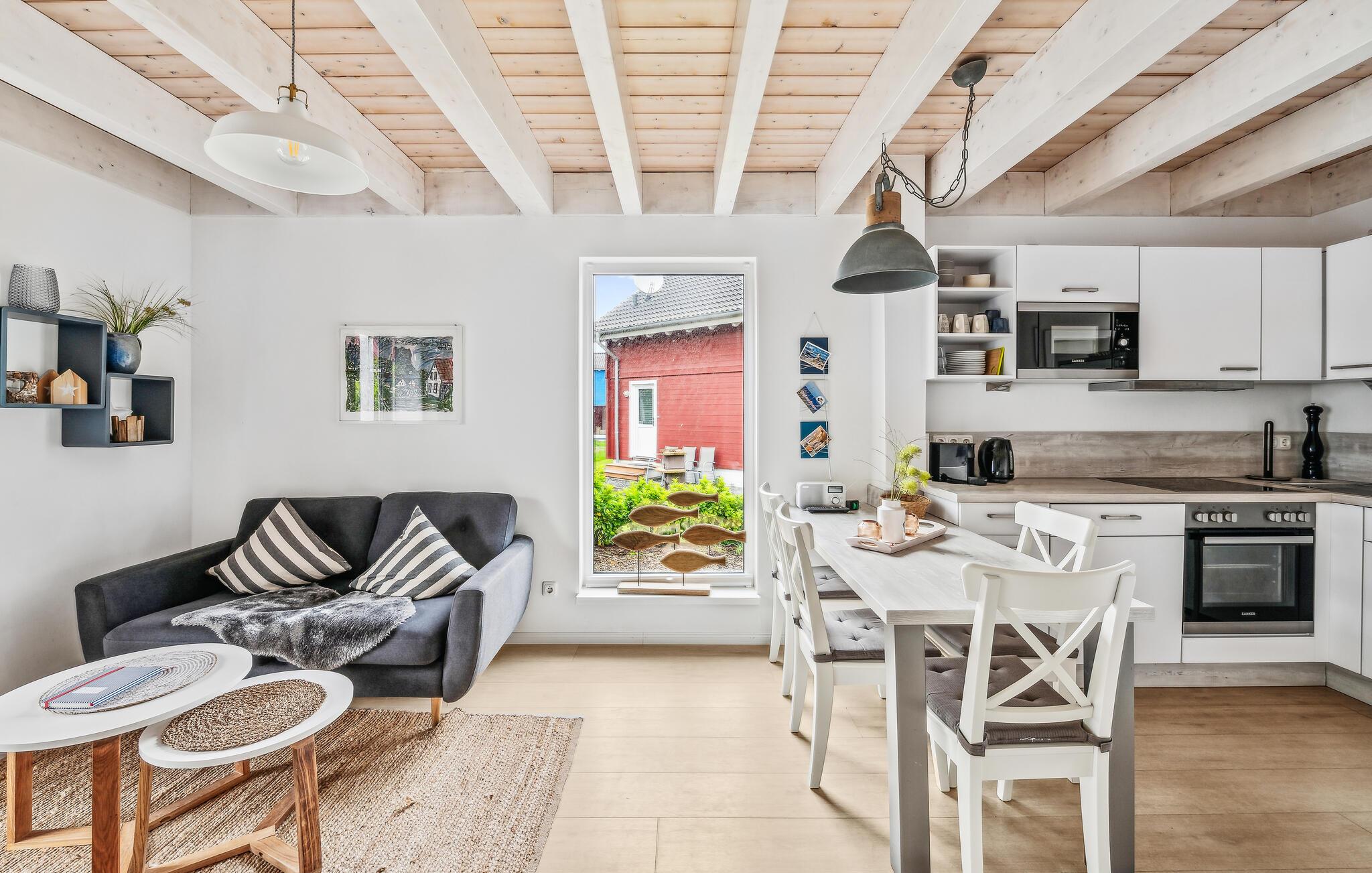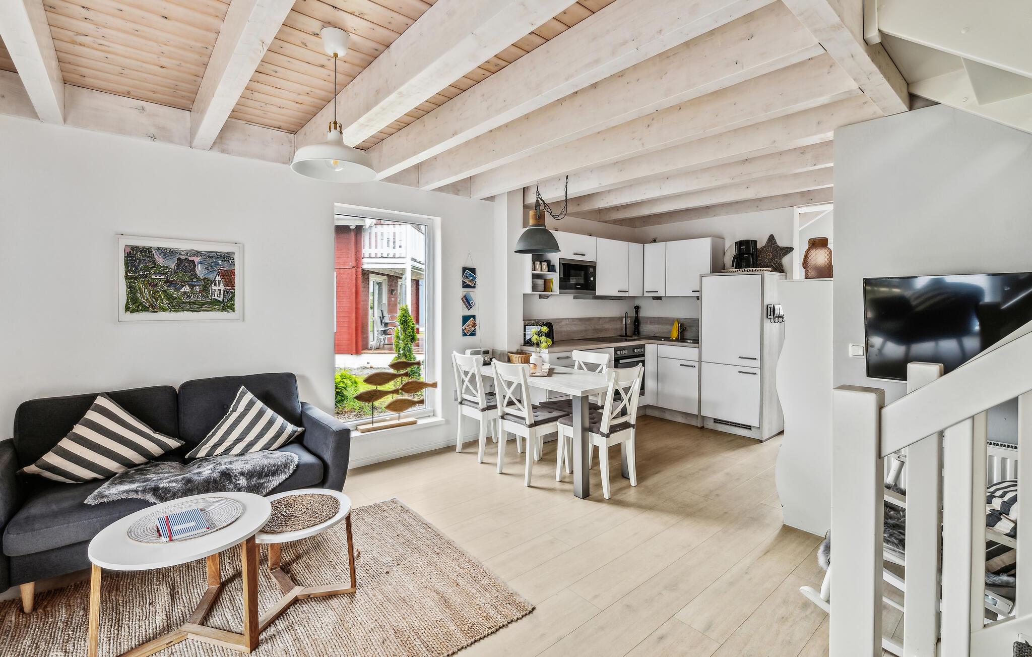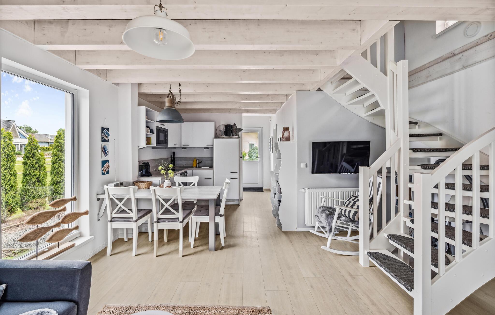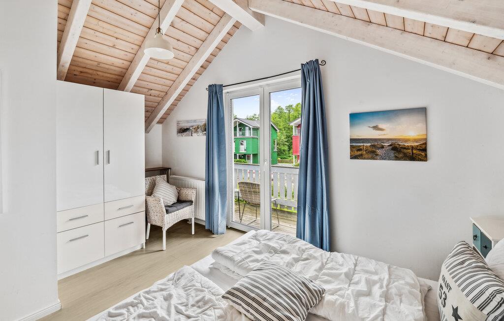 Ihr Haus erstreckt sich dort über zwei Etagen. Im Erdgeschoss befindet sich ein offener, gemütlicher Wohnbereich mit angrenzender Terrasse, eine moderne Einbauküche sowie ein Duschbad mit einer Sauna. Im ersten Stock lädt ein geräumiger Balkon zum Verweilen ein. Zudem befinden sich auf dieser Ebene zwei Schlafzimmer und ein Badezimmer. Hier können Sie die schöne Ostseeluft und einen tollen Blick auf das Feriendorf von dem Balkon genießen. Hochwertige Möbel und eine gelunge Raumaufteilung machen dieses Ferienhaus zu einem traumhaften Urlaubsdomizil in ruhiger Umgebung.