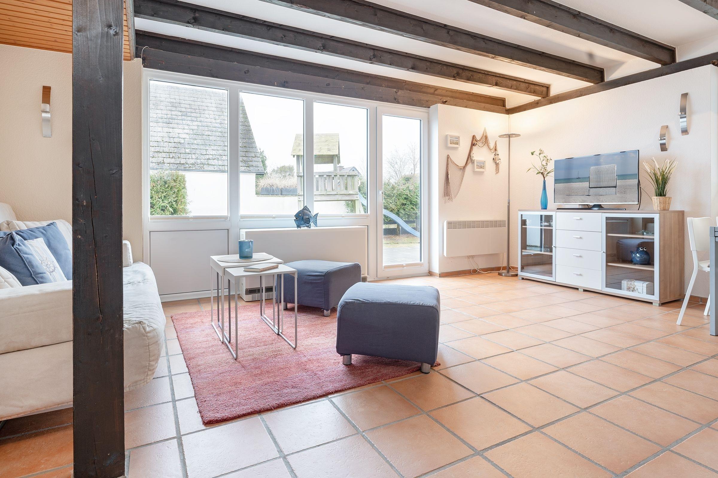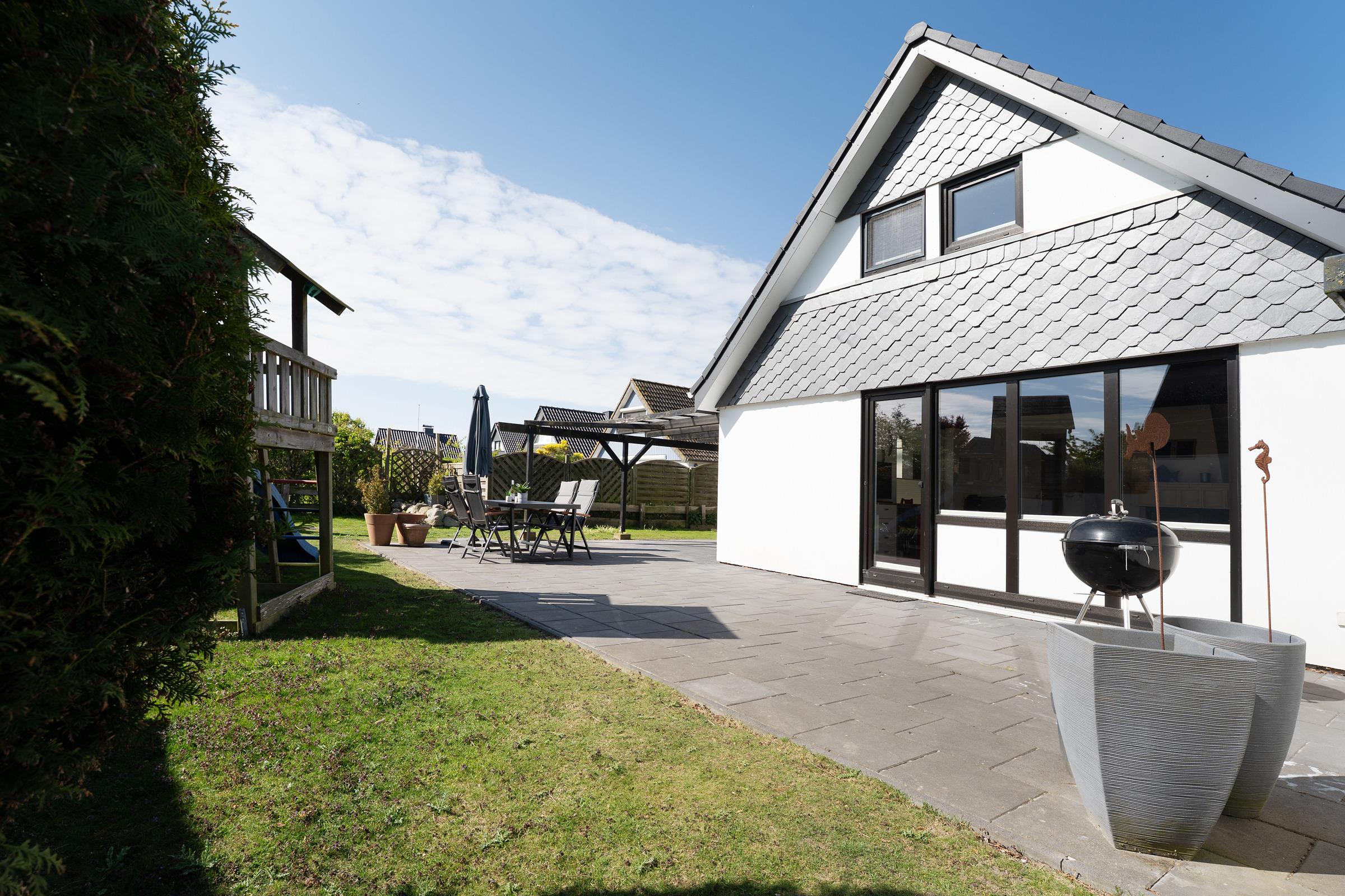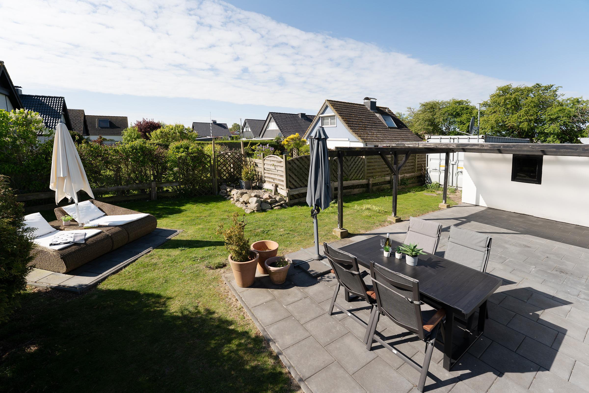 Strandnahes 3-Zimmer-Ferienhaus in Sütel-Strand mit 69 m² Wohnfläche, Terrasse und Garten für bis zu 6 Personen.
