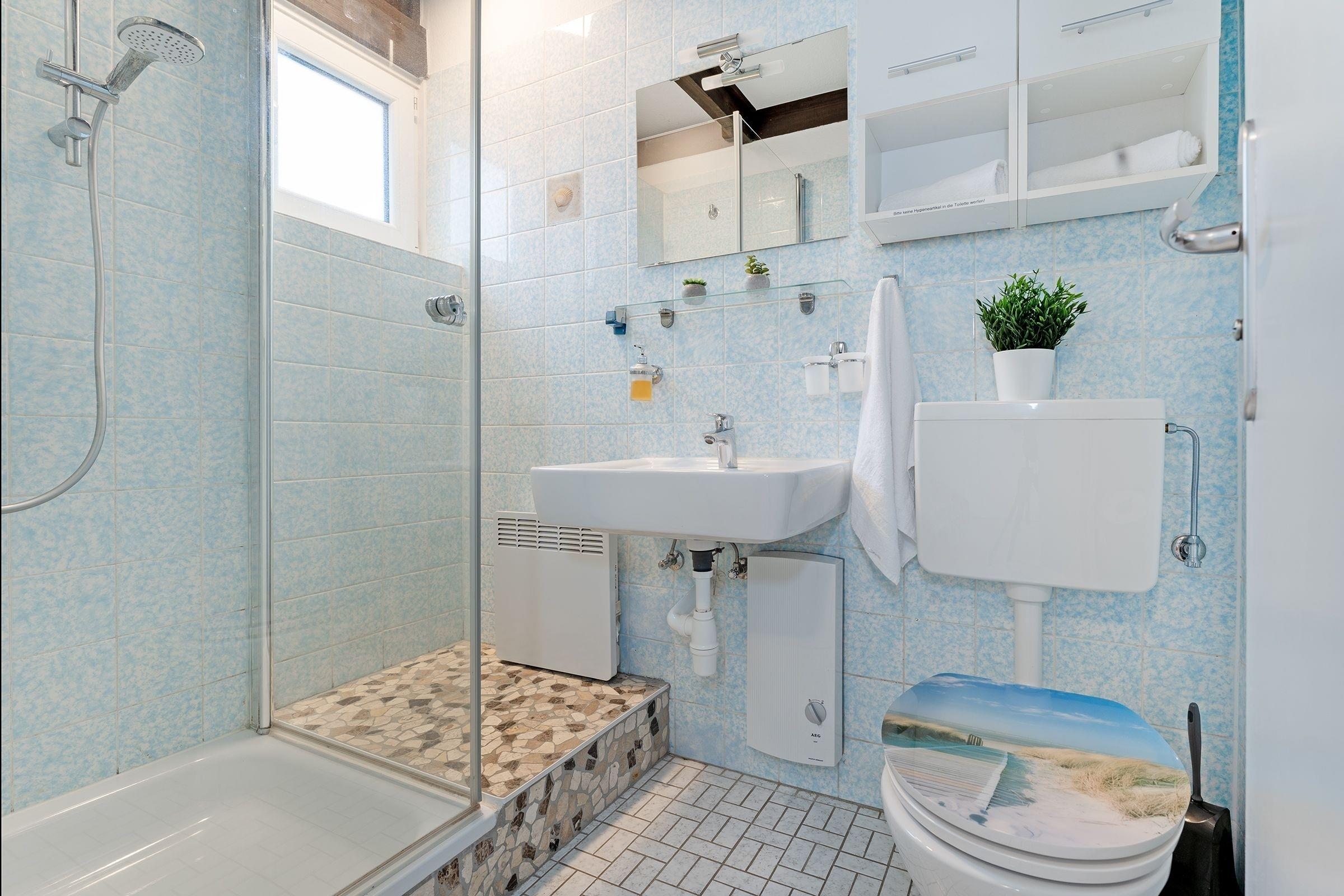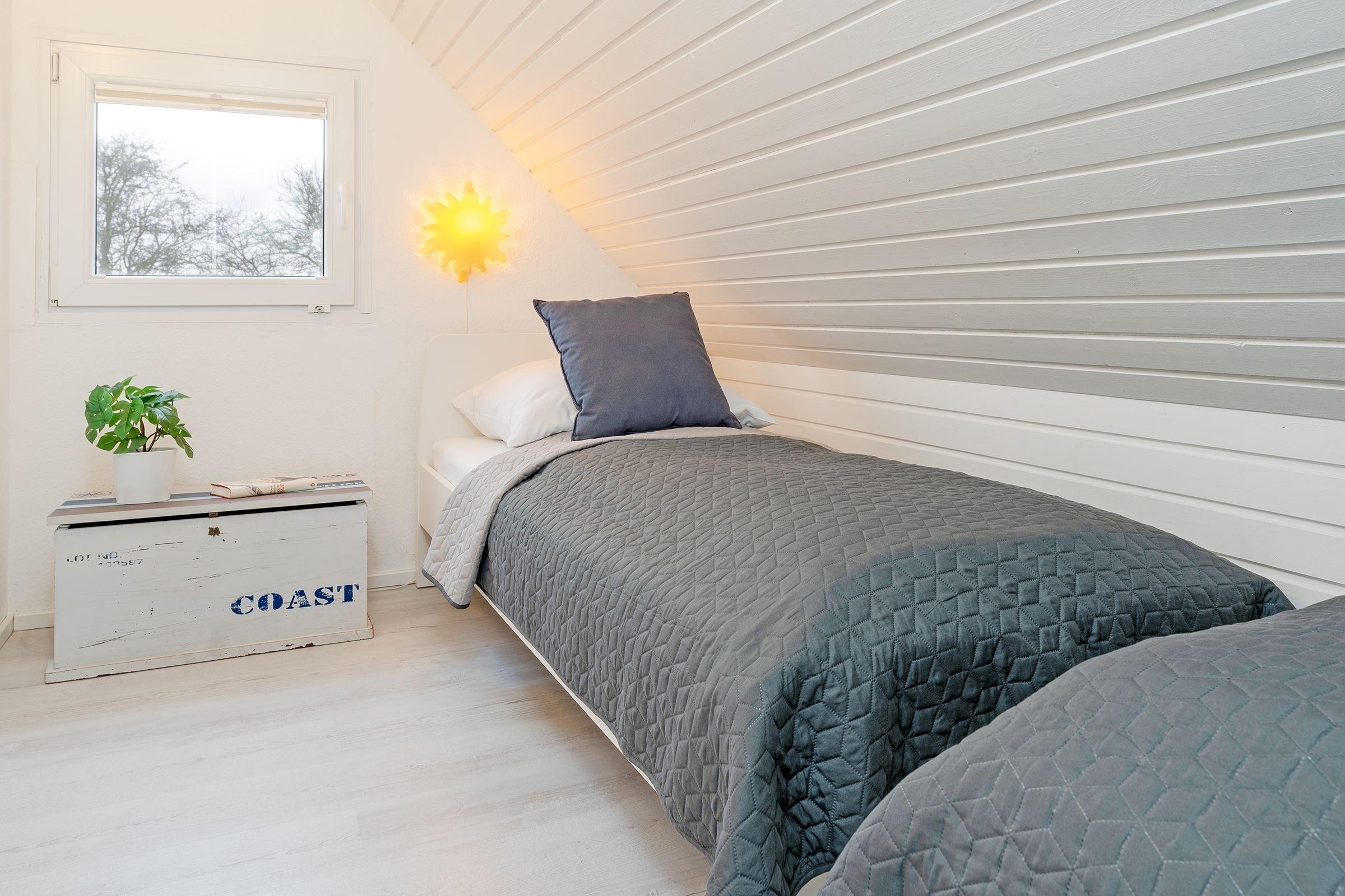 Willkommen in Ihrem Urlaubsparadies an der Ostseeküste! Dieses modern ausgestattete Ferienhaus bietet Ihnen ein stilvolles Ambiente und alles, was Sie für einen entspannten Urlaub benötigen. Der großzügige Wohnbereich lädt mit einem gemütlichen Schlafsofa (140x200 cm) und einem TV zu erholsamen Stunden ein. Die Terrasse ist mit Gartenmöbeln ausgestattet und bietet ausreichend Platz, um die frische Meeresluft zu genießen – perfekt für Grillabende, denn ein Holzkohlegrill steht für Sie bereit. Die offene Einbauküche ist mit Ceran-Herd, Mikrowelle und Backofen gut ausgestattet. Gemeinsam mit Familie und Freunden können Sie hier kulinarische Köstlichkeiten zaubern. Insgesamt stehen im Obergeschoss zwei Schlafzimmer zur Verfügung, eines davon mit Doppelbett (2x 90x200 cm) und eines mit zwei Einzelbetten (je 90x200 cm). Das tageslichthelle Duschbad befindet sich im Erdgeschoss.