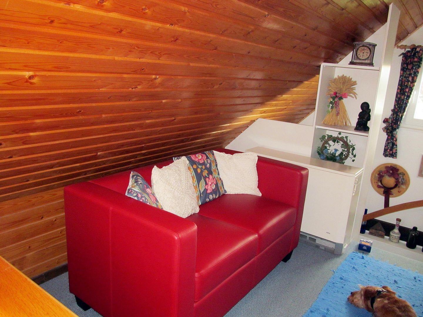Im oberen Stockwerk befinden sich zwei Schlafzimmer mit jeweils 2 Einzelbetten. Von einem Schlafzimmer aus hat man sogar ein wenig Ostseeblick.