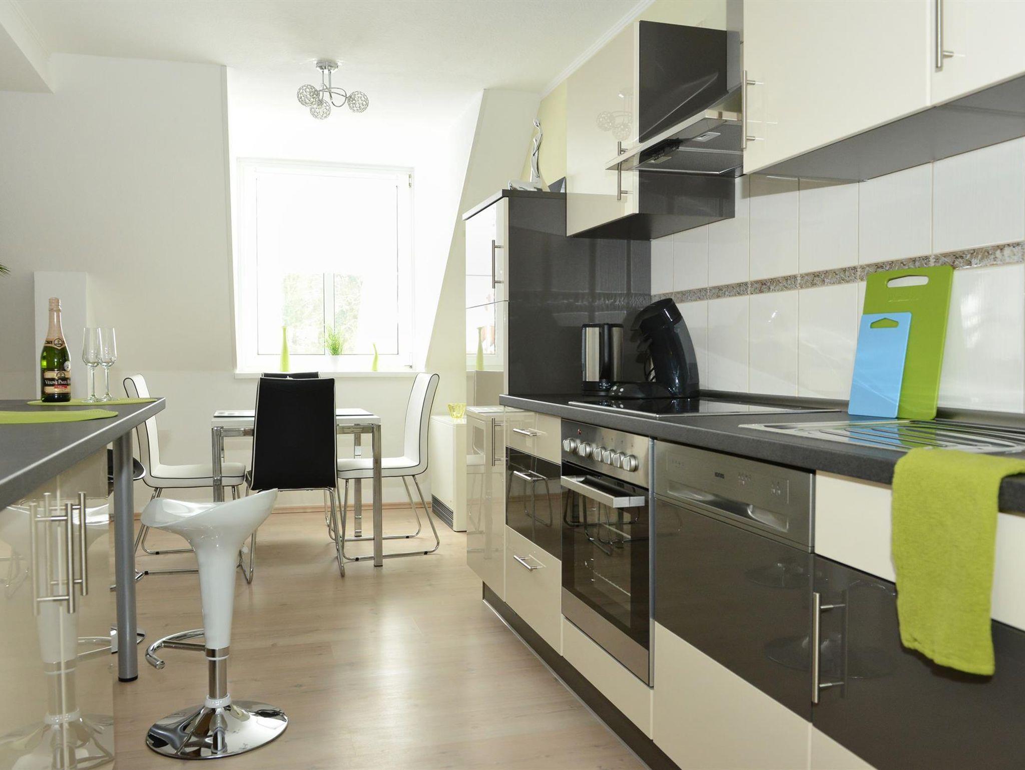 • voll ausgestattete Küche mit Ceranfeld, Multifunktionsbackherd, Mikrowelle, Geschirrspüler,
