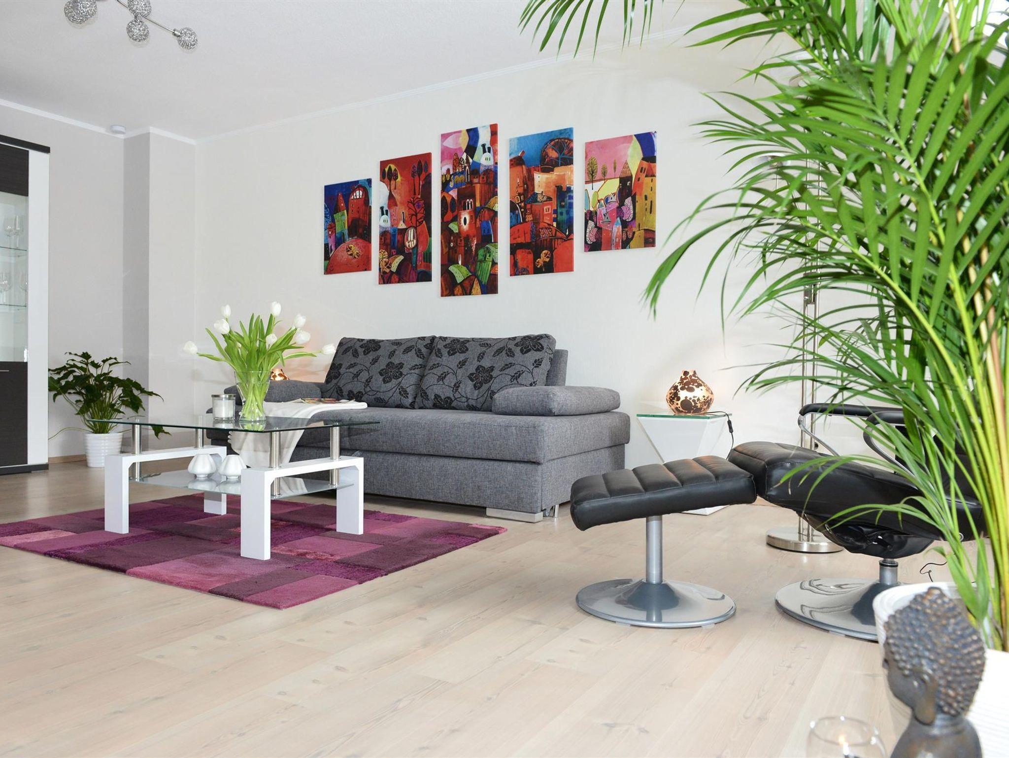 • Wohnzimmer mit Schlafsofa, Massagesessel, Smart-TV, Netflix, Amazon Prime, Kabelanschluss, DVD-Player, Stereoanlage,