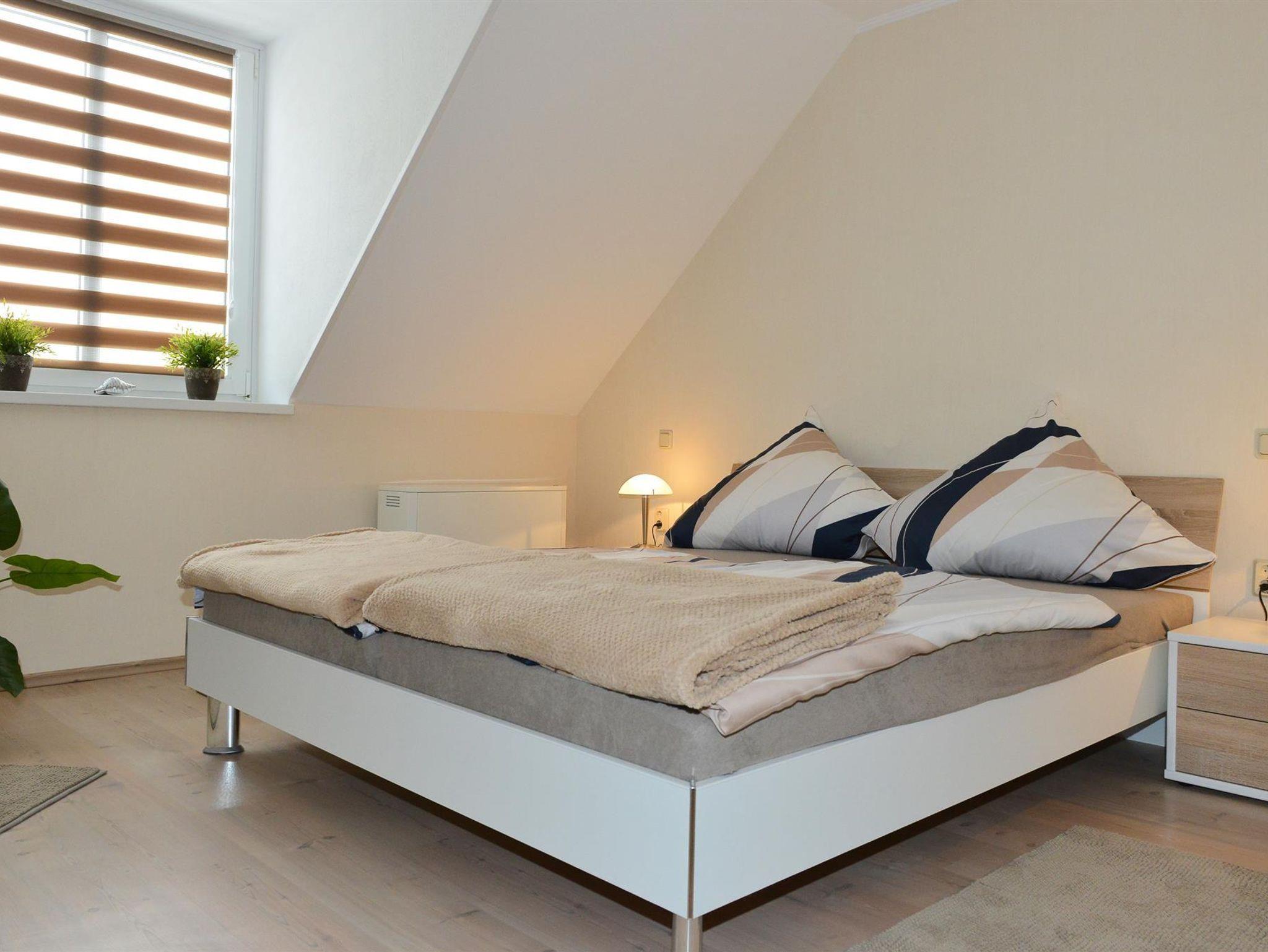 • komfortable, gehobene Einrichtung • Schlafzimmer mit Doppelbett, geräumigem Kleiderschrank
