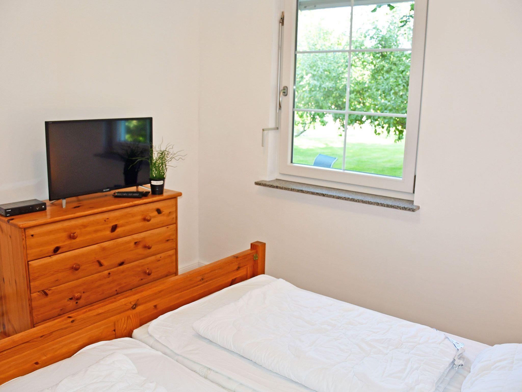 Die neu errichtete Ferienwohnung Achtern im Erdgeschoss verfügt über einen separaten Eingang. Sie ist ca. 35 qm groß, hat Platz für maximal 4 Gäste, wurde modern und liebevoll eingerichtet und bietet ein WLAN-Internetzugang. Im Wohnraum befinden sich eine bequeme Couch mit Tisch und ein modernes Flachbild-TV-Gerät . Hier steht auch ein Esstisch mit Stühlen. Die Couch kann bei Bedarf für zwei Gäste aufgebettet werden.