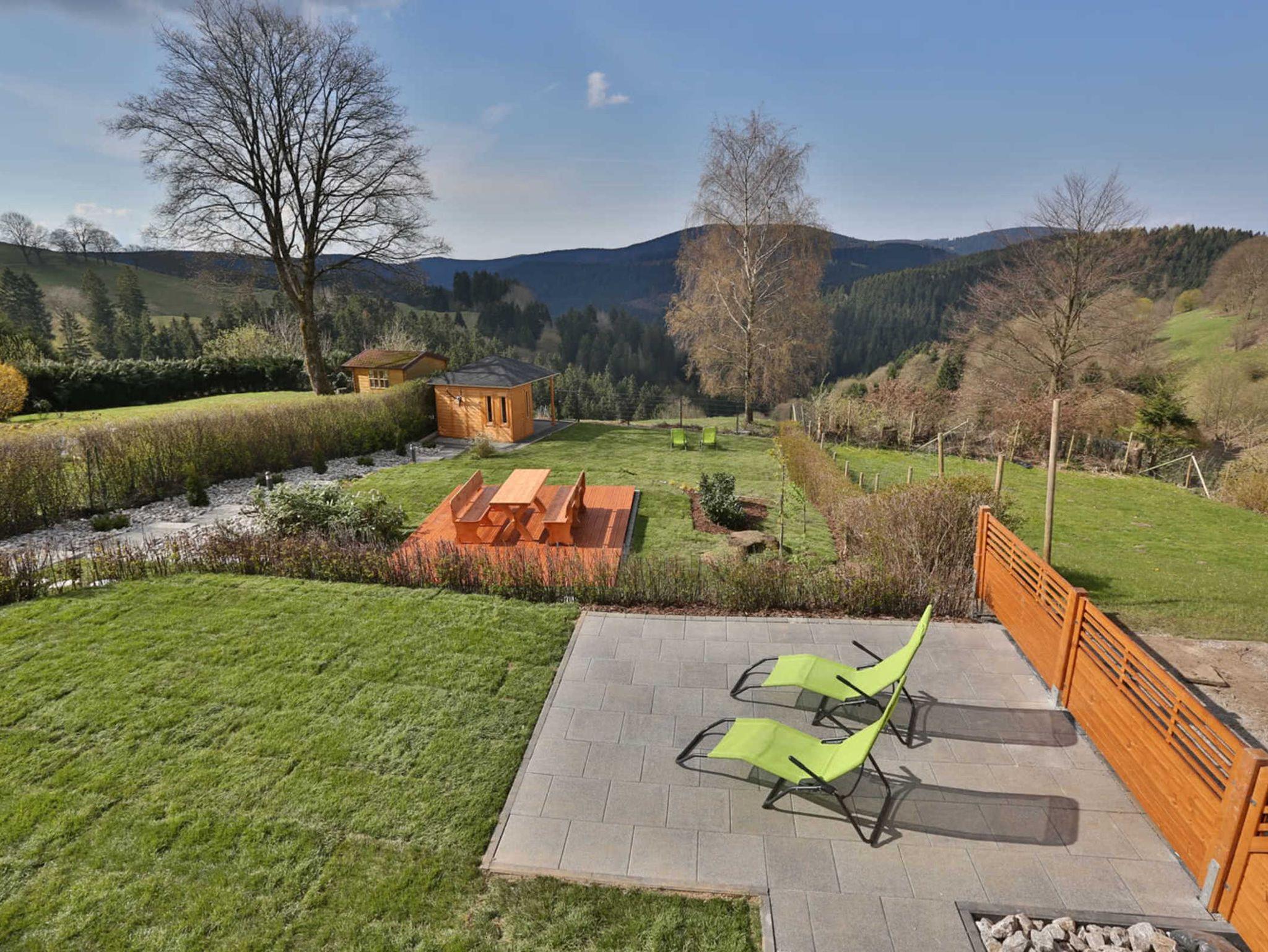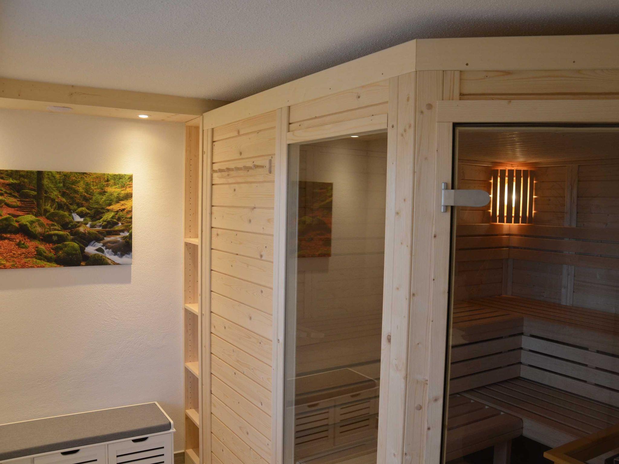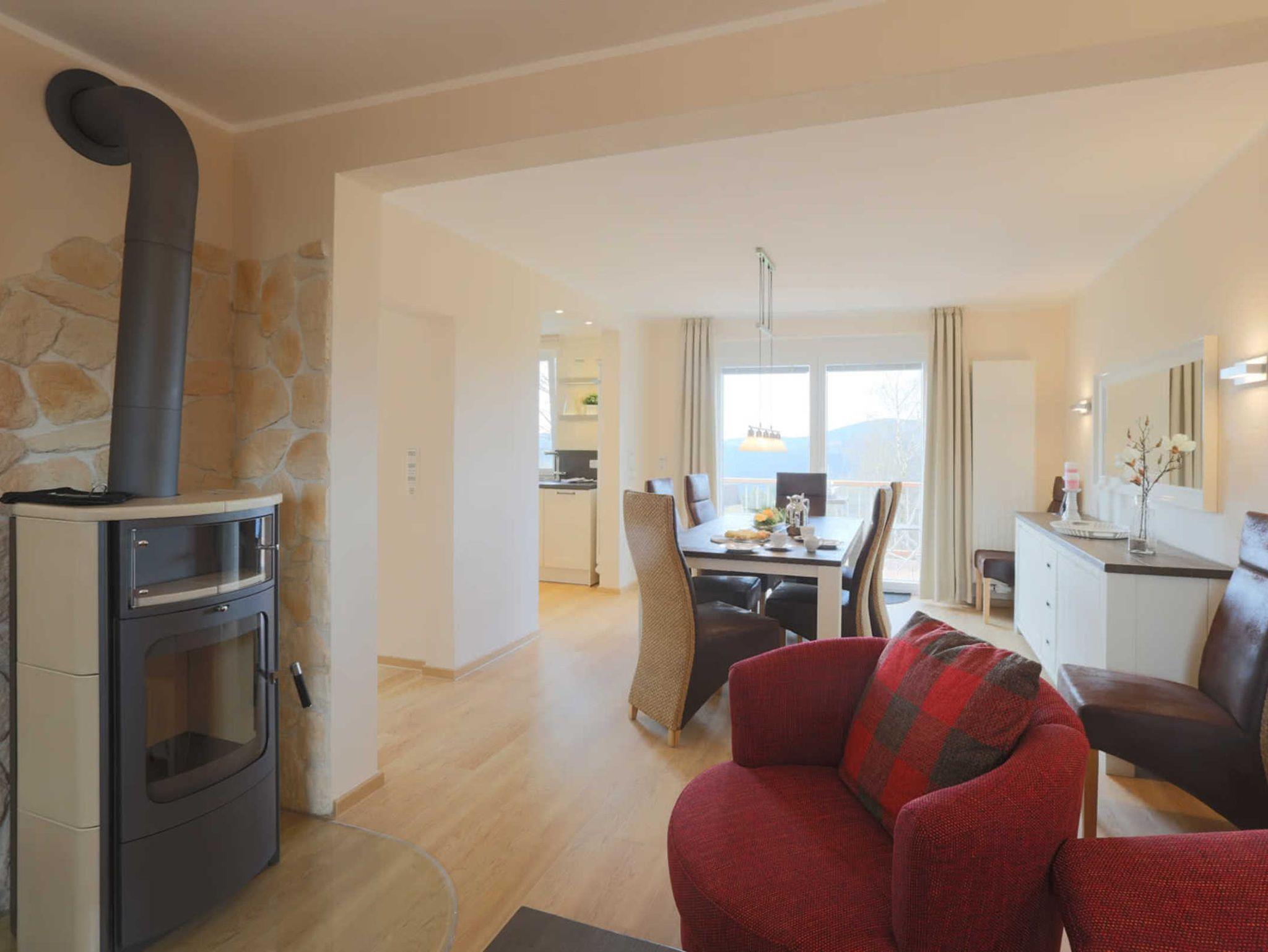 Das Ferienhaus wurde 2017 saniert und renoviert und mit hochwertigsten Materialien ausgestattet und wurde vom DTV mit 5 Sternen ausgezeichnet. Die luxuriöse und dennoch natürliche Einrichtung des Hauses lässt keine Wünsche offen. Neben der großzügigen Außenterrasse und der herrlichen, unverbauten Südhanglage sind insbesondere die Sauna direkt im Haus und die urige Grillhütte im großen Garten als Highlights zu nennen. Desweitern verfügt das Haus über 3 Schlafzimmer, einen großzügigen Wohn- und Essbereich mit Kamin und bietet so ausreichend Platz für bis zu 6 Personen. Die Etagenbetten im Kinderzimmer können gern auch von Erwachsenen bezogen werden, allerdings ist dann mit Komforteinschränkungen zu rechnen.