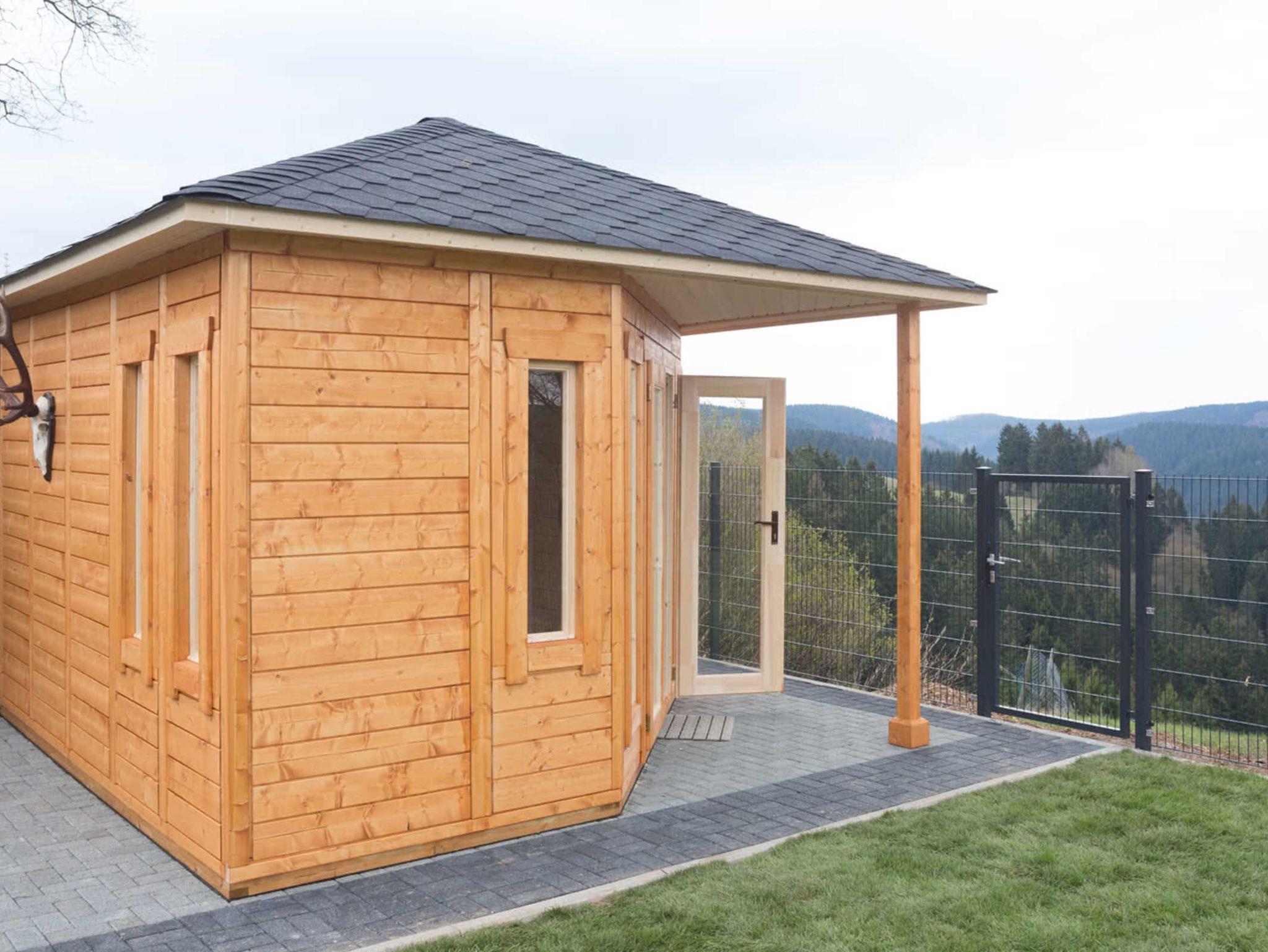 Die Sauna und das zweite Duschbad befinden sich im Untergeschoss. Von dort aus gelangt man direkt in den großen Garten mit Sonnenterrasse, Spiel- und Liegewiese, Sitzecke und Gartenhaus mit Gasgrill.