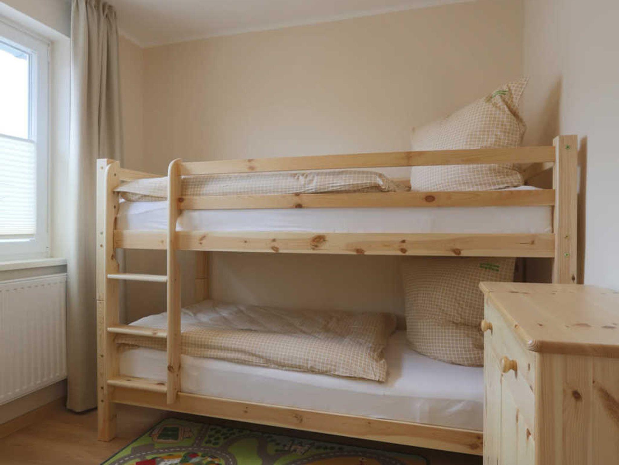 Die Etagenbetten im Kinderzimmer können gern auch von Erwachsenen bezogen werden, allerdings ist dann mit Komforteinschränkungen zu rechnen.