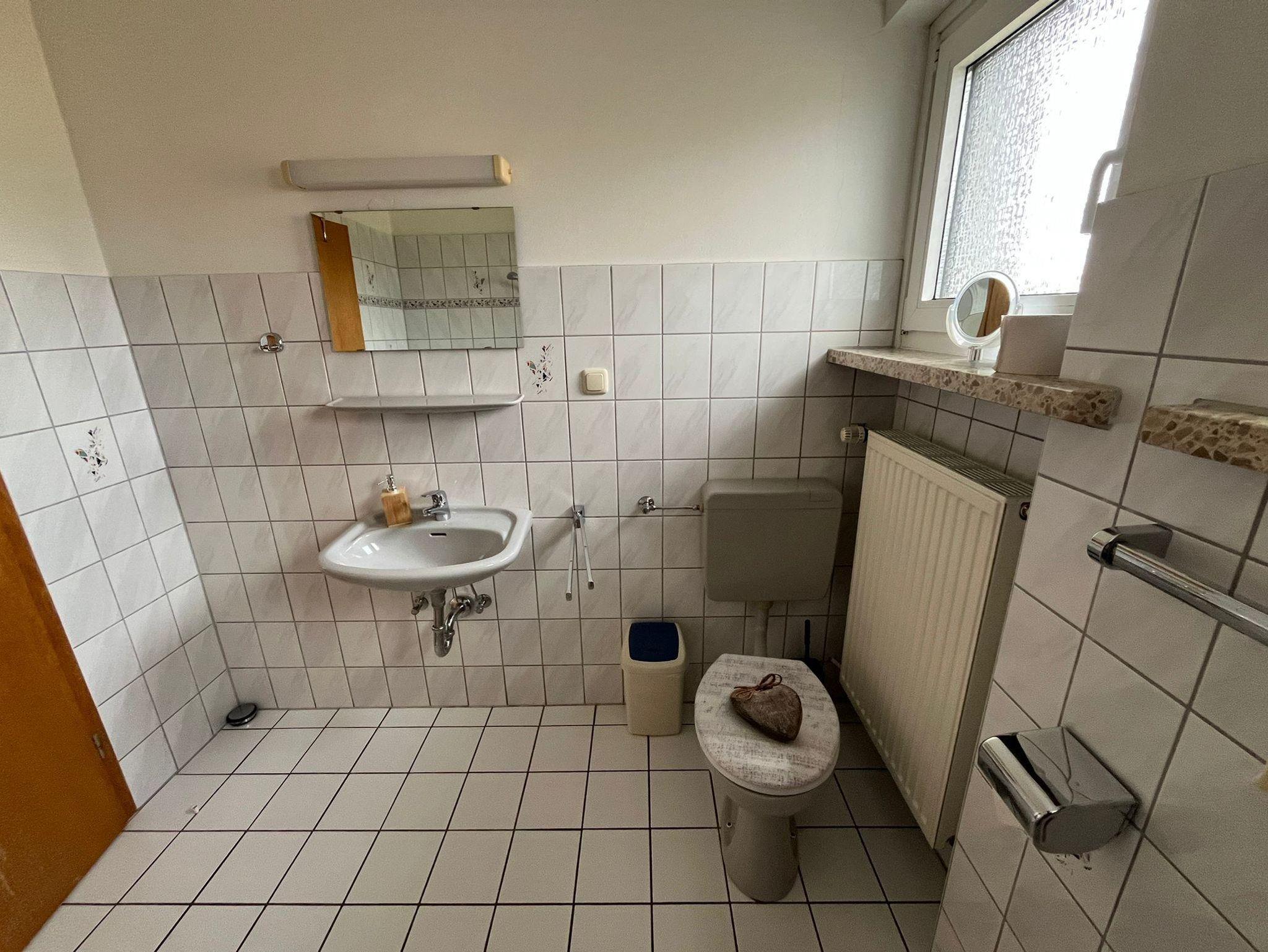Aus dem Schlafzimmer blicken Sie über Wiesen und Wälder, das Wohnzimmer hat Süd-Ost-Lage. Das Badewannen-/Duschbad hat ein Fenster zum Garten. Ein Fön und ein Kosmetikspiegel sind vorhanden.