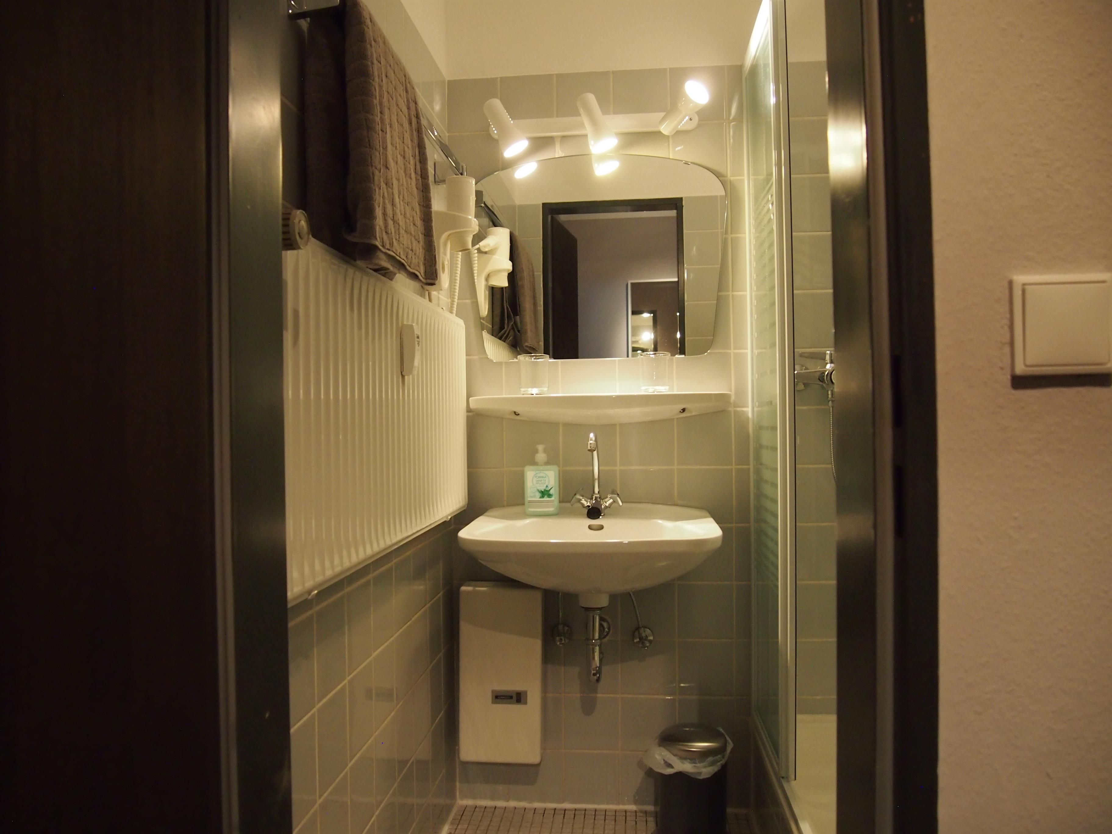 Im Bad, ausgestattet mit WC, Waschbecken und Dusche, stehen unseren Gästen auch ein Haartrockner, Handwaschseife und Kosmetiktücher zur Verfügung.
