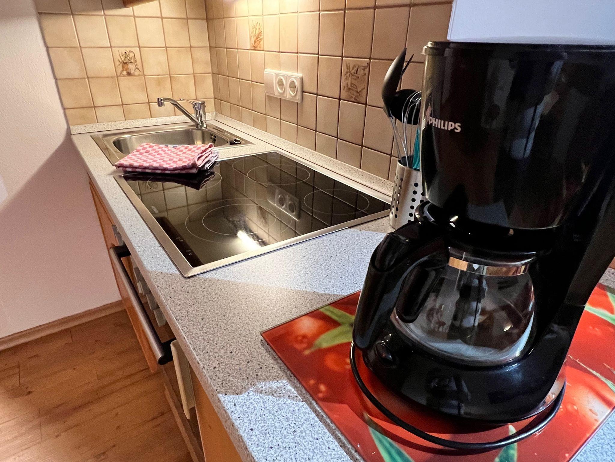 • Die Ferienwohnung ist ausgestattet mit Geschirr, Töpfen, Toaster, Kaffeemaschine, Wasserkocher, Bettwäsche & Handtüchern.