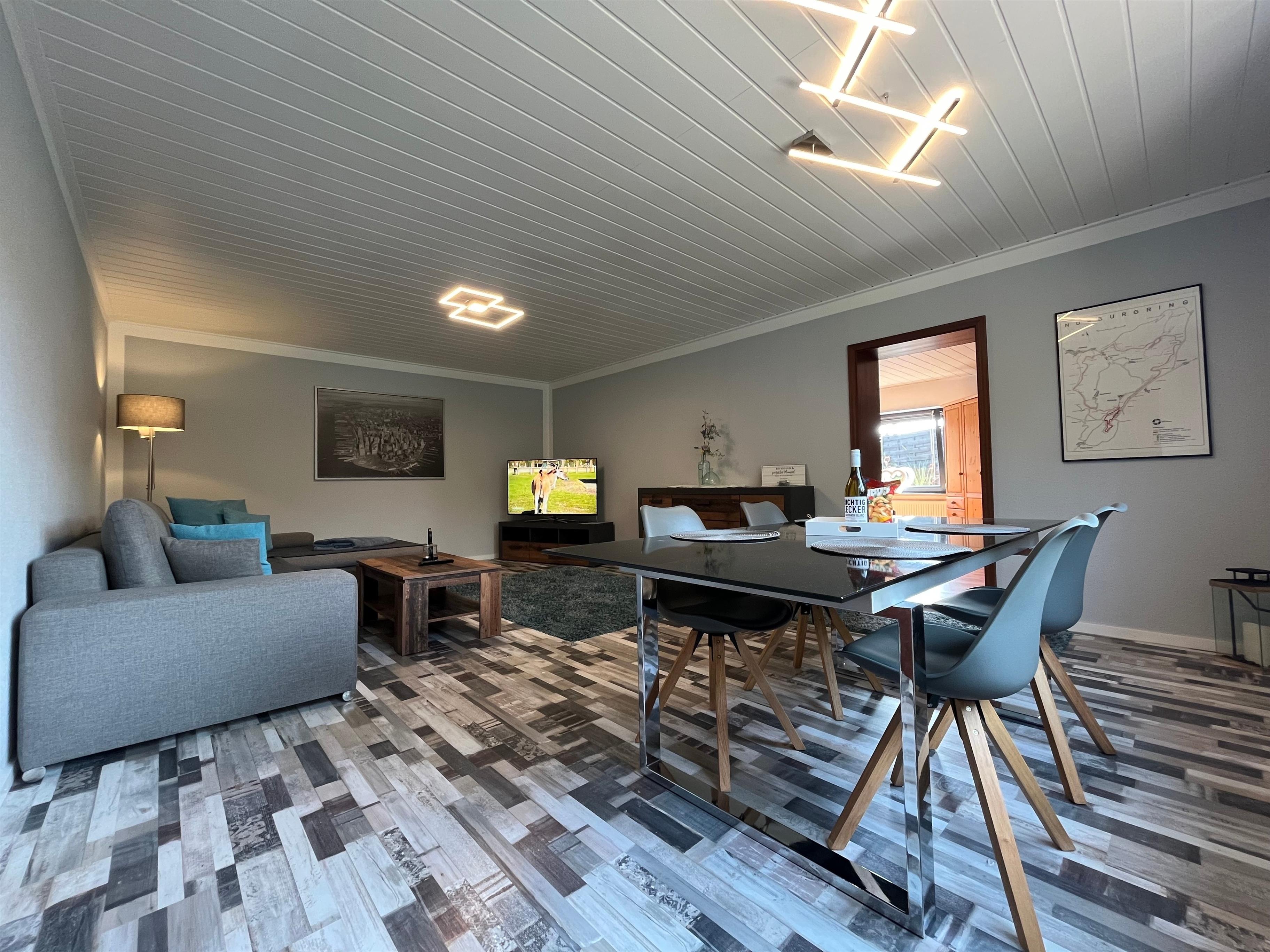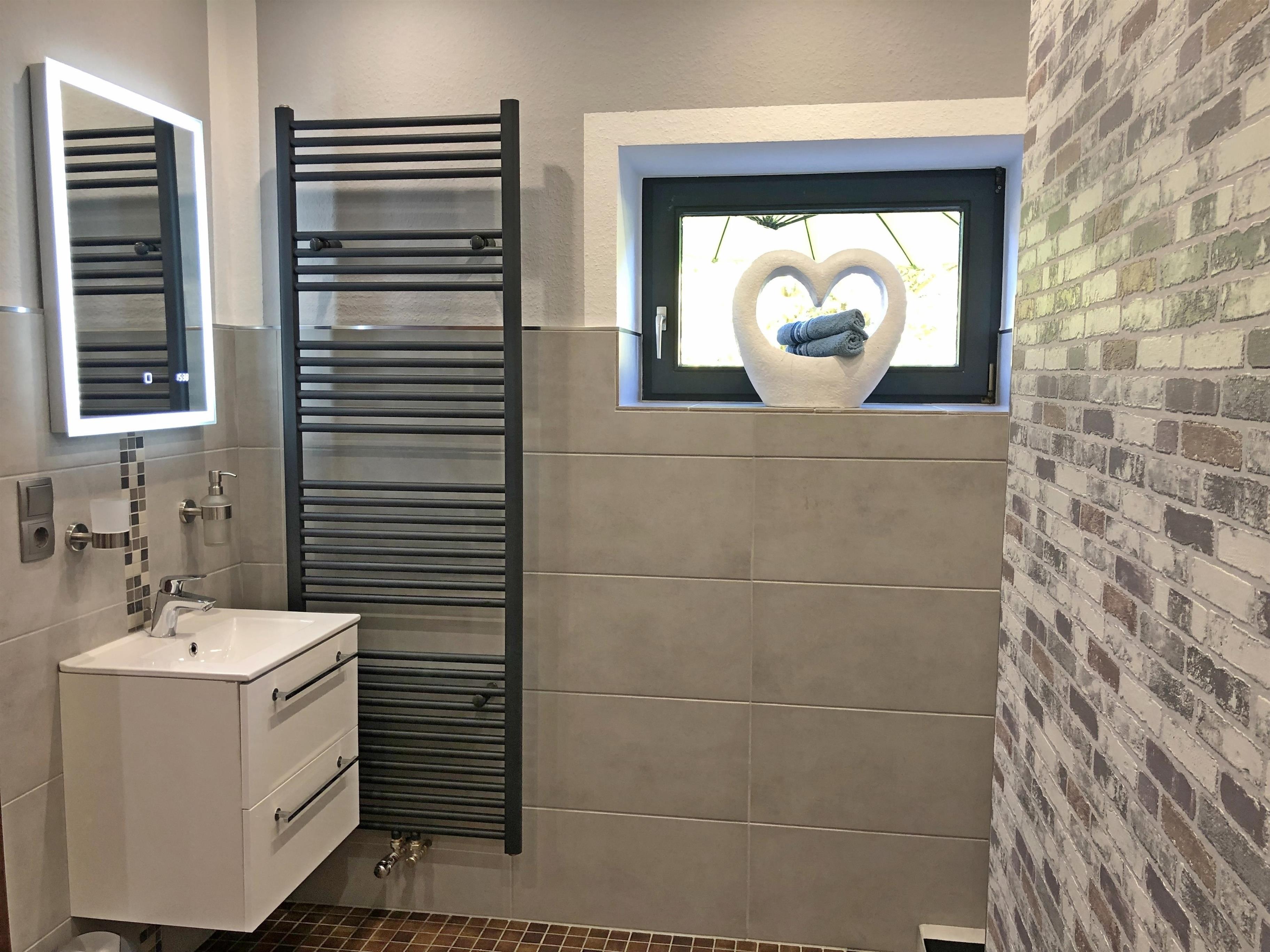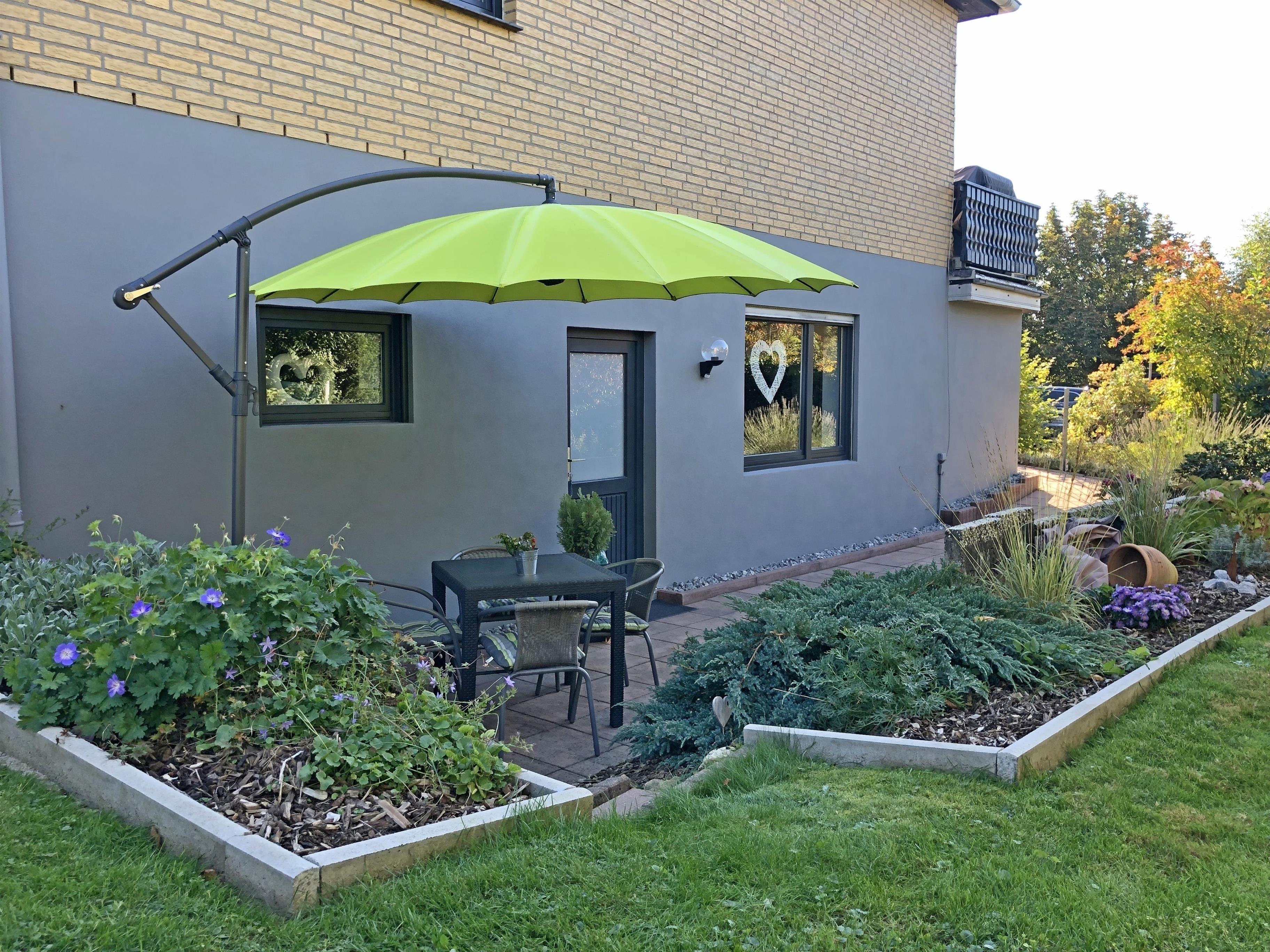 Unsere gemütliche Ferienwohnung mit eigenem Eingang ist 73m² groß und bietet Platz für 1-4 Personen. Sie besitzt einen großen Wohn/Essbereich mit Schlafcouch, TV und W-LAN zur kostenlosen Nutzung. Im geräumigen Schlafzimmer befindet sich ein Doppelbett, zwei Einzelbetten, sowie einen Kleiderschrank und einen Abstellraum. Die Küche ist komplett ausgestattet mit Spülmaschine, Mikrowelle und zwei Kaffeemaschinen ( Filter und Pads ).Das geräumige Badezimmer verfügt über eine große bodentiefe Dusche, Handtuchwärmer und Waschmaschine. Alle Fenster sind mit Rolläden ausgestattet.
