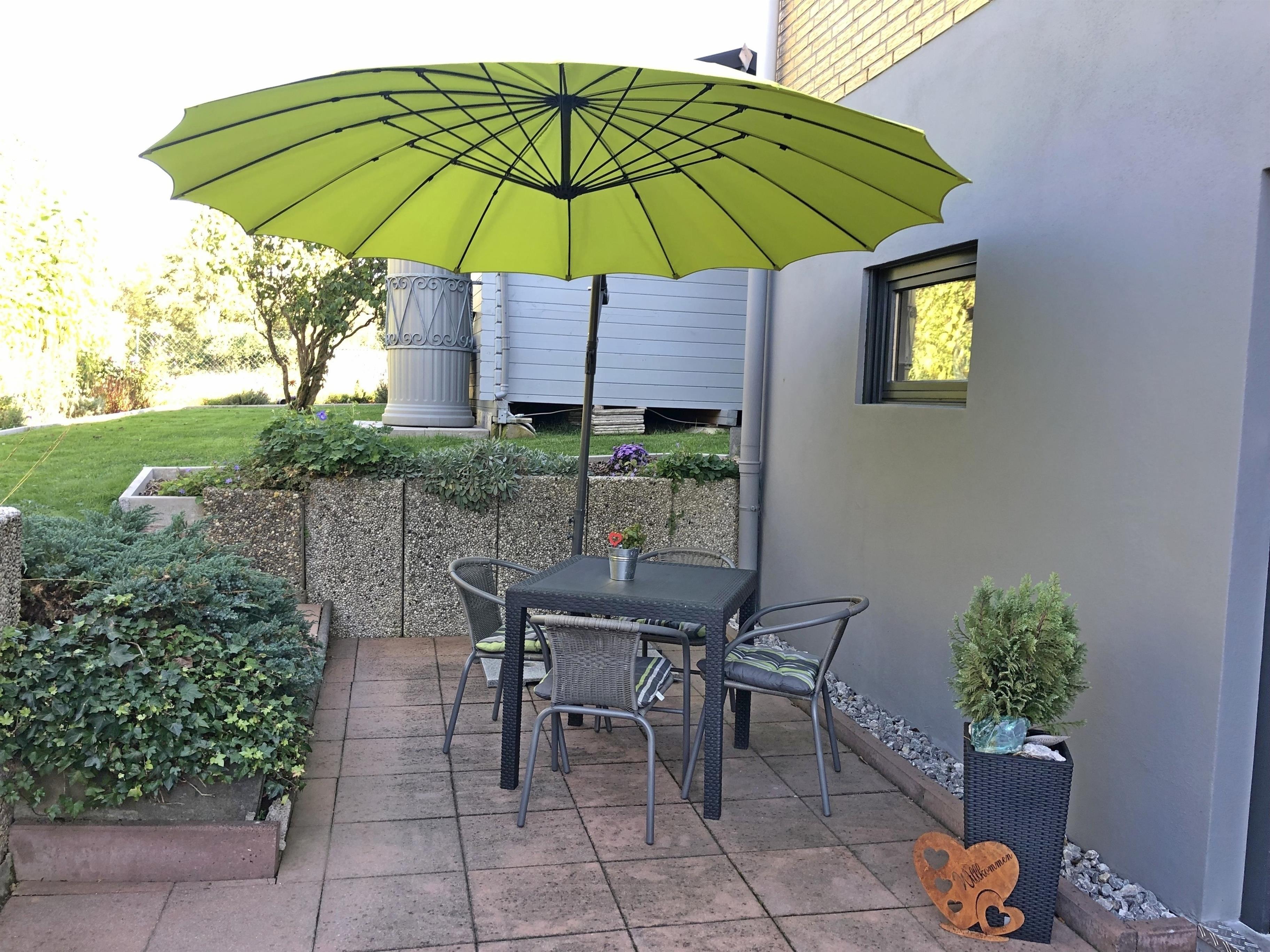 Geschützter Freisitz mit Terrassenmöbeln,umgeben von Wiesen und Feldern, ruhig an einem Wendehammer gelegen.Parkmöglichkeit vorhanden.