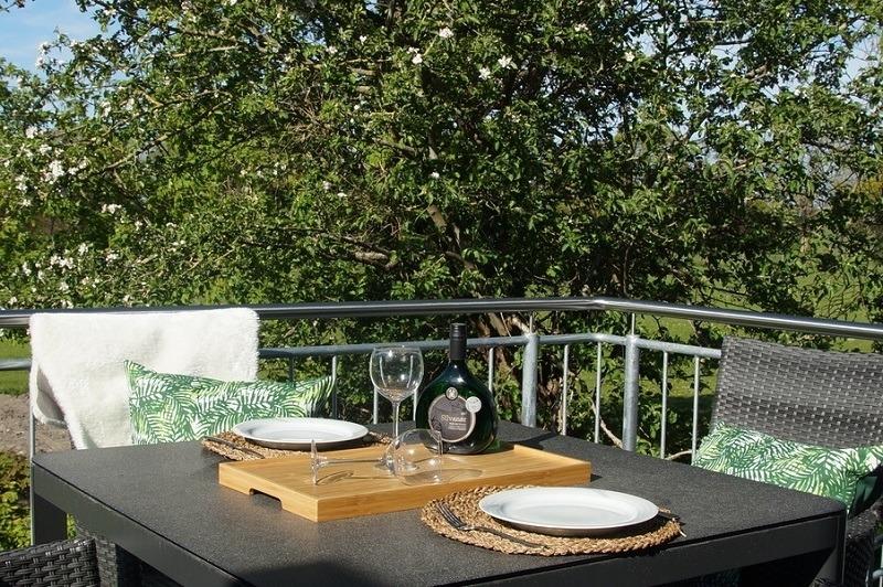 Moderne Ferienwohnung Himmelblau in Schortens mit Balkon, Gartenblick und viel Natur, ideal für Familien und Paare.