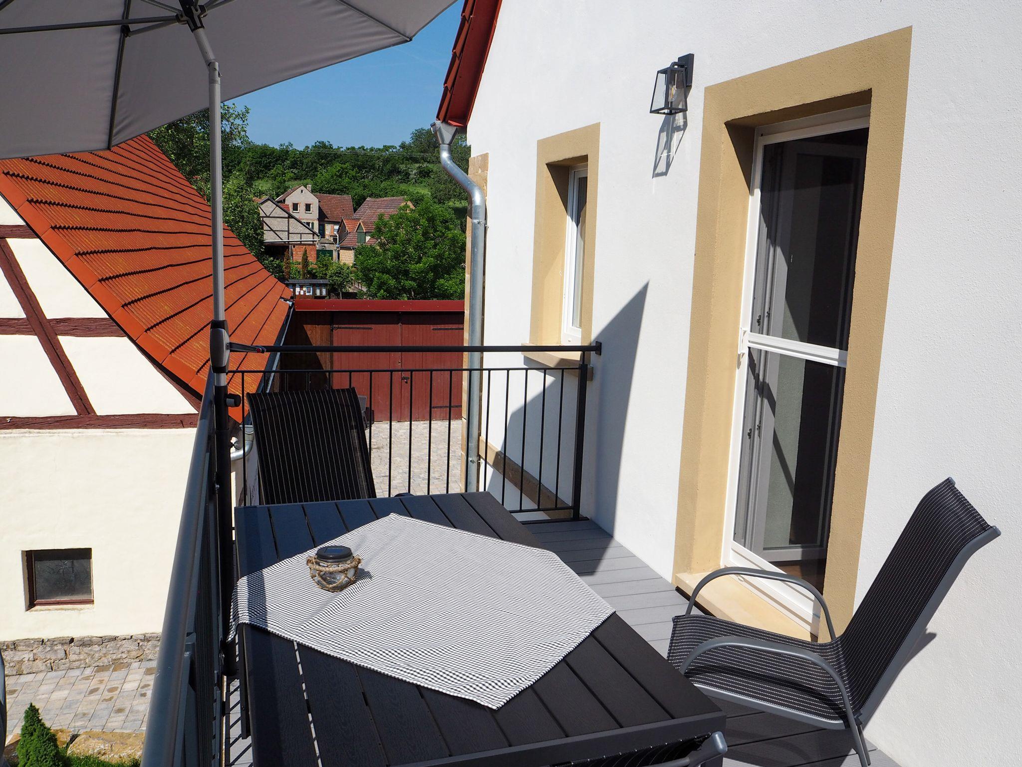 Entspannen Sie nach Ihrer Wanderung im Weinparadies auf der Terrasse oder dem Balkon bei einem Glas Frankenwein und genießen Sie die idyllische Ruhe.