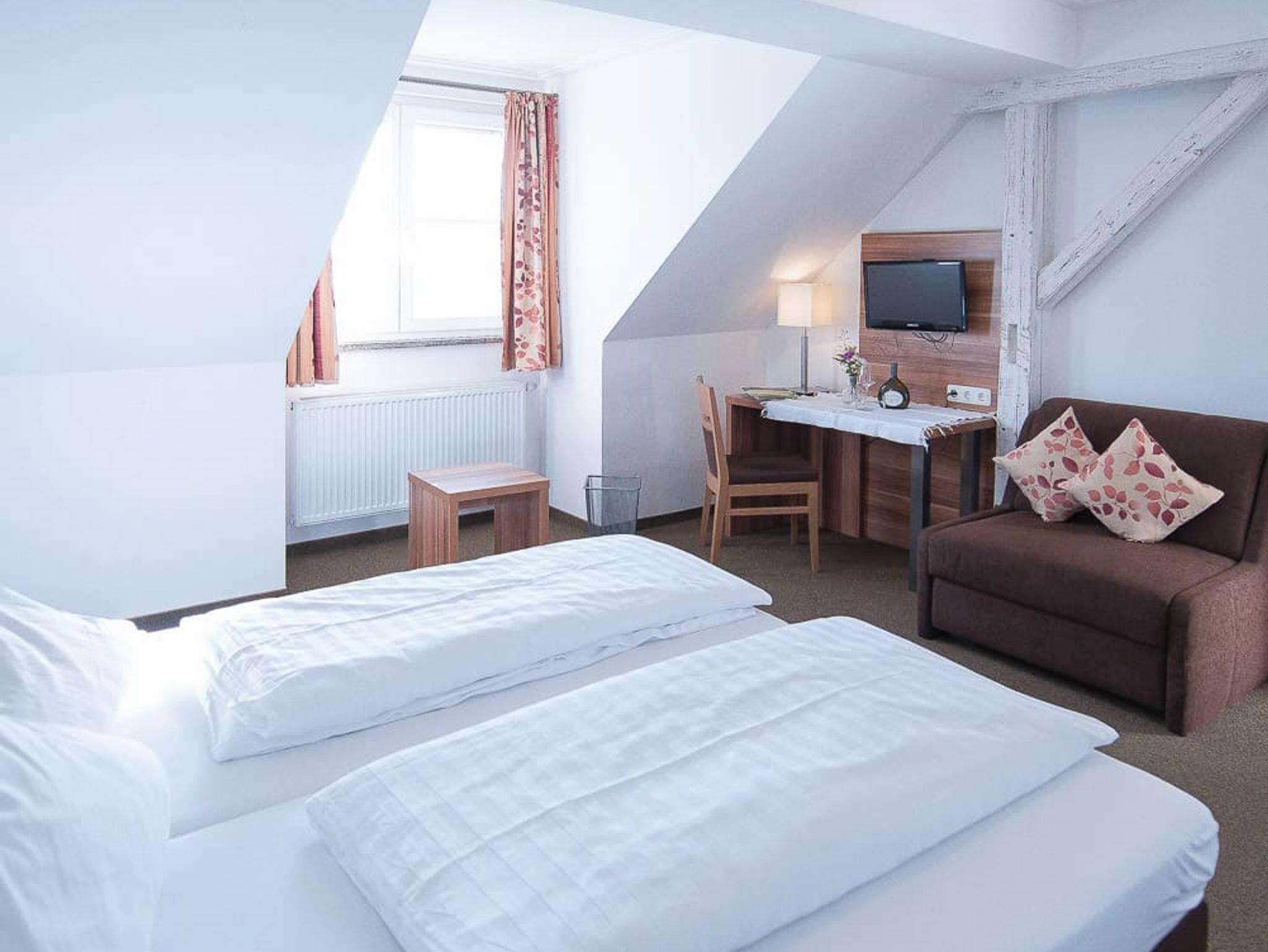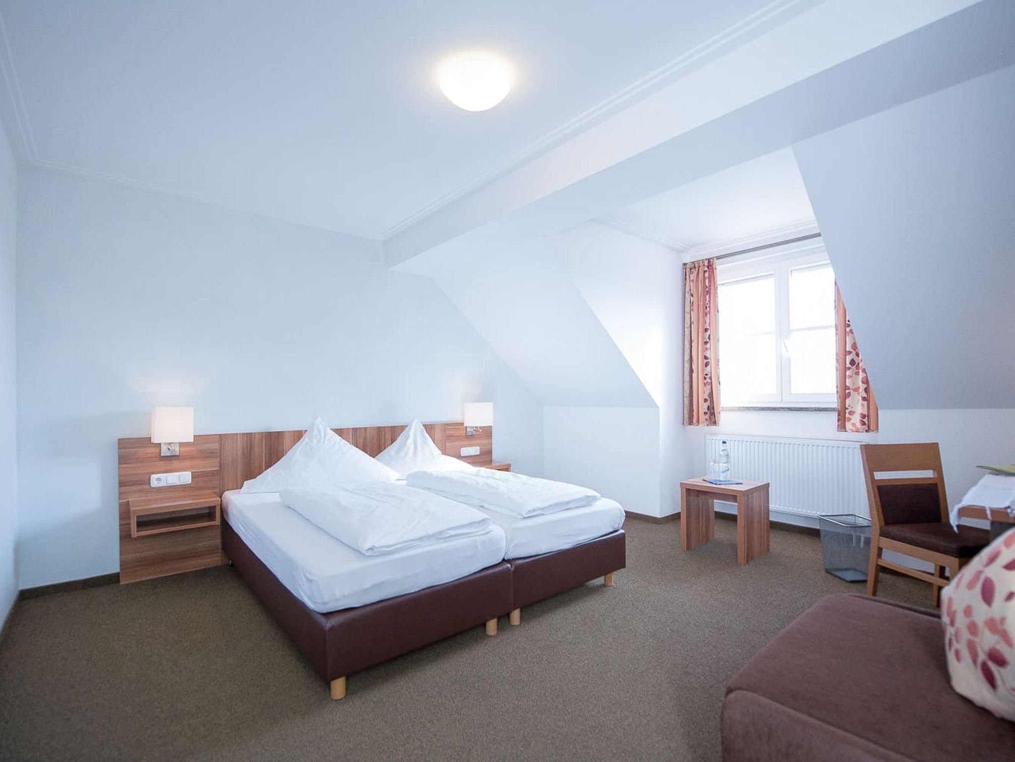 Unsere Zimmer verfügen über eine Sitzecke, TV und Schreibtisch. Die Zimmer sind ca. 23qm groß. Die Bäder sind mit Dusche, WC und Föhn ausgestattet.