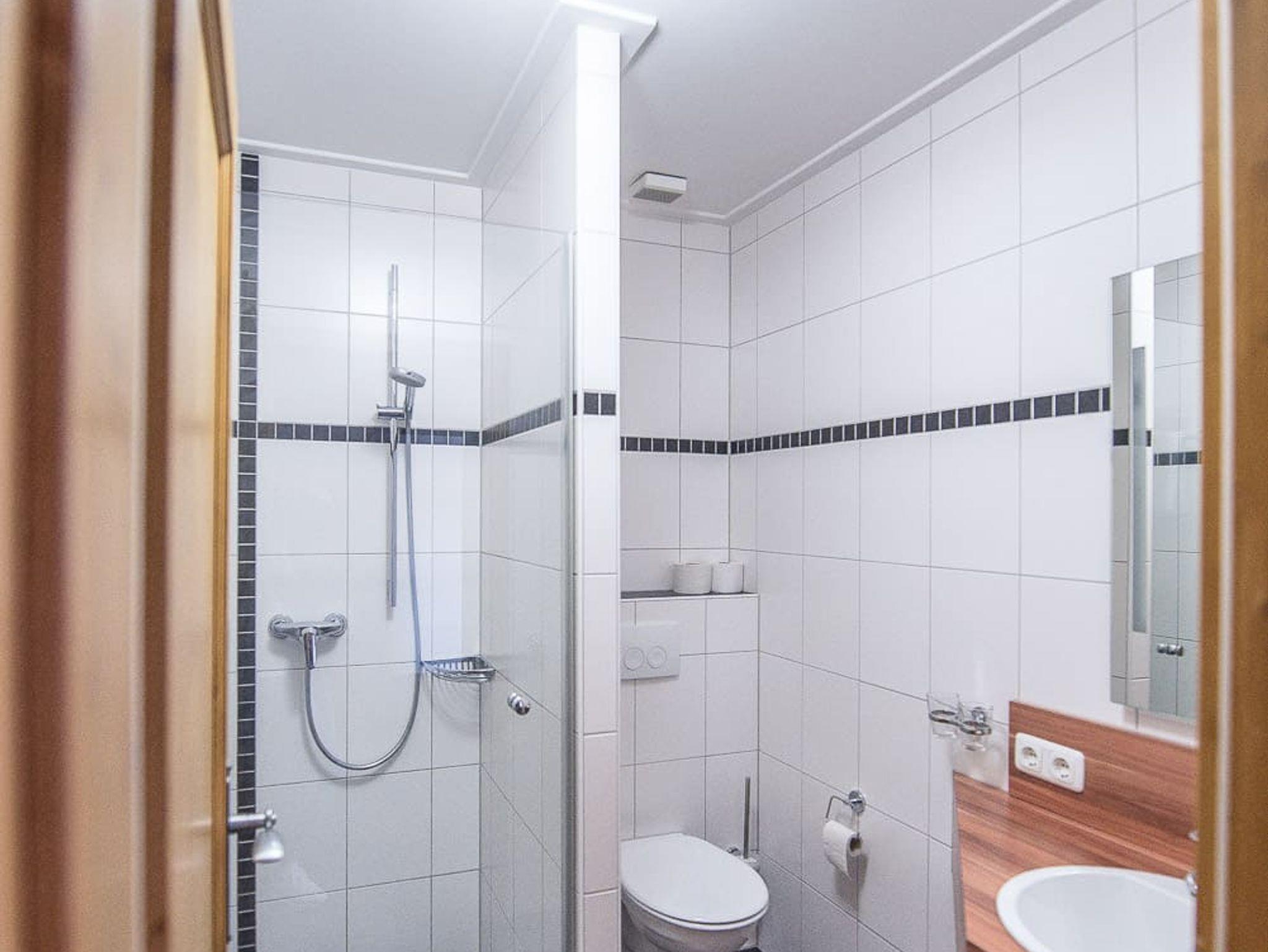 Unsere Zimmer verfügen über eine Sitzecke, TV und Schreibtisch. Die Zimmer sind ca. 23qm groß. Die Bäder sind mit Dusche, WC und Föhn ausgestattet.