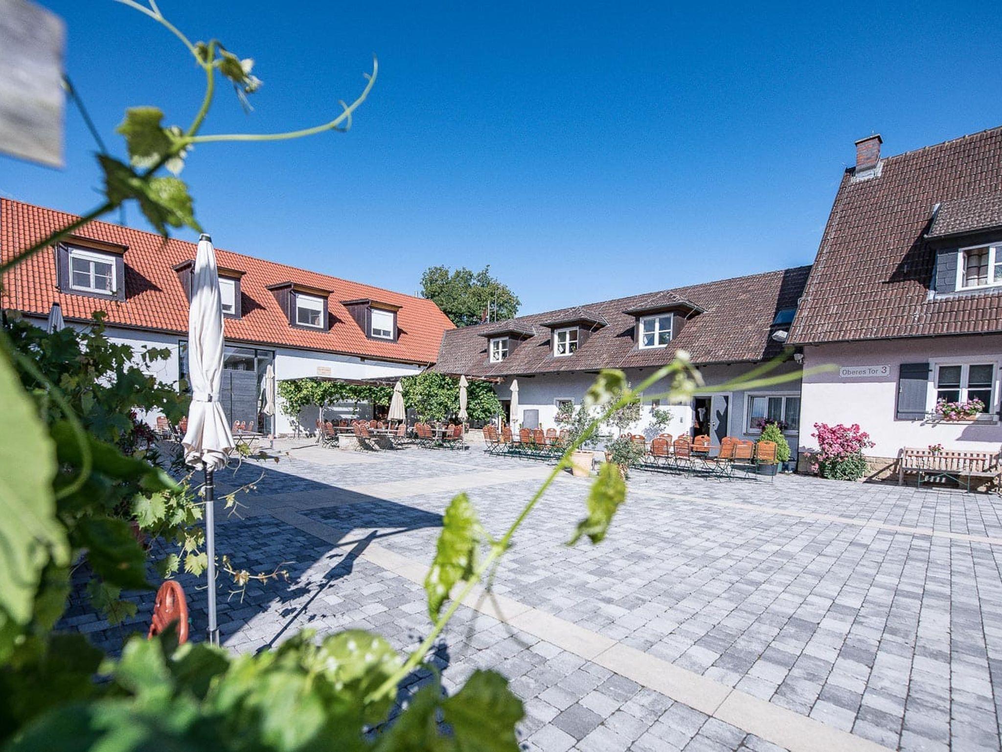 In den warmen Monten kann man im Innenhof zwischen den Reben die Seele baumeln lassen und den Stress und die Hektik des Alltags vergessen.