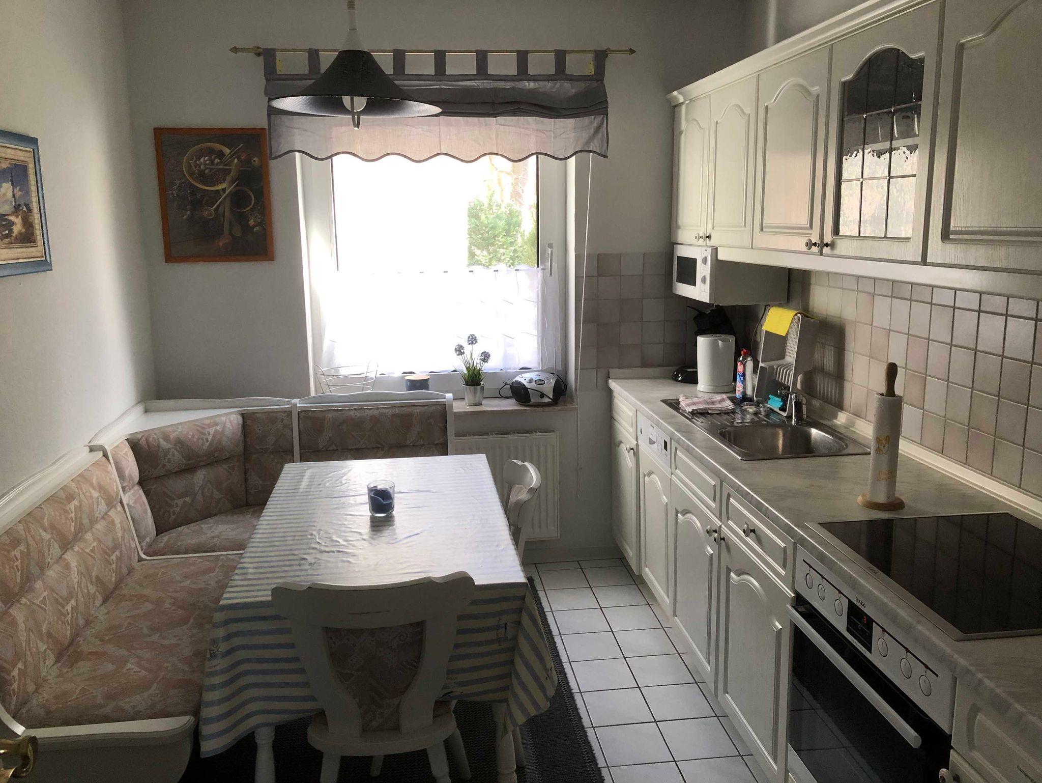 In der Ferienwohnung finden Sie eine Küche mit Essbereich und ein Duschbad mit Waschmaschine.