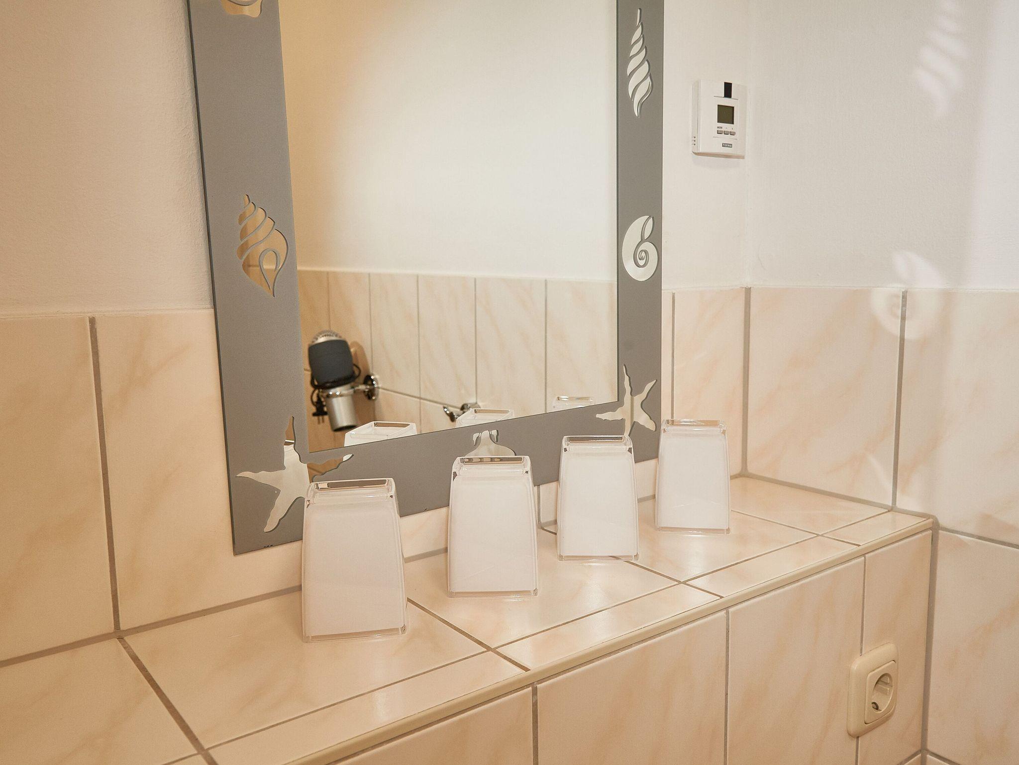 Das Badezimmer Ihres Urlaubsdomizils befindet sich ebenfalls im Erdgeschoss und bietet Dusche/WC, einen beheizbaren Handtuchtrockner sowie einen Waschtisch inkl. Fön.