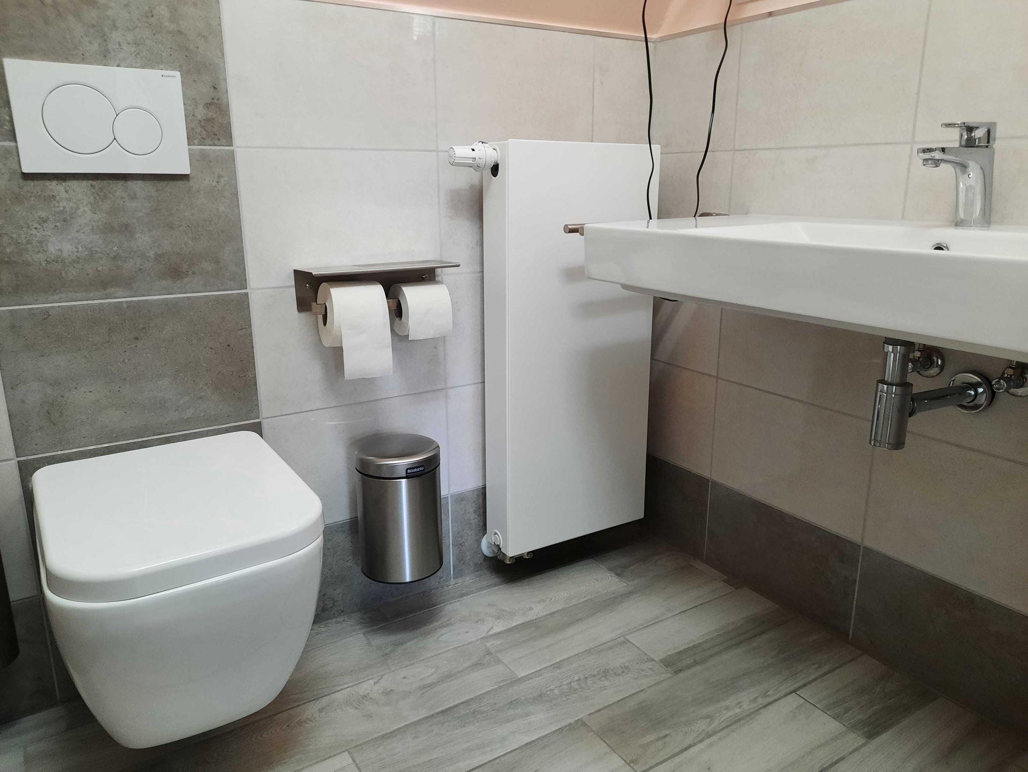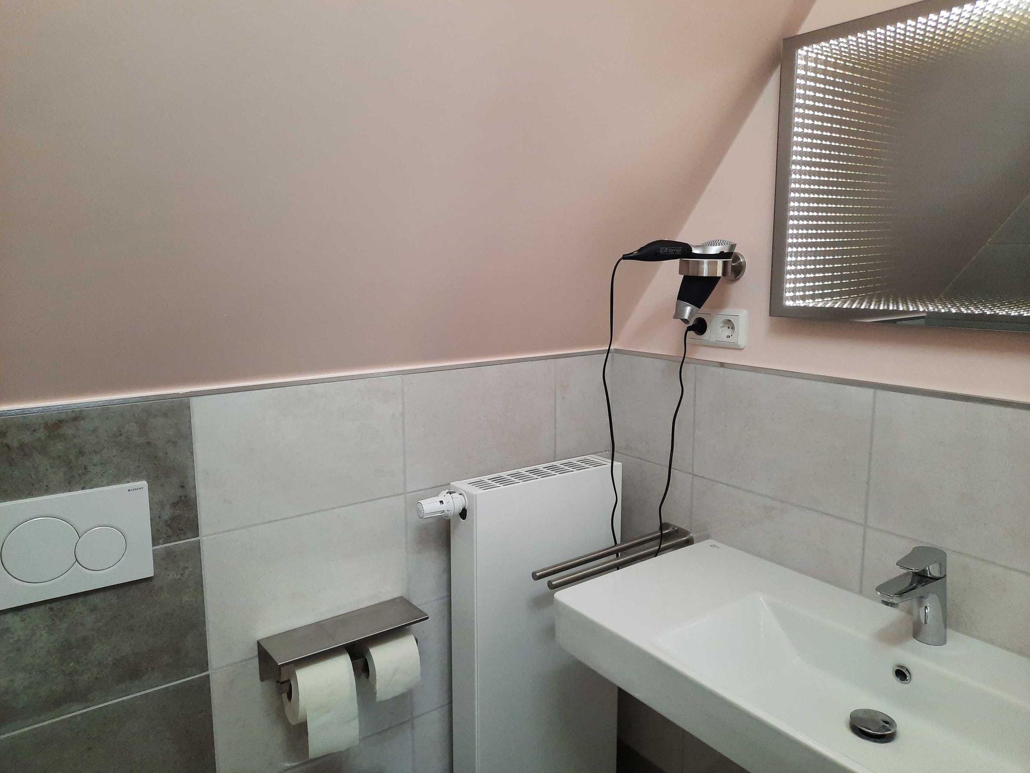 Die Dusche/WC befindet sich außerhalb des Zimmers, direkt gegenüber und ist zur alleinigen Nutzung.