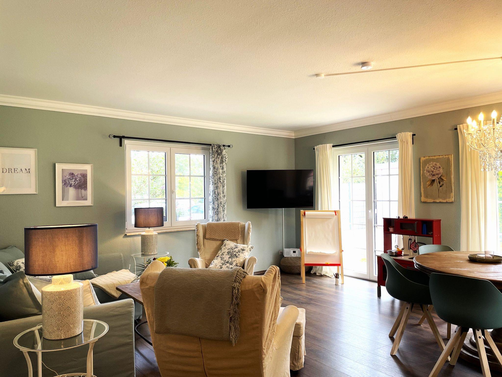 Das Ferienhaus „Seeliebe“ im Bungalow Steyl, bietet seinen Gästen einen in hellen Farben gehaltenen, eleganten Wohnbereich mit Zugang zur offenen, komplett ausgestatteten Küche. Sämtliche Annehmlichkeiten wie Backofen, Geschirrspüler, Kühlschrank mit Gefriermöglichkeit, Toaster, Wasserkocher mit Temperaturanzeige, Kaffeemaschine sind vorhanden. Auch für einen kleinen Plausch in der Küche befinden sich verschiedene Sitzmöglichkeiten. Des Weiteren besitzt die Unterkunft 3 Schlafzimmer. 2 Schlafzimmer sind mit Doppelbetten, 1 Kommode, Kleiderständer und zum Teil mit einem TV-Flachbildschirm ausgestattet. Im 3. Schlafzimmer befindet sich ein Ausziehbett, welches entweder als Einzelbett oder ausgezogen für 2 Personen belegbar ist.