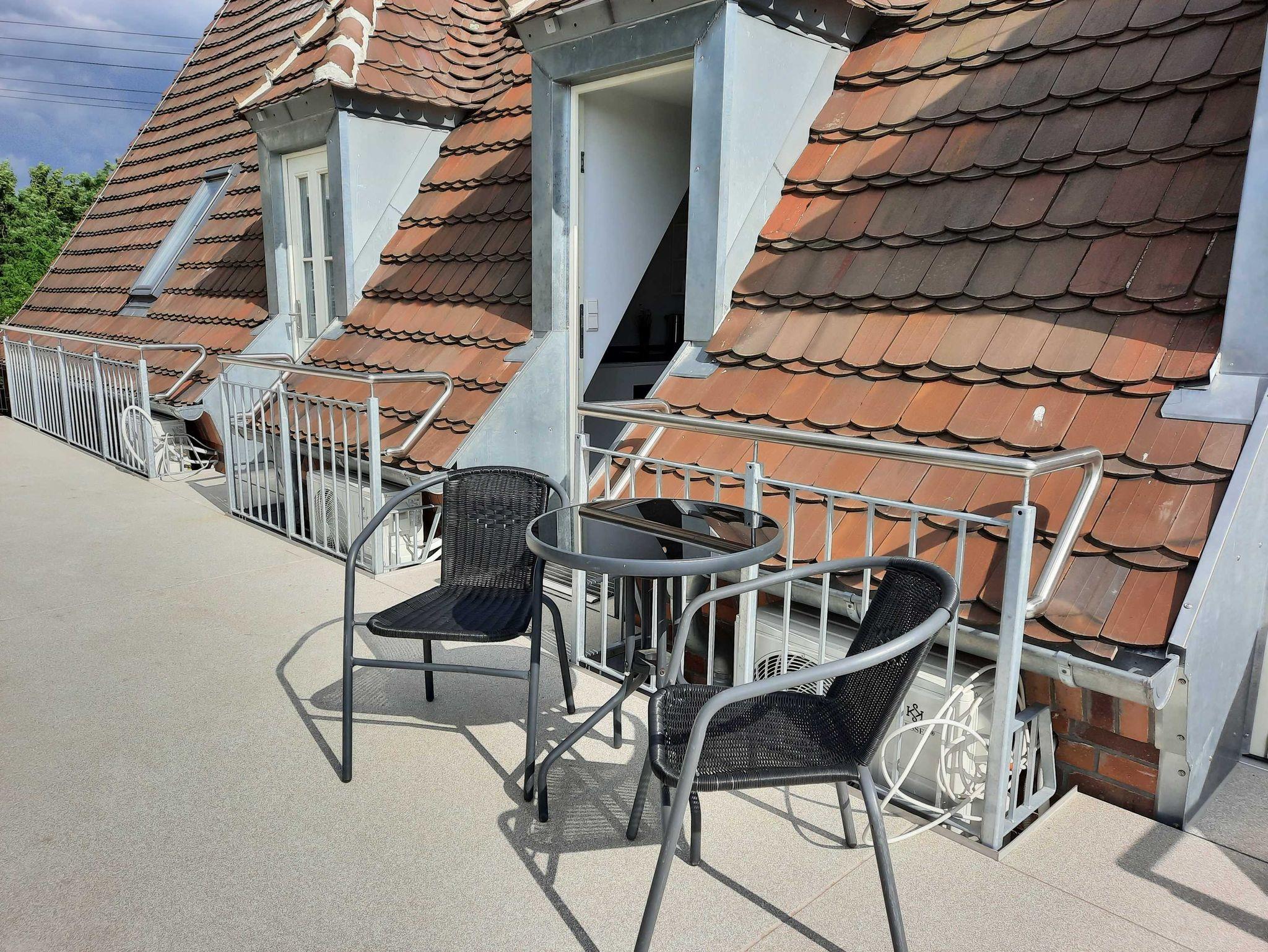 Eine Sitzmöglichkeit auf der Galerie ist im Außenbereich vorhanden.