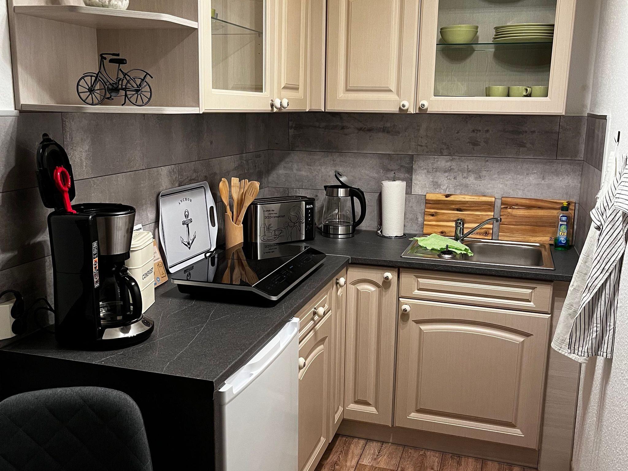 Ausgestattet mit einem Boxspringbett (160x 200) im Schlafzimmer mit genügend Abstellfläche und Safe, erwartet unsere Gäste ein gemütliches Wohnzimmer mit Smart - TV ( drehbar ins Schlafzimmer) und Sitzmöglichkeit. In der ebenso neu eingerichteten Küche haben wir für unsere Gäste die Möglichkeit erschaffen, sich Speisen selbst zubereiten zu können und diese voll ausgestattet. Für denn aktiven Angler unter Euch steht ein Räucherofen und verschiedene Späne zur Verfügung.