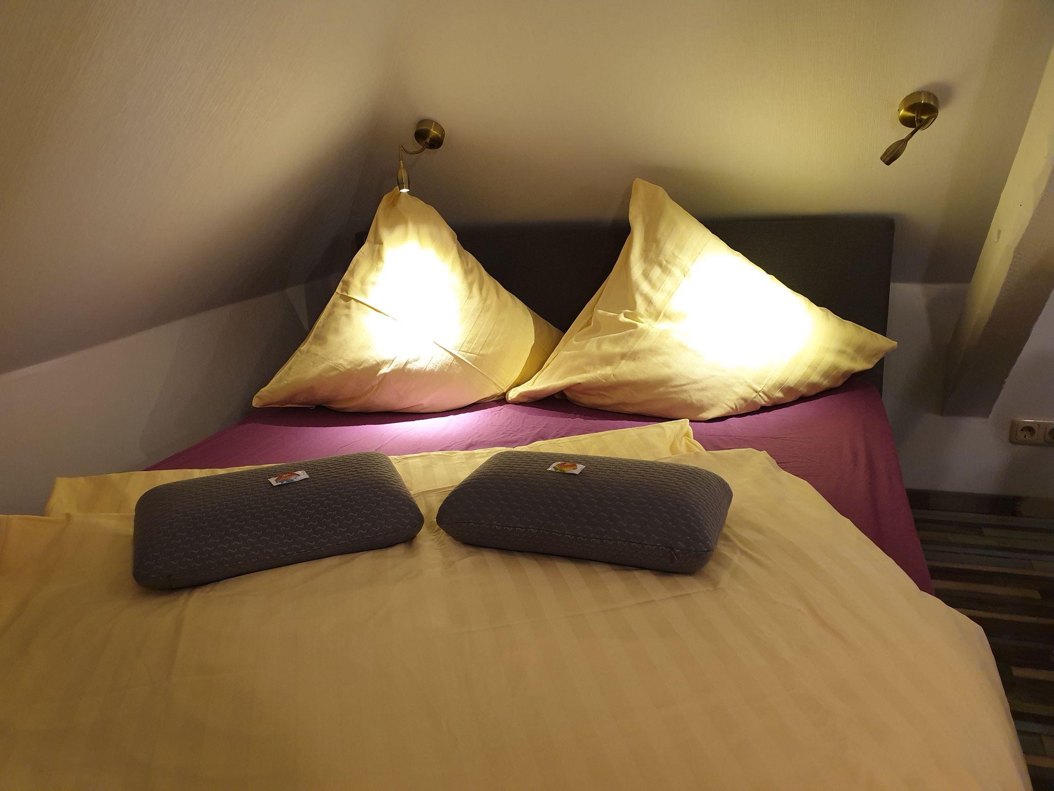 Das Doppelzimmer befindet sich im Dachgeschoß des Hauses.