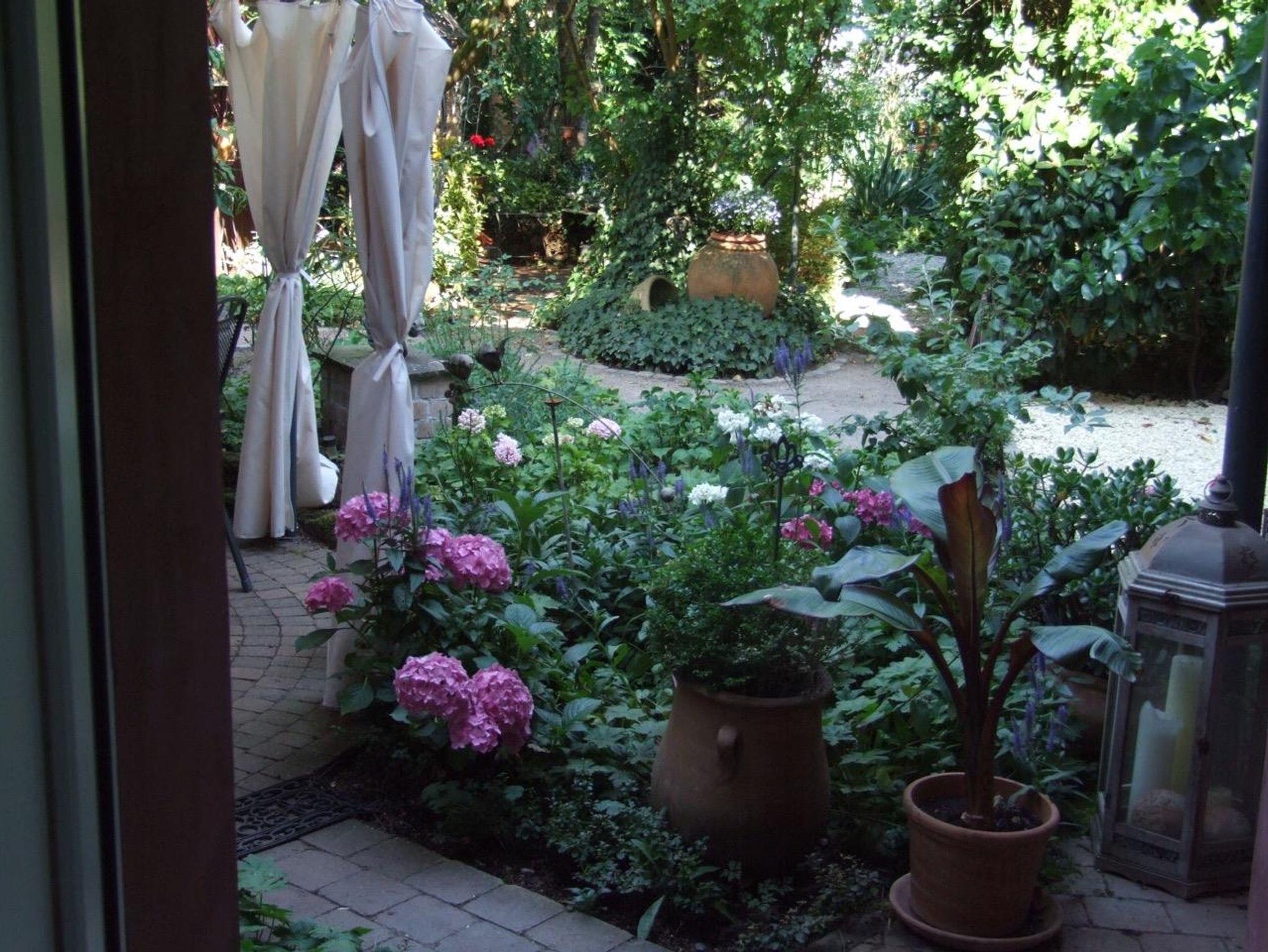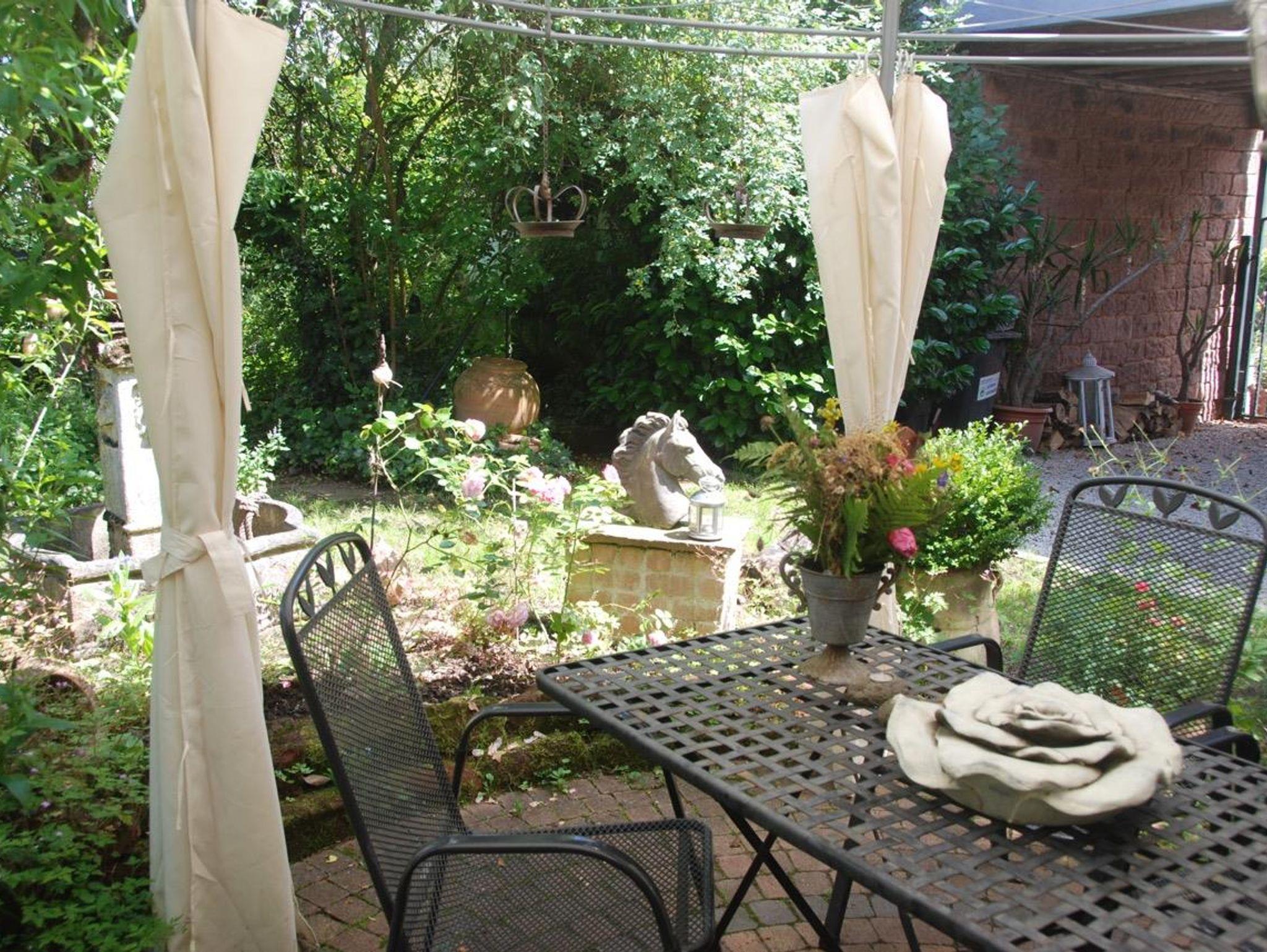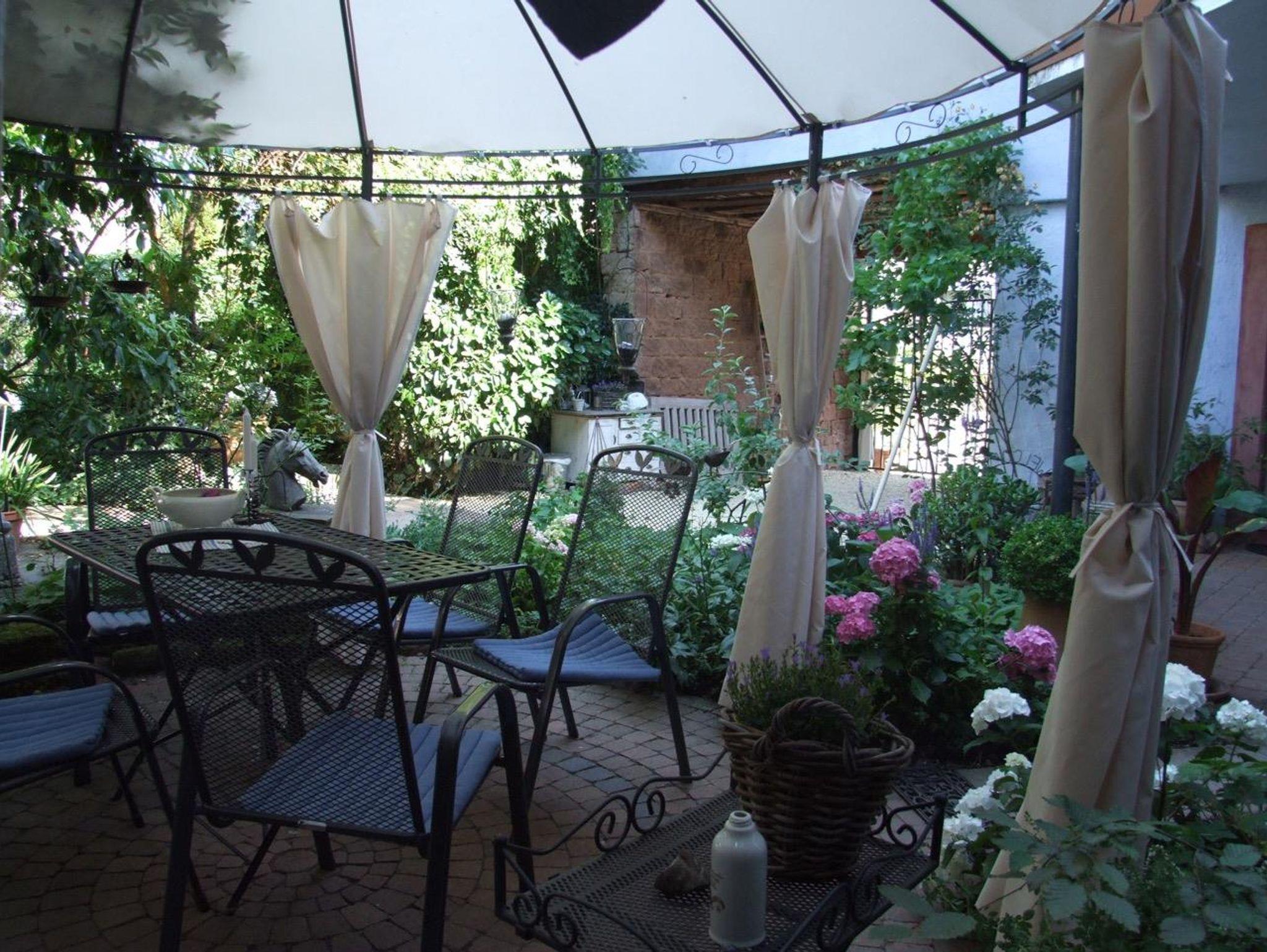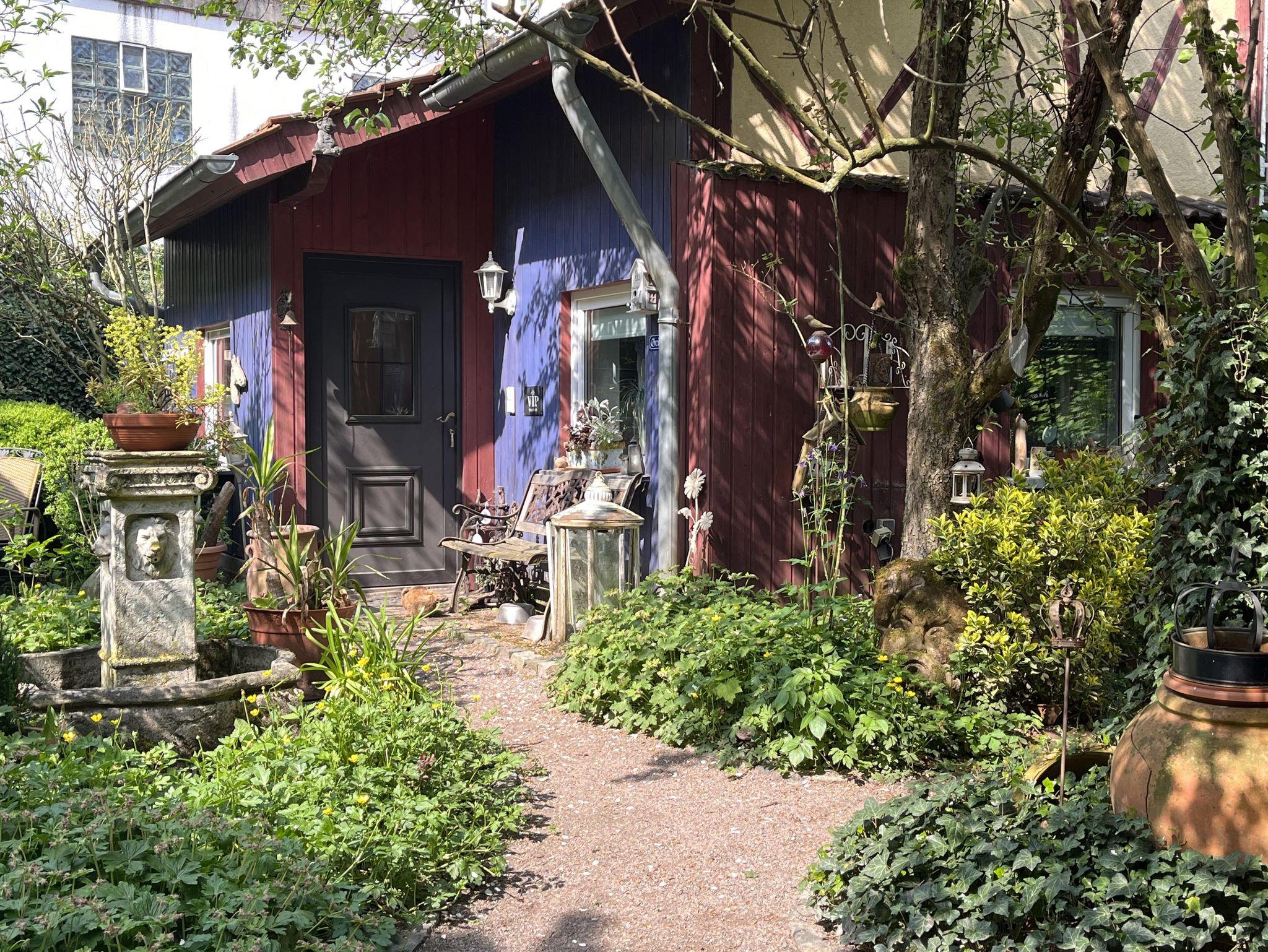 Unser Einzelzimmer, blaues Gartenzimmer, befindet sich im romantischen Gästehäuschen mit Blick auf den Garten sowie den malerischen Innenhof. Sie haben das Gästehäuschen für sich alleine, ausgestattet mit gemütlicher Sitzecke, TV, WLAN und eigenem modernem Badezimmer.