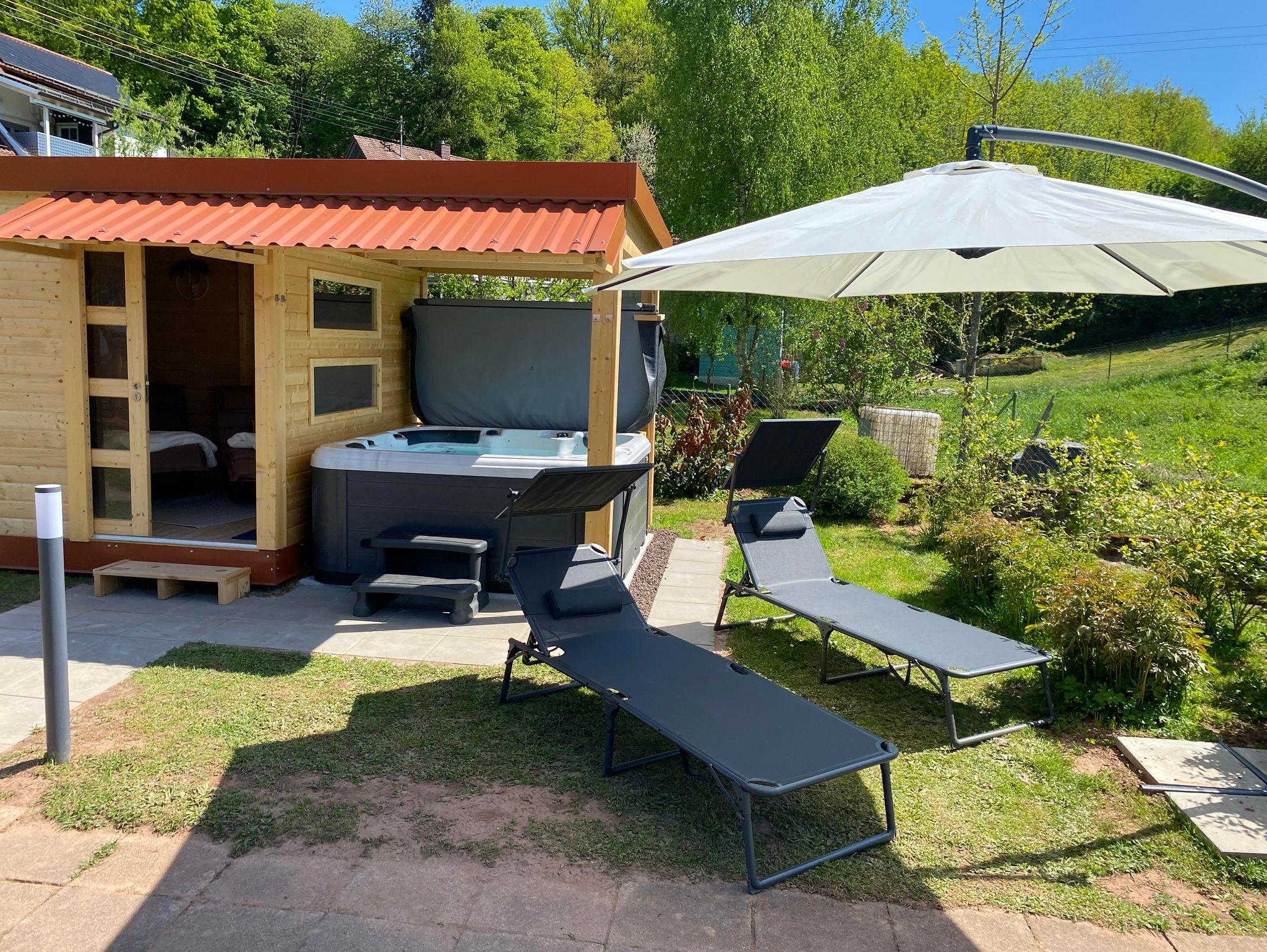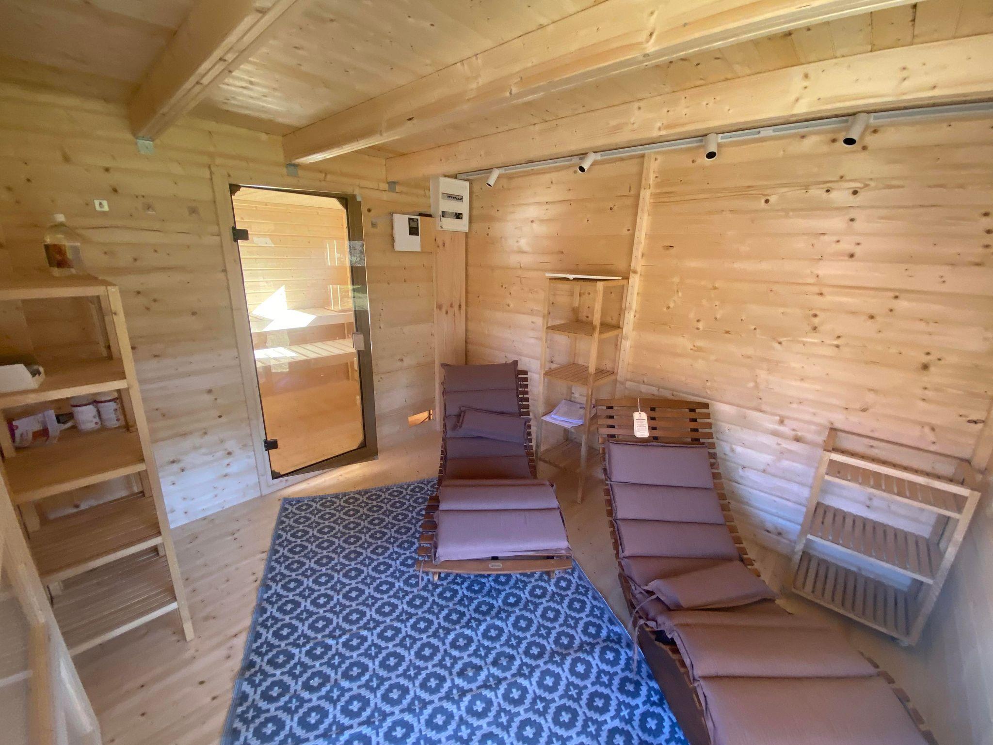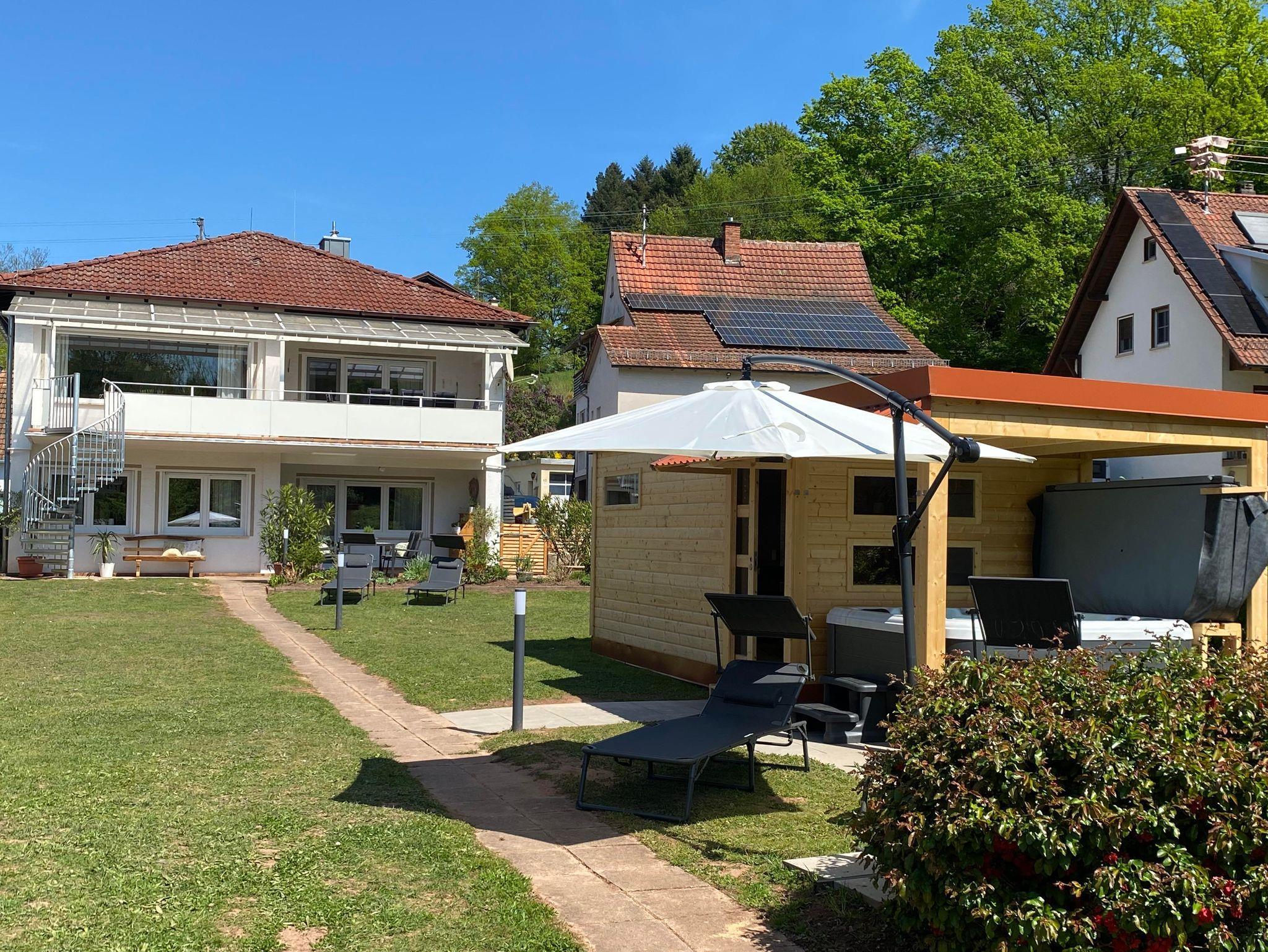 • Zur Wohnung gehört eine Terasse mir Freisitz für 4 Personen und direktem Zugang zum großen Garten in dem sich auch das Saunahaus mit Whirlpool befindet