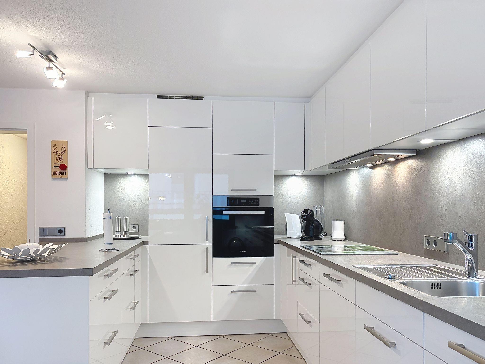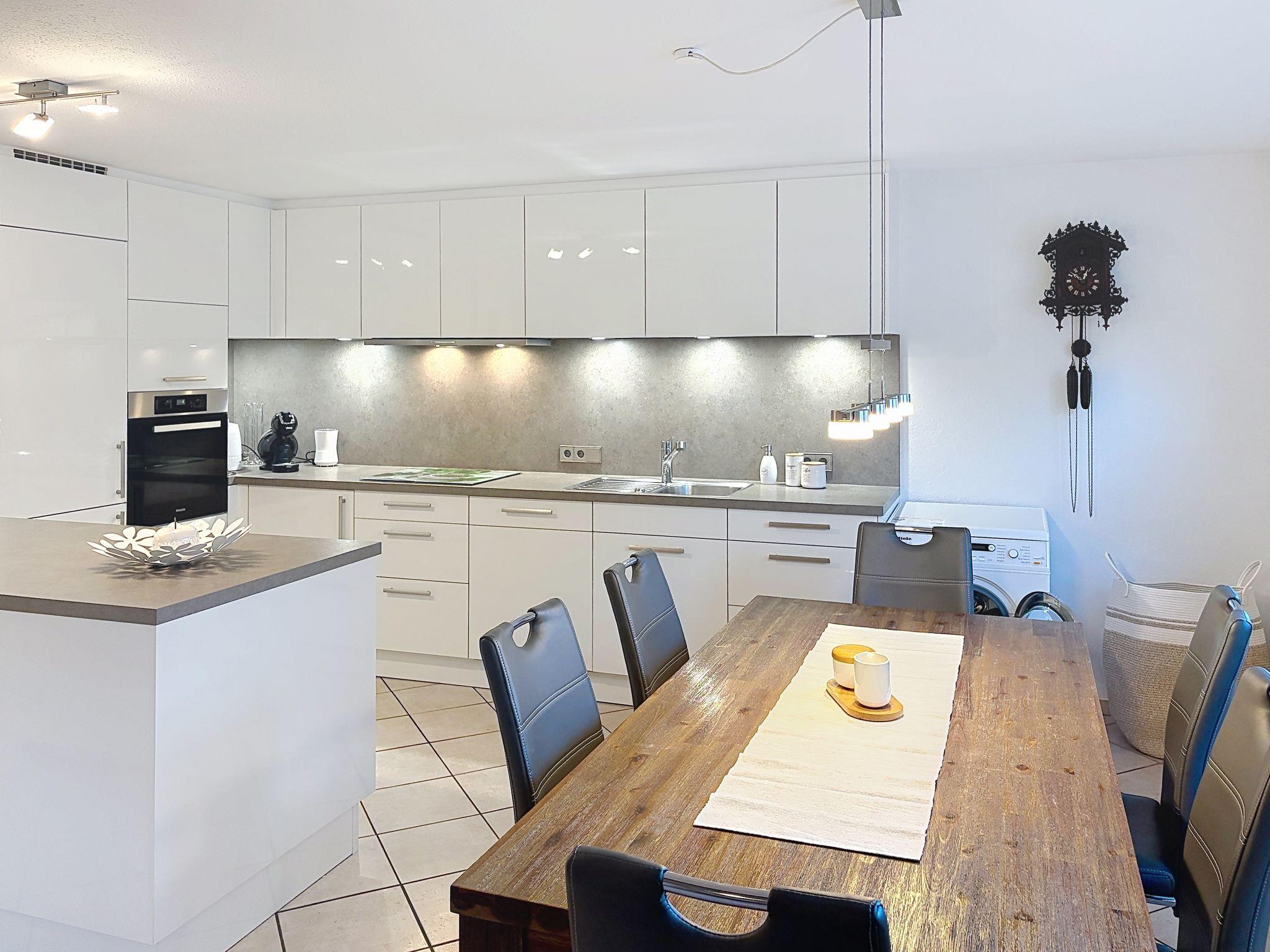 4-Zimmer-Wohnung 123 m2 im 1. Stock. Geschmackvoll und gemütlich eingerichtet: Wohn-/Esszimmer mit Kabel-TV (Flachbildschirm). 1 Zimmer mit 1 Doppelbett. Durchgangszimmer mit 1 Bett, 1 Doppelbett und Kabel-TV (Flachbildschirm). Ausgang zum Balkon. 1 offenes Zimmer mit 1 Bett und 1 Ausziehbett. Ausgang zum Balkon. Grosse, offene Küche (Backofen, Geschirrspüler, 4 Glaskeramikplatten, Wasserkocher, Mikrowelle, elektrische Kaffeemaschine, Kapseln für die Kaffeemaschine (Nespresso)) mit Esstisch. Bad/Dusche/WC, Doppelwaschbecken mit Eckbadewanne. Ölheizung. Parkettboden. Balkon. Balkonmöbel. Sehr schöne Sicht auf die Berge. Zur Verfügung: Waschmaschine, Kinderhochstuhl, Babybett, Haartrockner. Internet (WLAN, gratis). Parkplatz (1 Auto) beim Haus. Bitte beachten: Nichtraucher-Unterkunft. Rauchmelder, Feuerlöscher. Flexibilität bei der Bettenaufteilung: Es stehen mehr Schlafmöglichkeiten zur Verfügung als die maximal zugelassene Personenzahl, diese darf dennoch nicht überschritten werden.