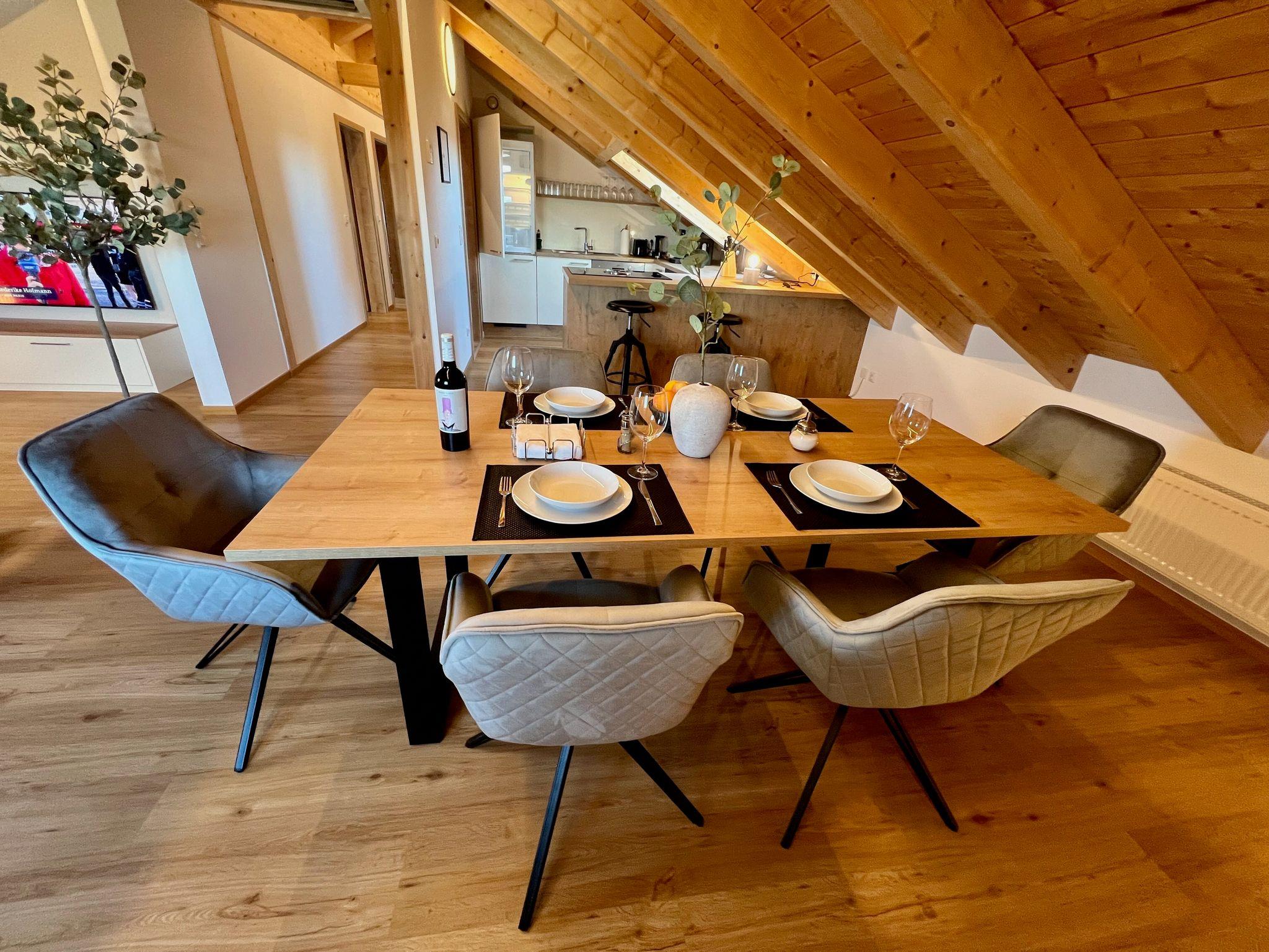 Diese großzügige, lichtdurchflutete Dachgeschosswohnung in der stilvollen Villa Bachfischer bietet auf ca. 80?m² ein besonders wohnliches Ambiente. Die charmanten Sichtbalken verleihen der Wohnung einen besonderen Charakter, während die herrliche Aussicht mit Blick nach Regensburg den Aufenthalt zu einem echten Highlight macht.
