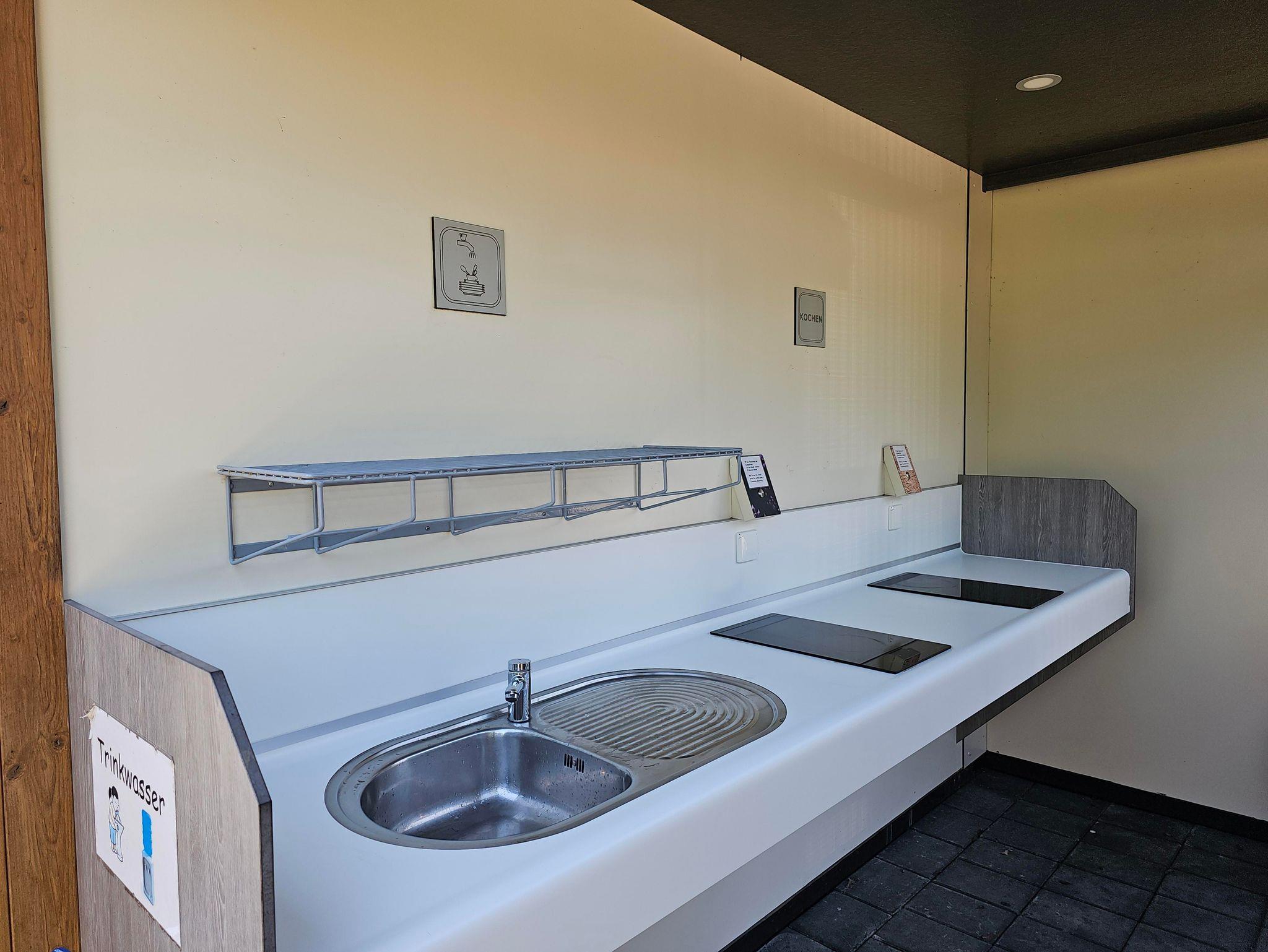 - Camper-Clean-Station (Automat zur Chemie-WC-Entleerung, gegen Gebühr)