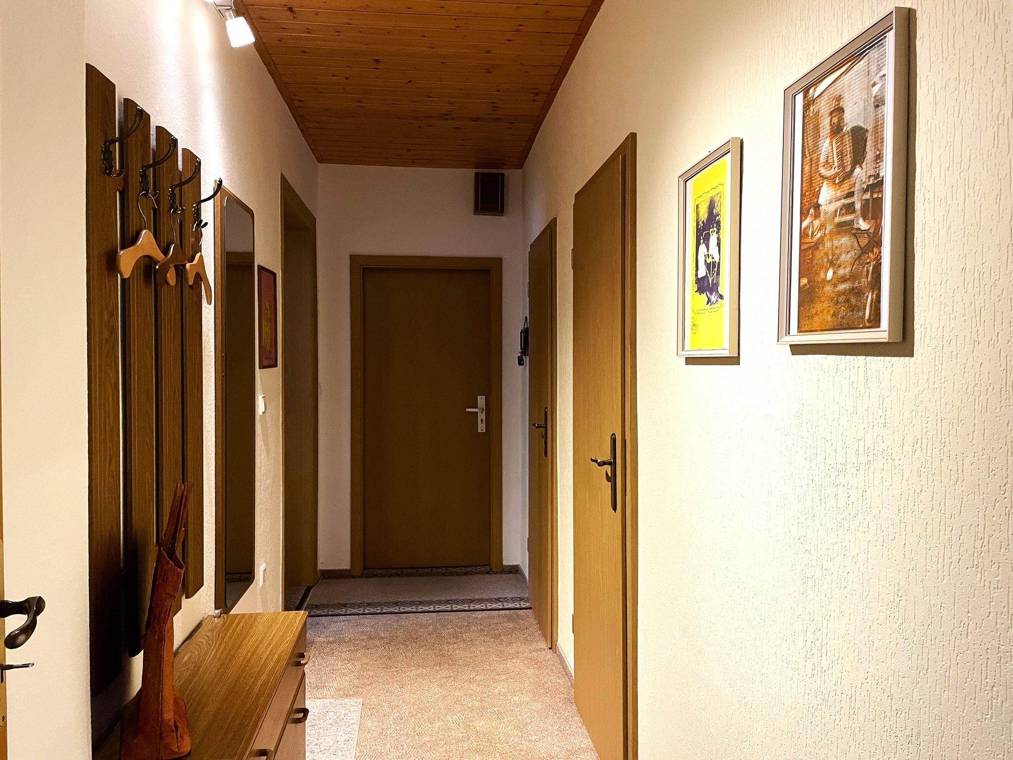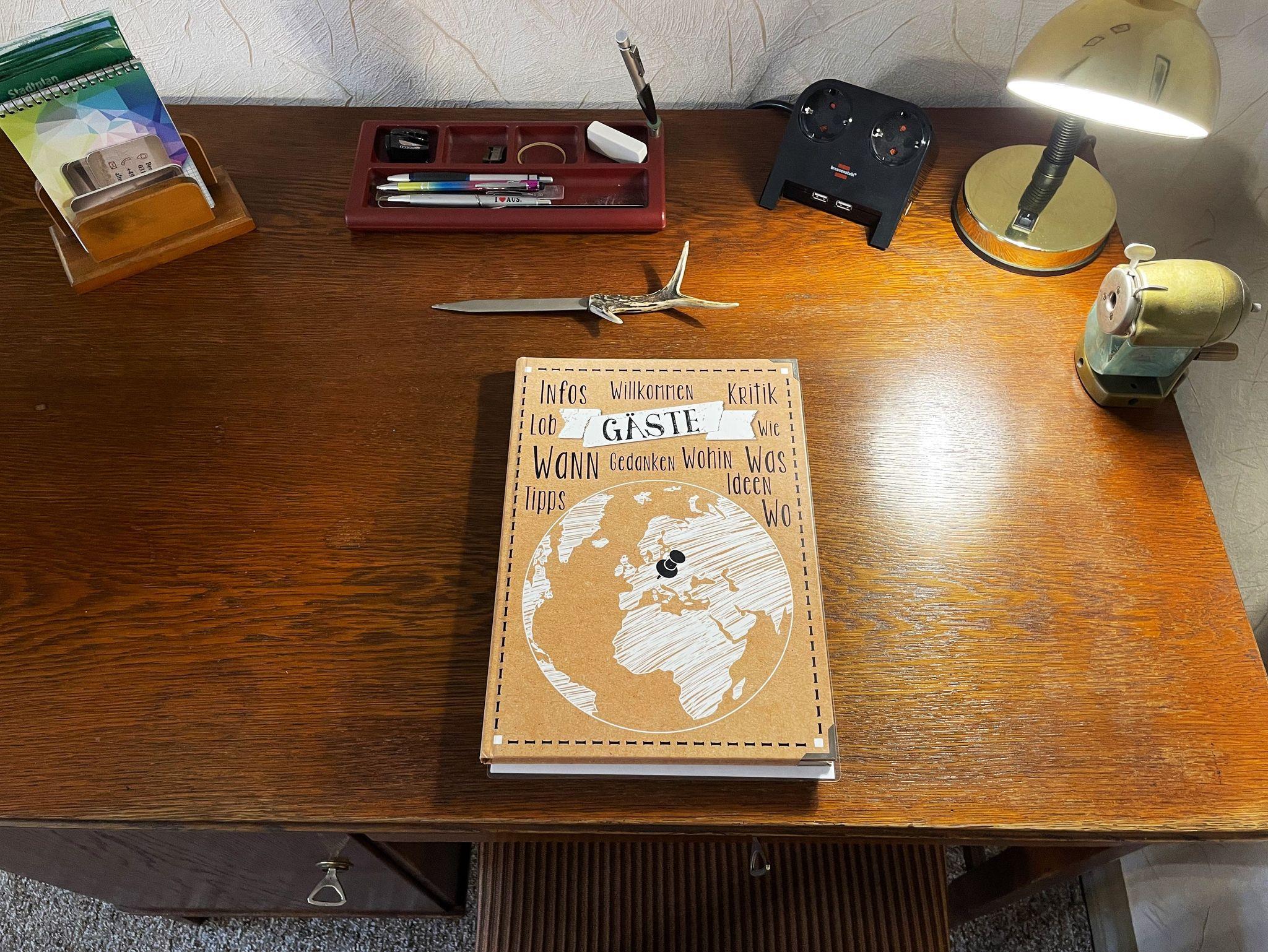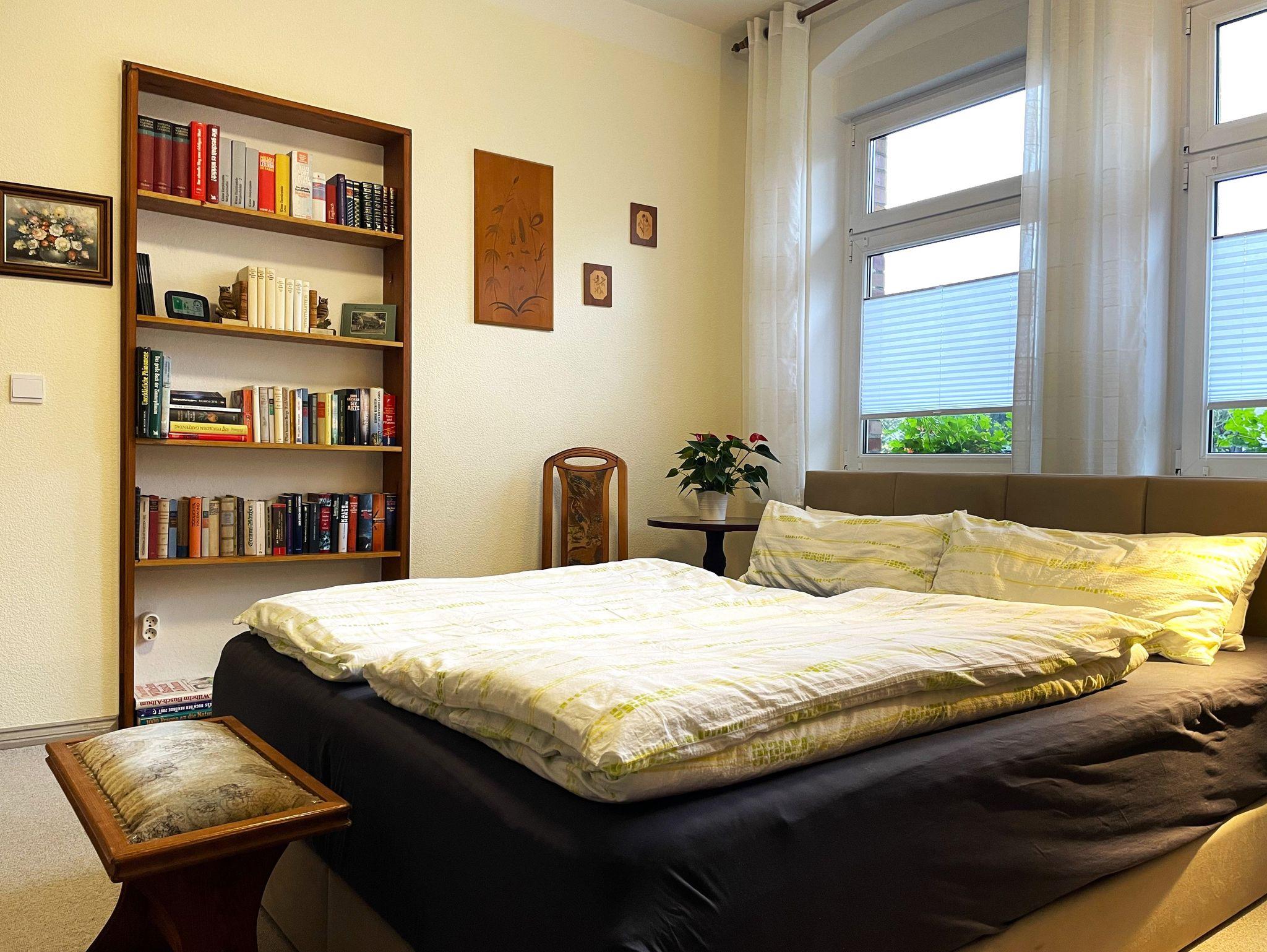 Die 90 m² große Nichtraucher-Ferienwohnung verfügt über ein großes Wohnzimmer. Hier können die Gäste gemütlich beisammen sitzen oder entspannt ihre Lieblingssendungen auf dem großen Flachbildfernseher anschauen. In diesem Raum befindet sich auch ein Schreibtisch, der an vergangene Zeiten des Hauses erinnert.