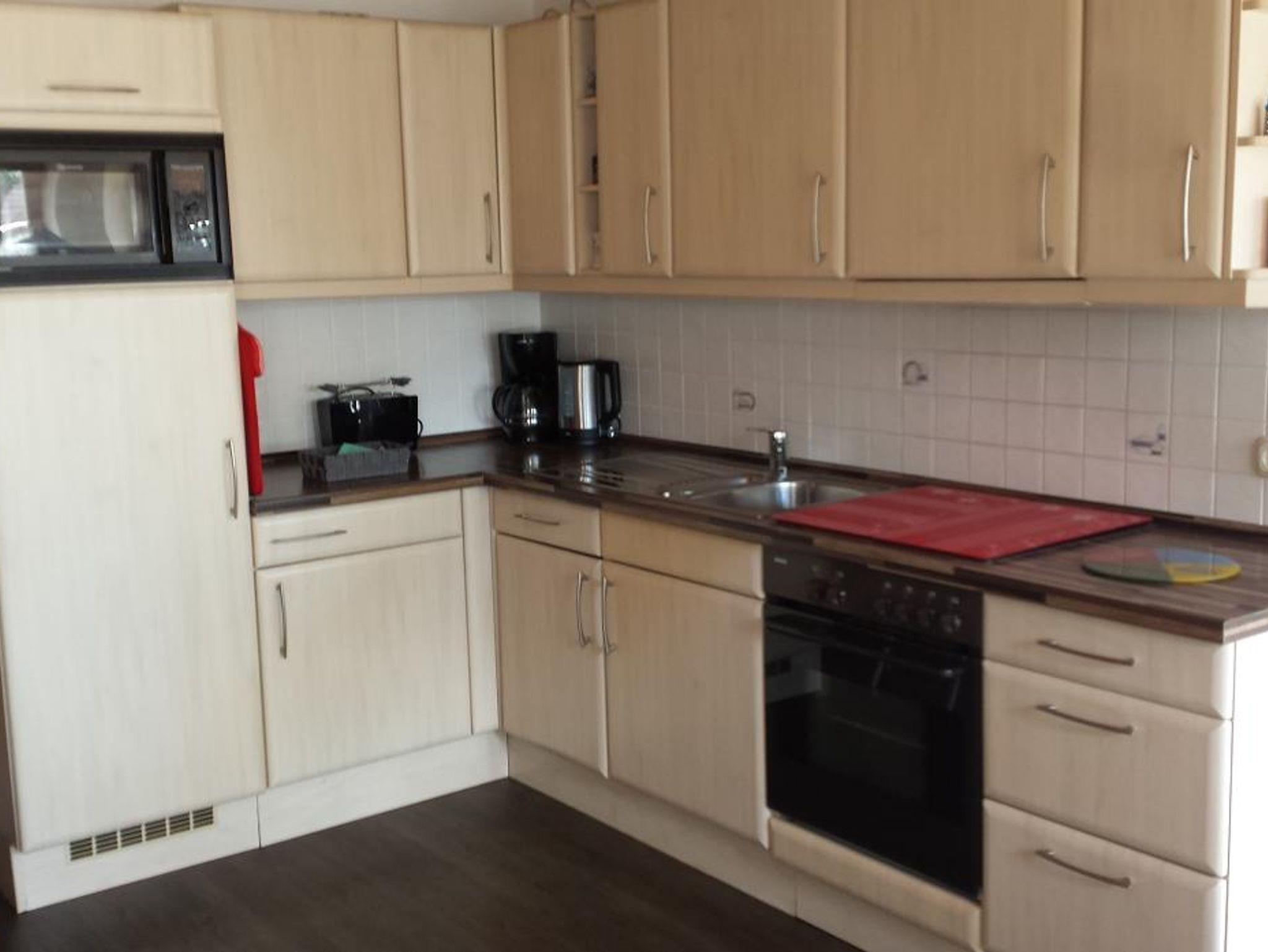 Die Wohnung ist komplett ausgestattet mit Waschmaschine, Mikrowelle, Bügeleisen,- und brett,